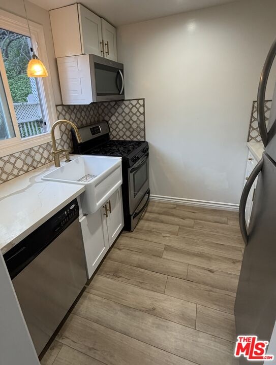 Charming upscale house with updated interior finishes, solar power (electric), security system and an updated single car garage with a 220 EV charger. Completely renovated home with amenities and central HVAC. Property located North of Sunset Blvd. in a quiet neighborhood with NO through traffic, and panoramic mountain views. Plenty of room for outdoor furniture and BBQ on terraces or lower deck. Included on the property is a bonus area for a garden of your interest, or hobby.Minutes from UCLA college/medical centers, nearby Century City/Beverly Hills. Also, 5 minutes from dry cleaners, Rx, grocery store, Starbucks and restaurants. Safe hiking options nearby, too.MAIN UPPER LEVEL: 2 bedrooms , 2 complete bathrooms with French doors leading out onto oversized decks. Kitchen has stainless steel appliances, ample maple cabinet storage and granite counter tops including an adjoining den/entertainment room with vaulted ceiling and sky lights. Master bath has double sinks, marble floor, jacuzzi bathtub/shower, linen closet and built-in washer/dryer cabinet.LOWER LEVEL: Separate entrances: front French doors and door to backyard deck). Main room has multiple windows and provide great light. Convenient for: work/ studio, gym, TV viewing, bedroom or combination of all. Includes a full kitchen with farm sink, dishwasher, stove, refrigerator, M/W with white quartzite countertops. Bathroom has a beautiful glass tiled walk-in shower with curved glass doors. As well a separate room with a closet for ample storage space. Property has additional off street parking. Small dog OK.Available Feb. 2.additional off street parking. Small dog OK. Rare in West LA limited neighbors.
