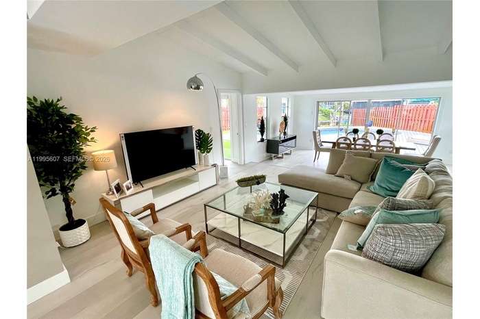Ample living & dining areas, Florida room, vaulted exposed beams ceilings.