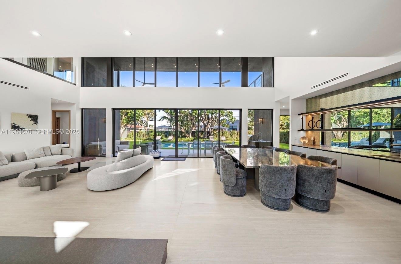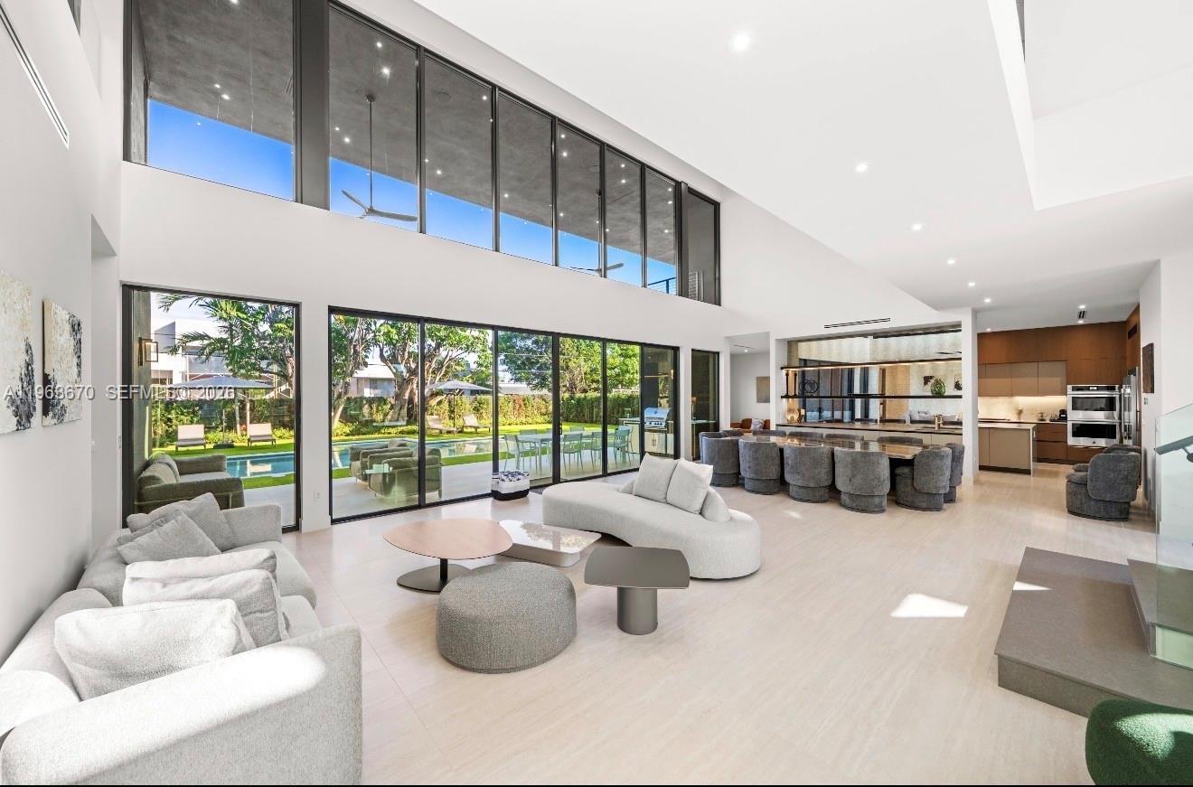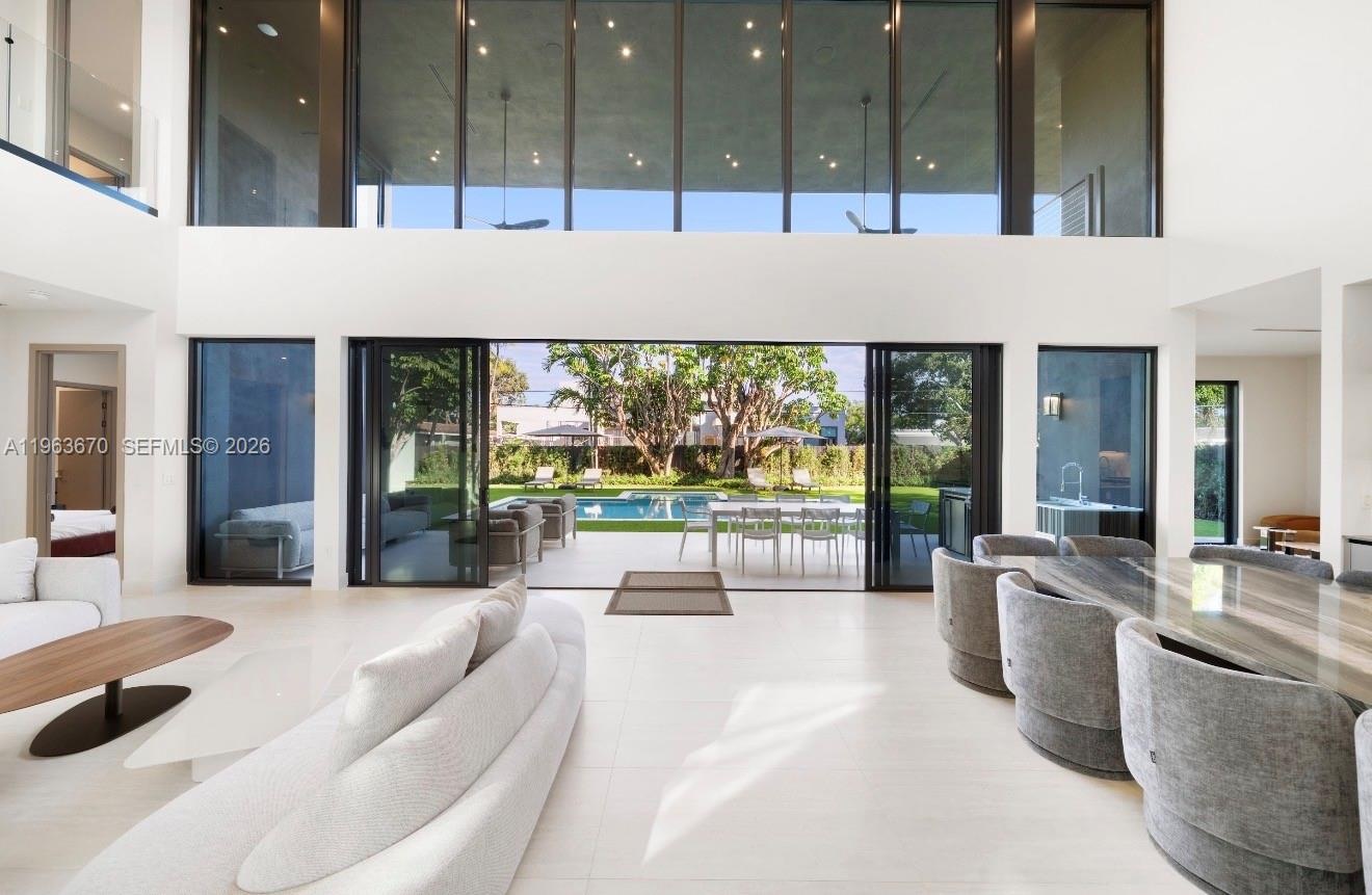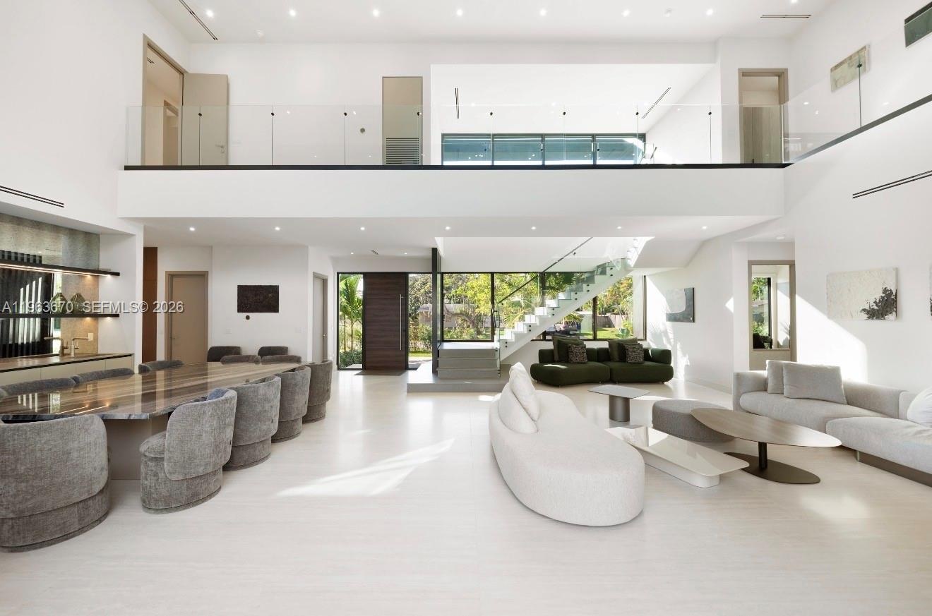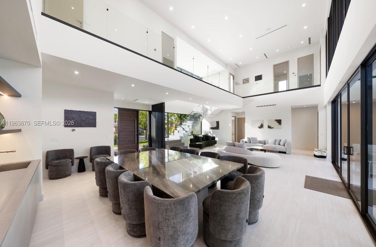 own luxurious en-suite bathroom. The home boasts soaring high ceilings, sleek modern décor,
