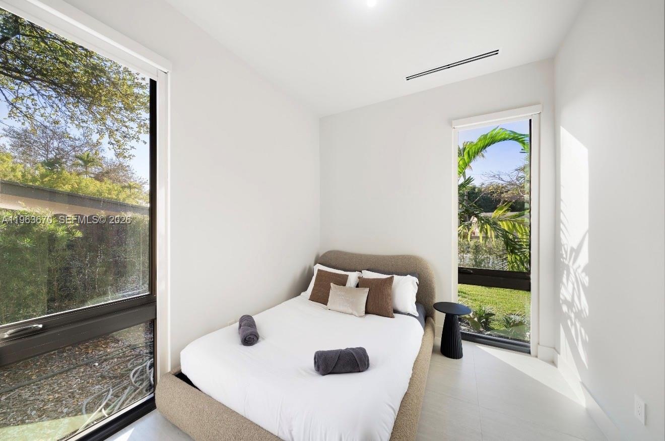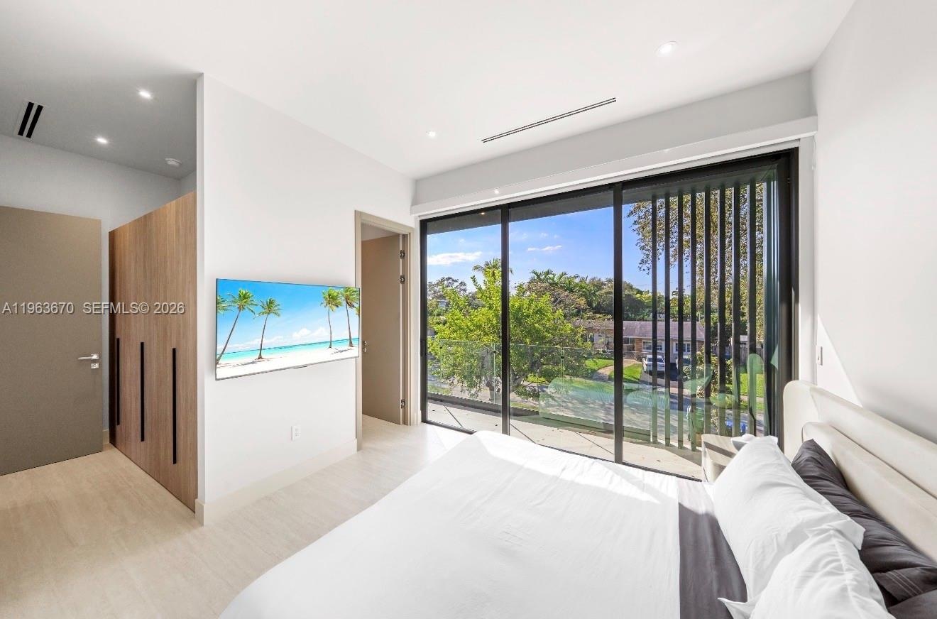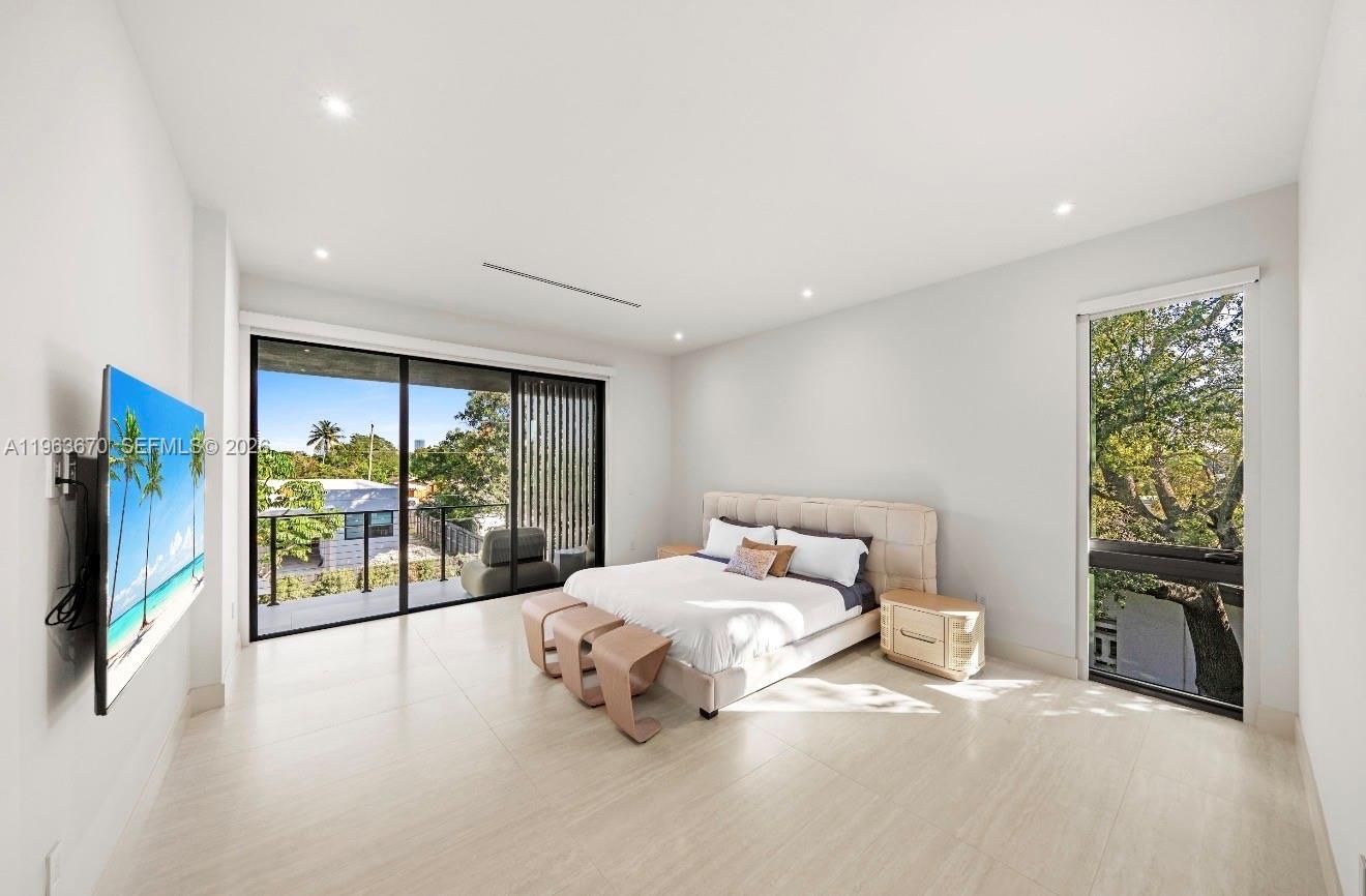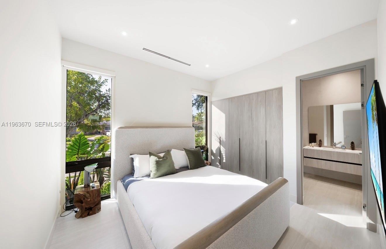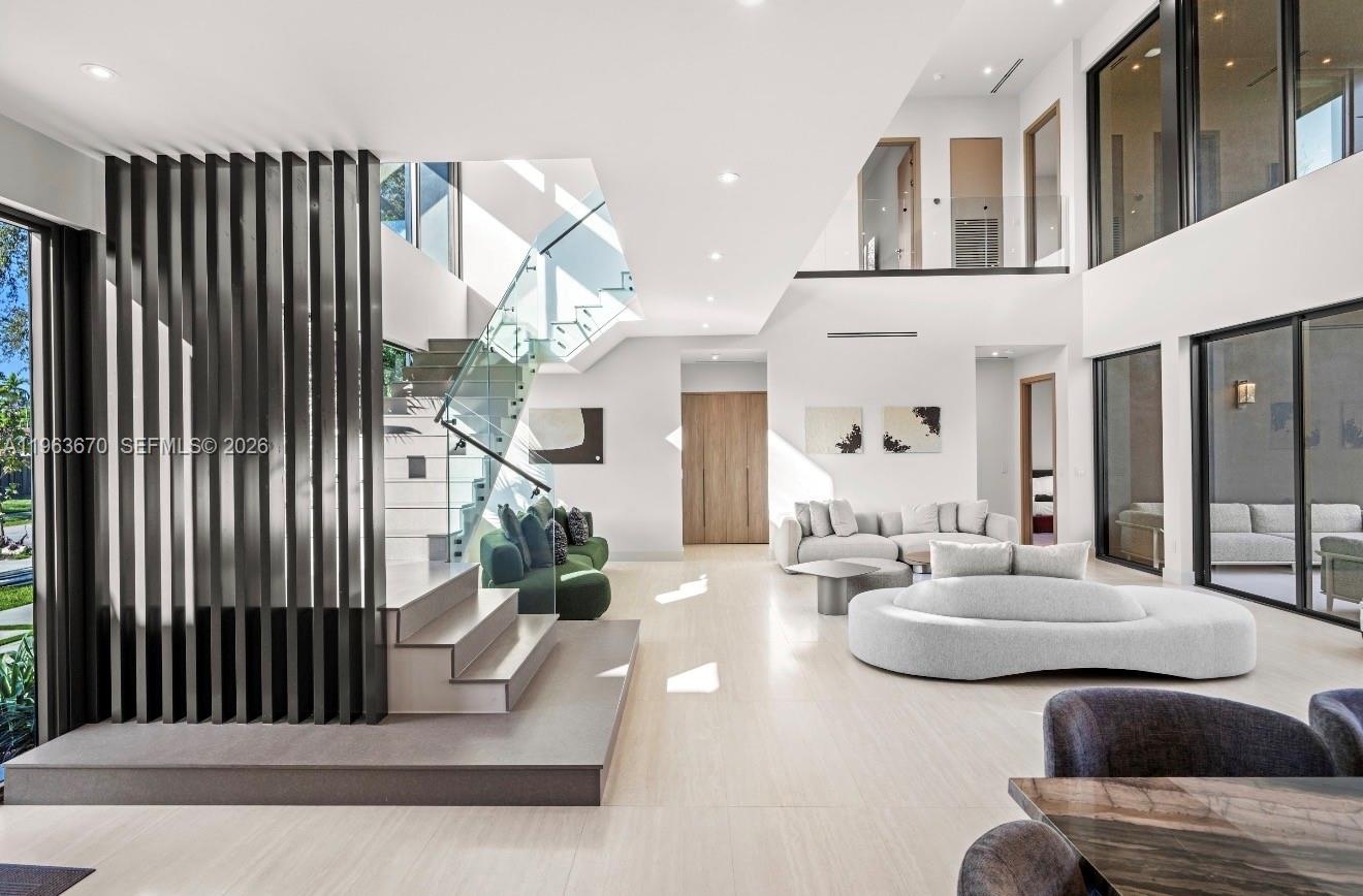 own luxurious en-suite bathroom. The home boasts soaring high ceilings, sleek modern décor,