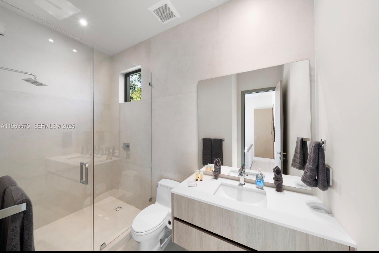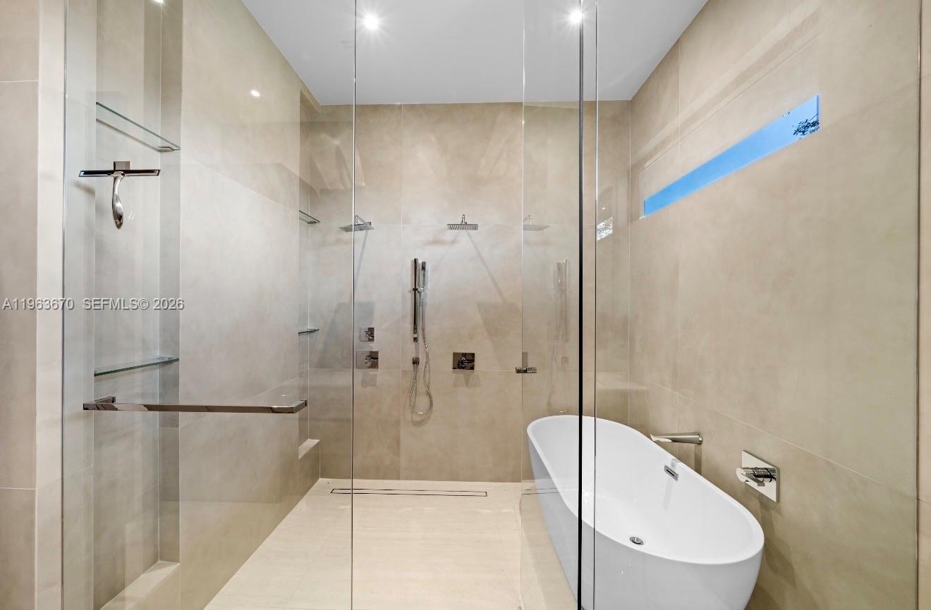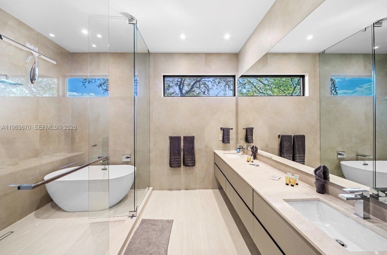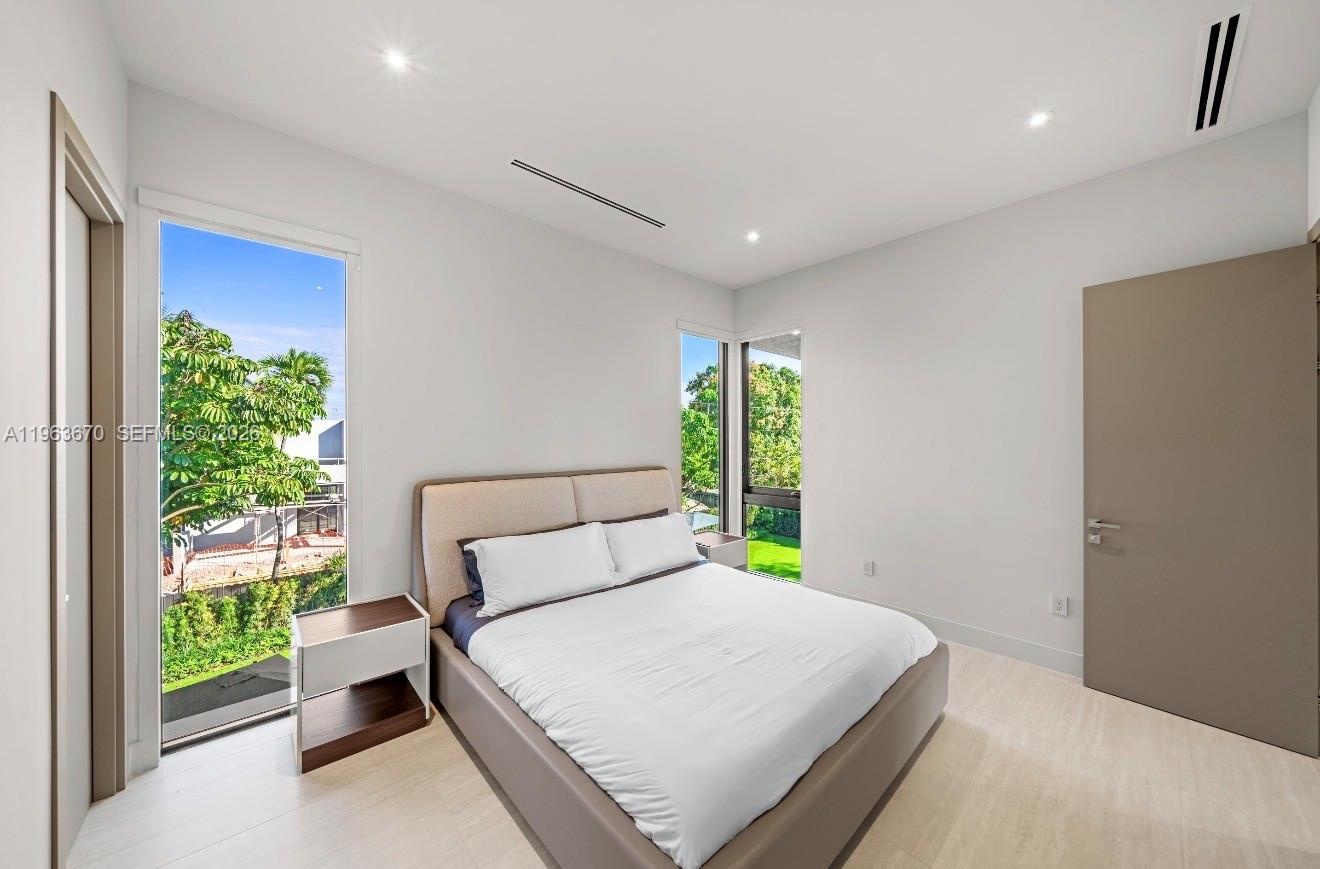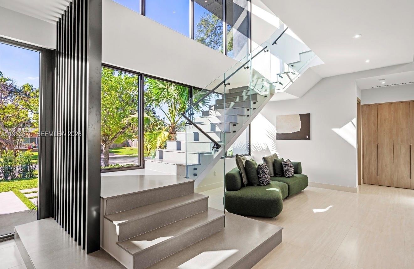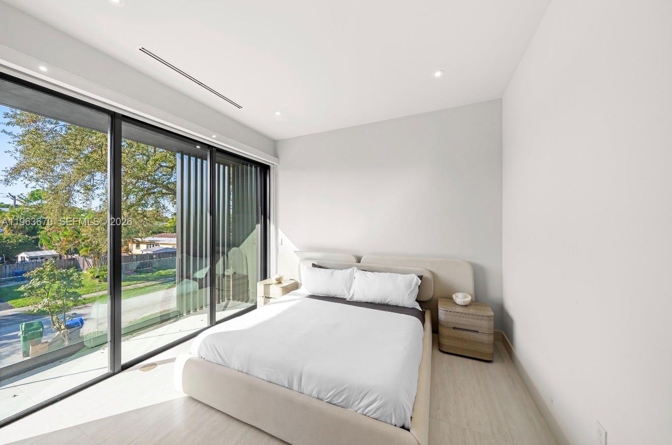 own luxurious en-suite bathroom. The home boasts soaring high ceilings, sleek modern décor,