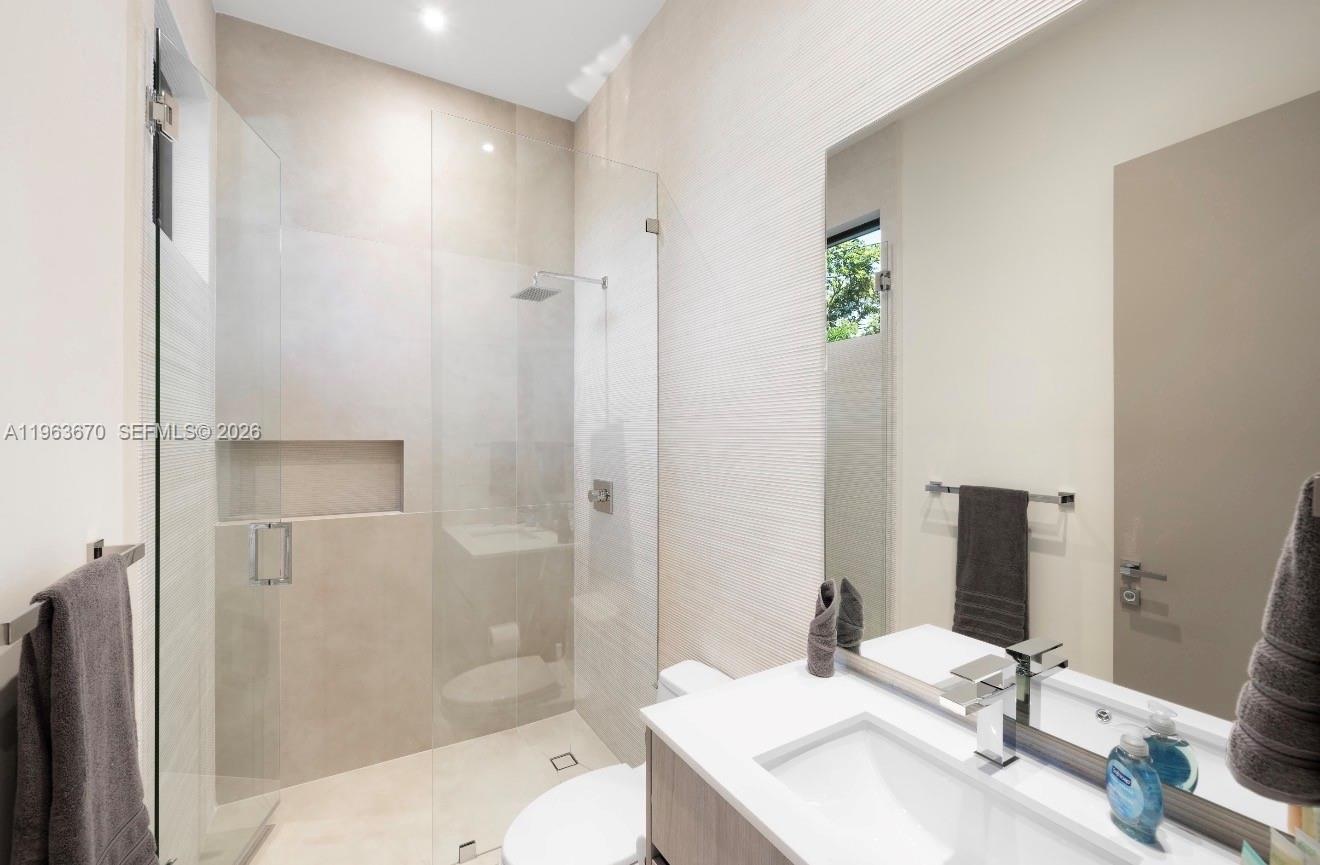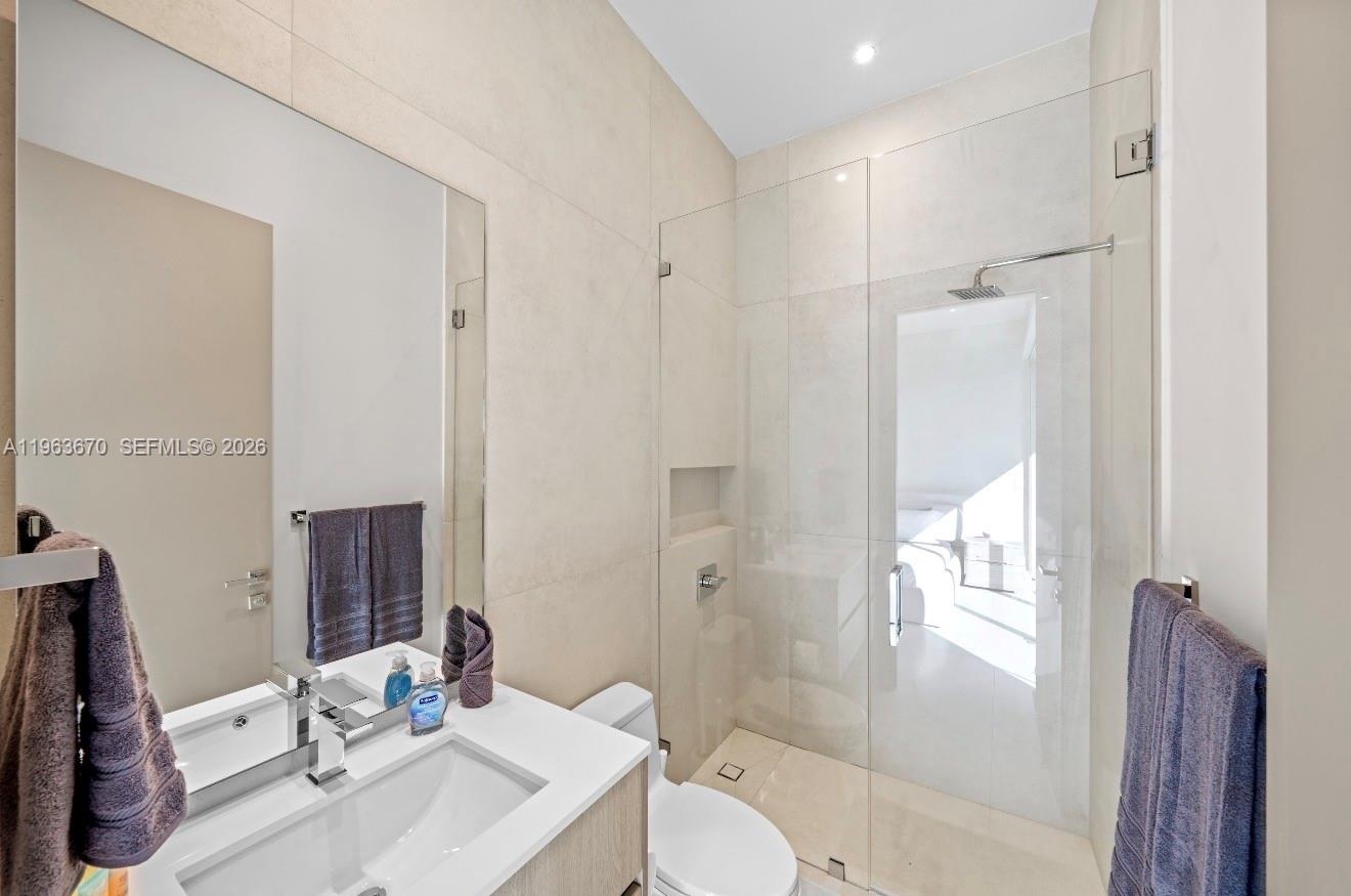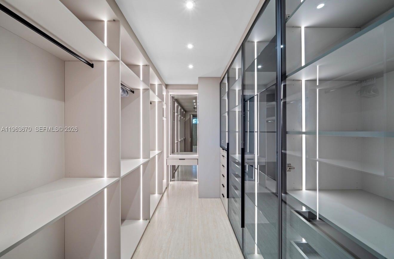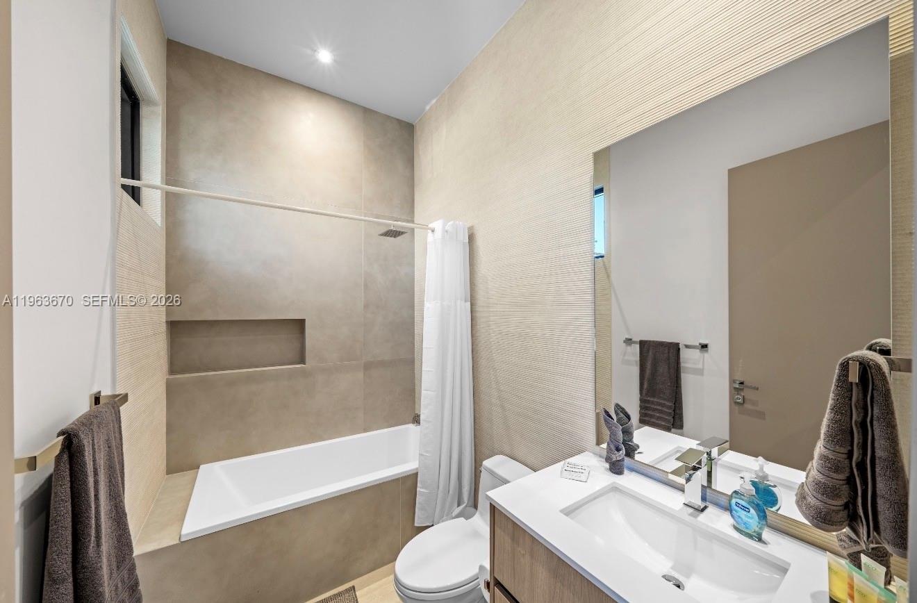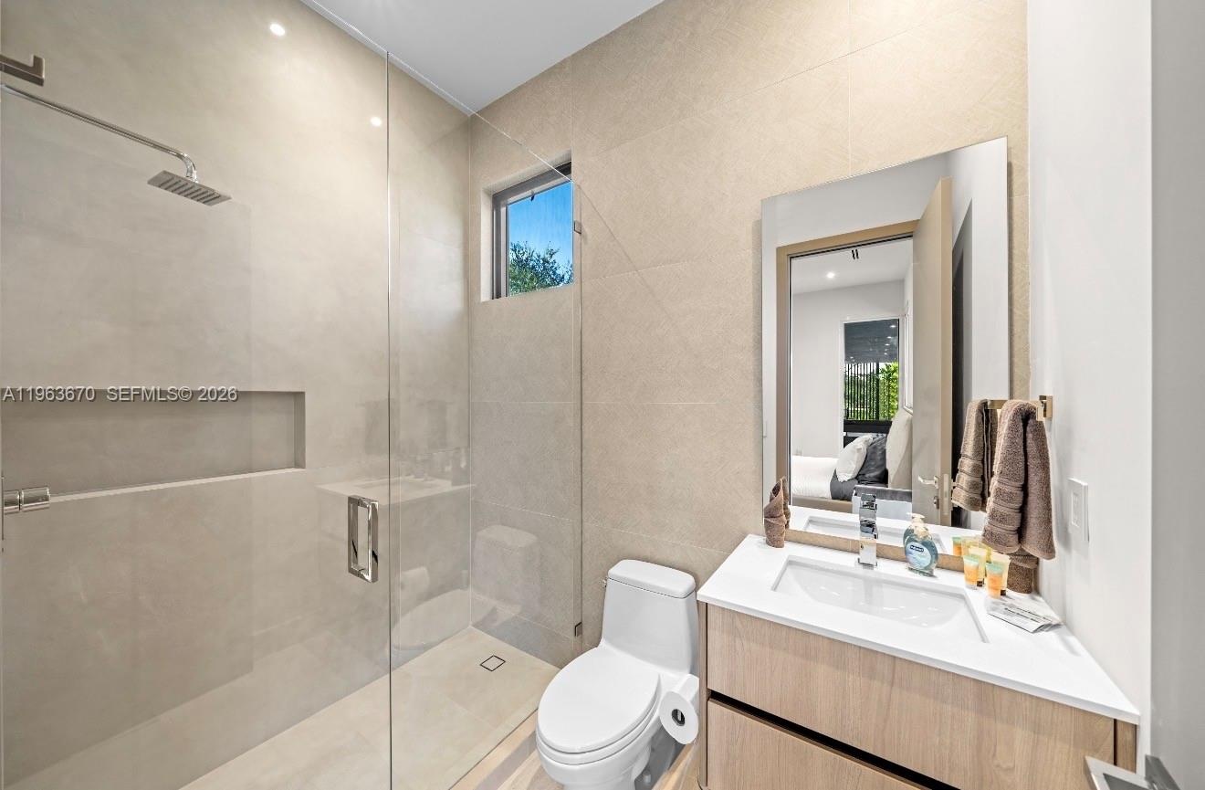 own luxurious en-suite bathroom. The home boasts soaring high ceilings, sleek modern décor,