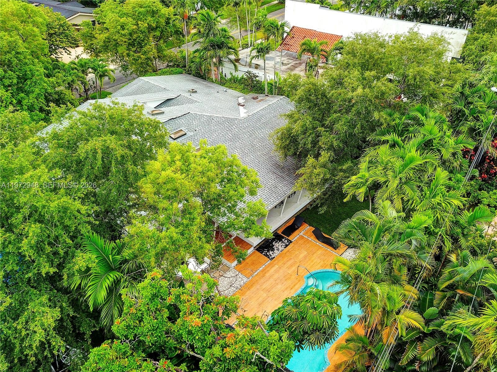 Located in Bay Heights, this 4-bedroom, 4.5-bath residence offers a bright, open layout filled with natural light, spacious living and dining areas, and a well-appointed kitchen with generous counter space. Terrazzo floors add character, while large windows and glass doors create seamless indoor-outdoor living. The home features a private den ideal for a home office, along with a room perfect for a playroom, media room, gym, or additional bedroom. A rare highlight is the impressive air-conditioned basement, providing substantial space not included in the main living area. The backyard embodies true Miami living, complete with a heated pool, covered terrace, and lush landscaping, perfect for relaxing or entertaining year-round. Ideally located just minutes from Coconut Grove, Brickell, Downtown, and Key Biscayne.