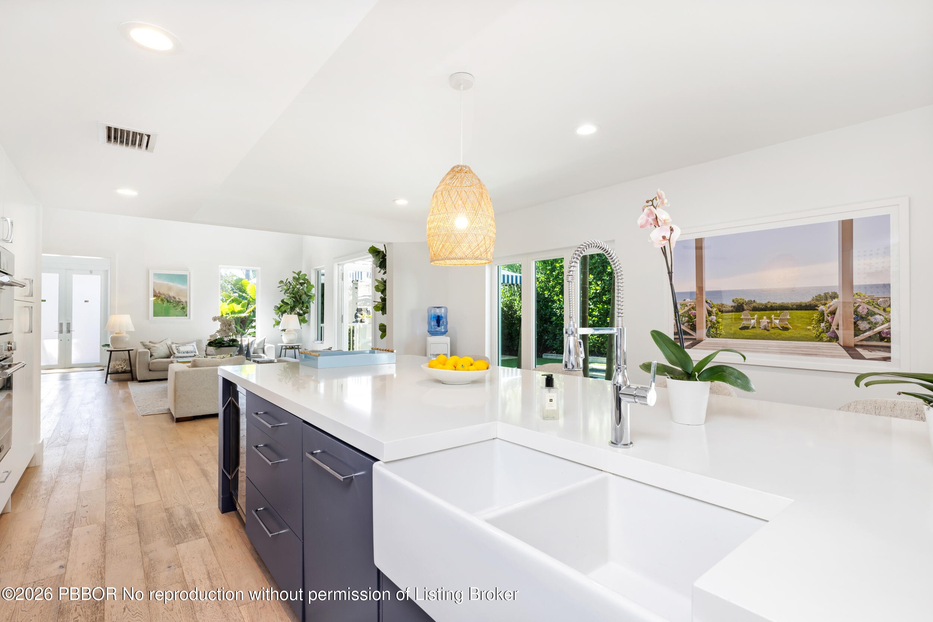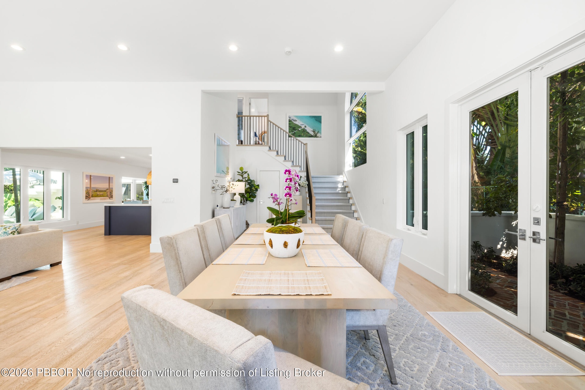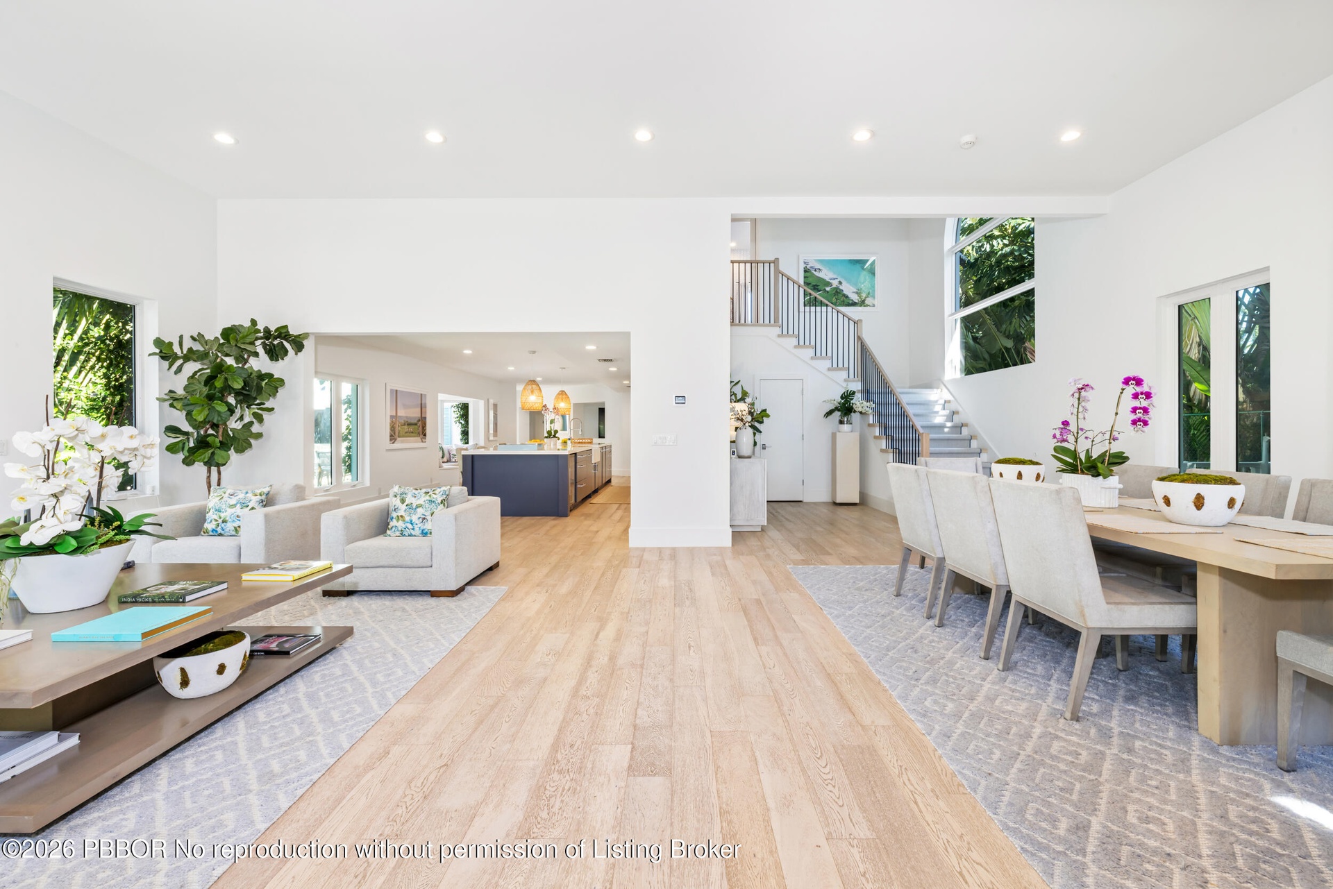 A fully gated driveway ensures privacy, while inside soaring 14-foot ceilings and a grand, wide staircase immediately captivate - bathed in morning light that pours through a striking circular window with unobstructed eastern exposure. South and east-facing orientations fill the home with natural light throughout the day, creating an airy, uplifting ambiance. Offering nearly 5,900 square feet of total living space on an almost 12,000-square-foot lot, the downstairs living areas are anchored by a rare 17-foot island - opening to expansive formal and casual living and dining areas.
