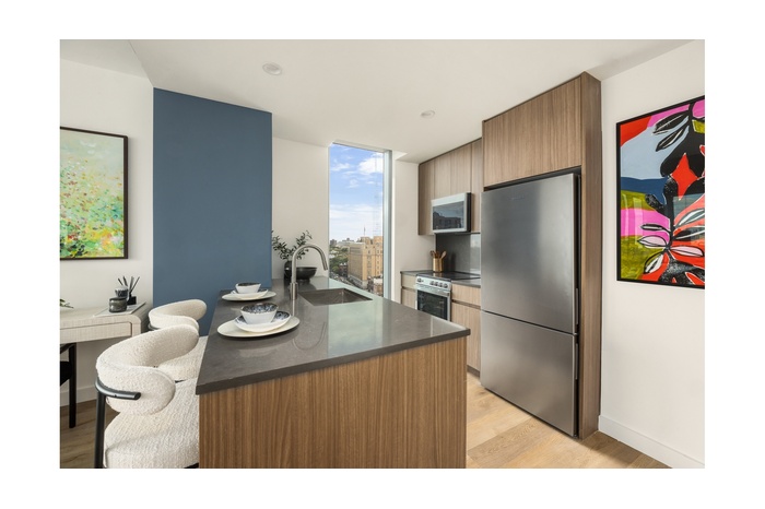 The residences at Eighty Nine DeKalb look out at sweeping panoramas of the Manhattan Skyline, Fort Greene Park, and Brooklyn landscape beyond. These considered spaces maximize light and views, with oversized windows that immerse residents in the city's special magic even as they remain cozy in their personal havens.