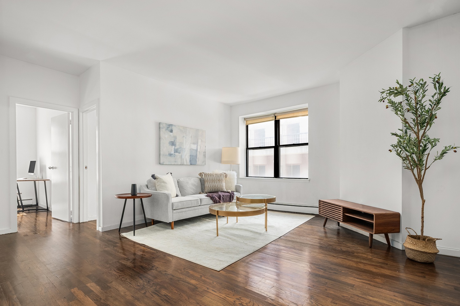 The living room and open kitchen flow together beautifully-making for an entertainer's dream. It also features double windows which also overlook the tranquil garden, adding to the charm of this exceptional home. The building offers a stunning two-tiered, glass-enclosed manicured garden complete with a Koi pond and additional seating for your enjoyment.