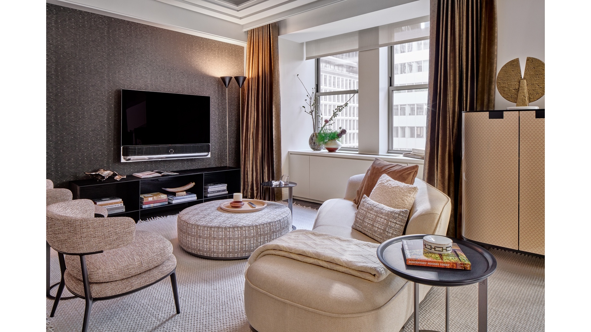 Waldorf Astoria Residences New York offers an exclusive partnership with B&B Italia, offering curated, fully furnished residences available only to residents. Residents have the option to purchase furnishings in two color declinations, "Chiaro" or "Scuro," for both warm or cool palettes, and an elevated arrangement of accents and accessories to complement the furnishings.