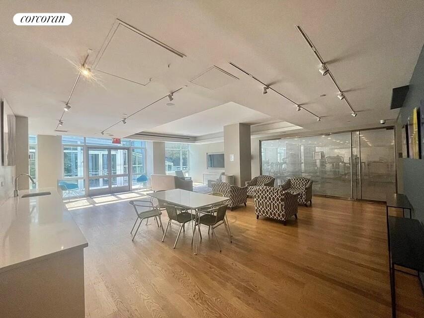 Full-service amenities include 24-hour doorman, fitness center, roof deck, bike storage, live-in super, laundry, and on-site parking. Prime location in Downtown Brooklyn nearby shopping, dining, and multiple subway lines on the New York City Subway for easy Manhattan access. A bright top-floor condo in one of Brooklyn’s most convenient locations.