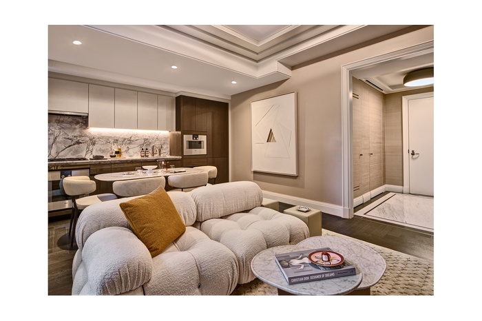 Designed by internationally acclaimed designer Jean-Louis Deniot, residences combine modern comfort with signature features such as a dedicated Concierge Closet and keyless entry with opulent details like ceiling coves, herringbone floors, oversized custom-paneled doors, spacious walk-in closets, and grand entry foyers with marble floors and brass inlays .