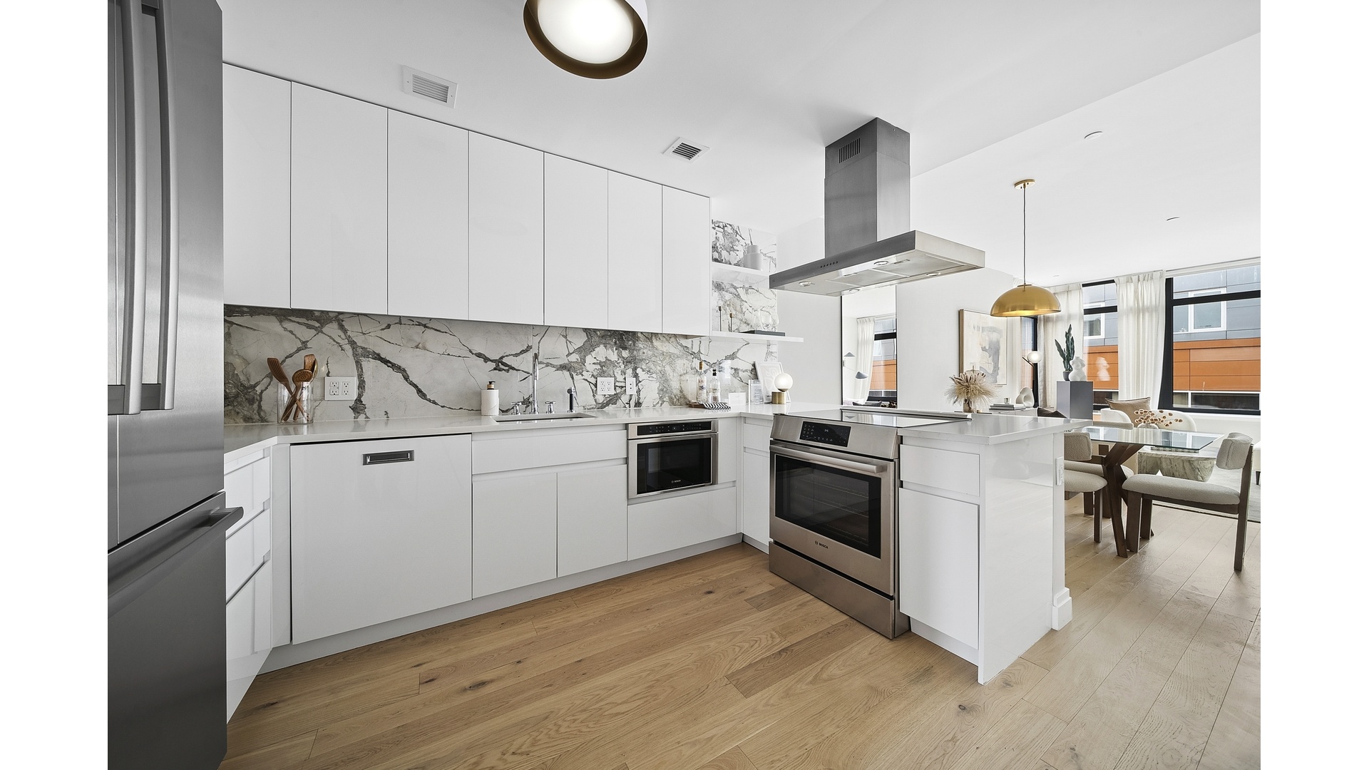 The heart of the home is a seamless chef's kitchen featuring a premium Bosch appliance suite and custom cabinetry. It connects effortlessly to a massive Living/Dining Room that is optimized for entertaining. Discreetly tucked away is a a dedicated laundry room that worthy of a sophisticated closet organizer system. This floor plan is engineered for quiet efficiency, utilizing Passive House principles with triple-paned windows to reduce energy costs and environmental impact, leaving a lighter footprint. Step off the elevator and breathe easier in Harlem's most advanced environmental sanctuary. Private storage with every unit and common exercise room to streamline your day-to-day.