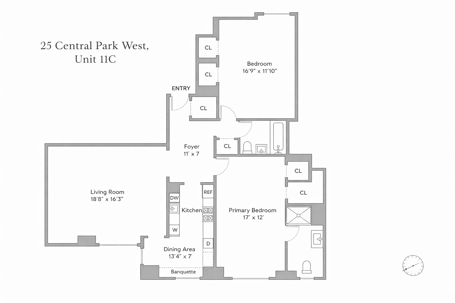 The bedrooms in the residence offer classic pre-war scale, timeless moldings, and generous closet space. The bathrooms, one of which is ensuite off the primary bedroom, offer a classic elegance and scale of a bygone era. The second bedroom can be closed off to create a guest suite with ensuite bathroom.