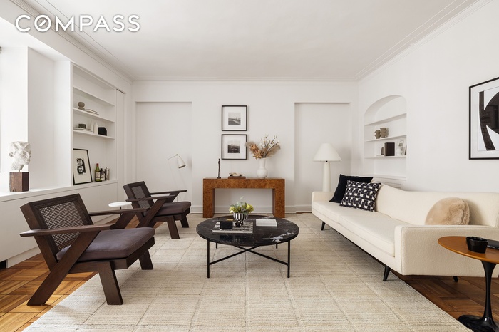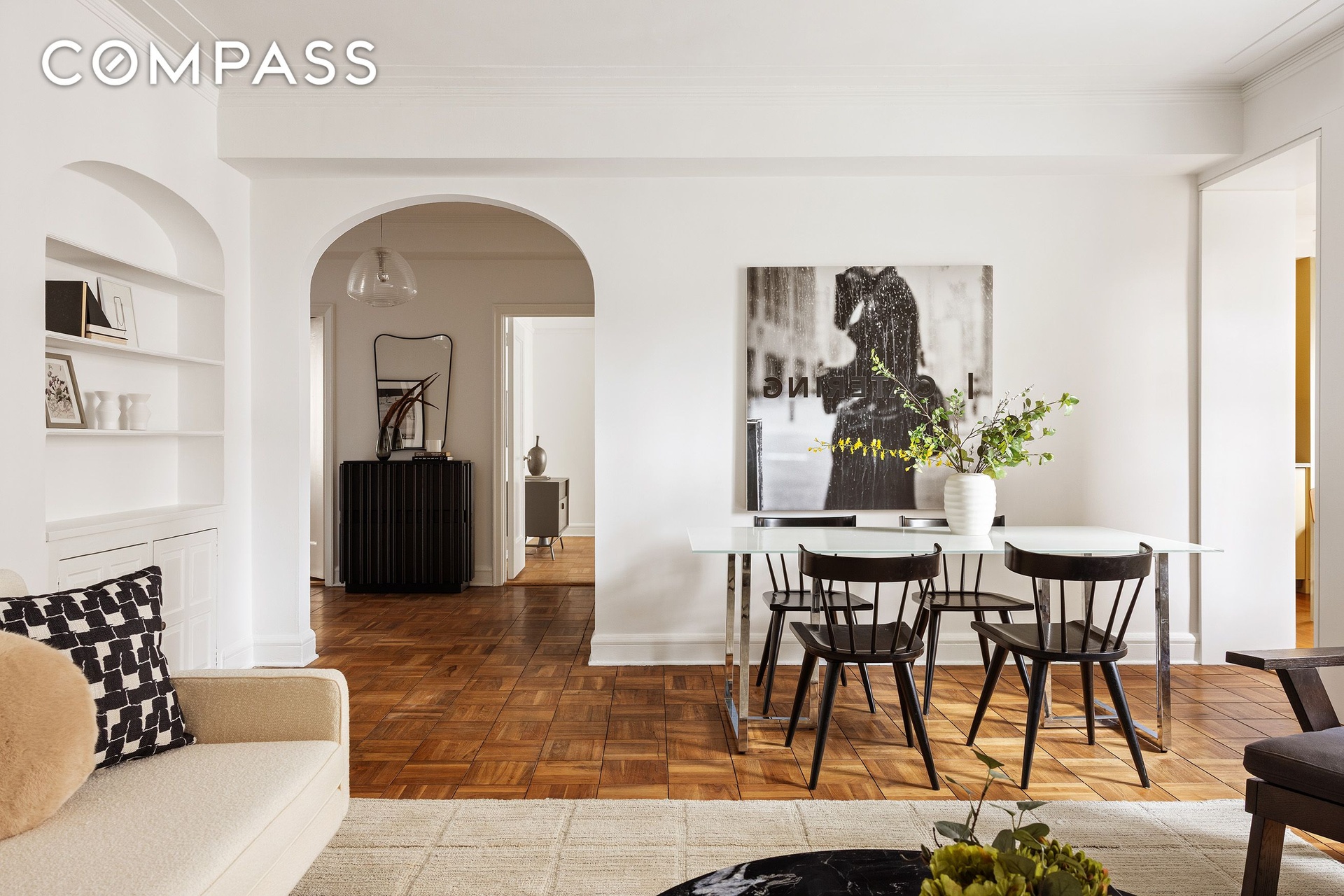Upon entry into the gracious foyer, the warmth and functionality of this highly-desired floor plan becomes evident. A large renovated kitchen lies straight ahead, with a charming and rare windowed dining alcove. The designer, top of the line kitchen appliances include a large range, an integrated dishwasher, Subzero refrigerator and ample storage. Adjacent to the dining area is the sizable and inviting living room, filled with wonderful light.