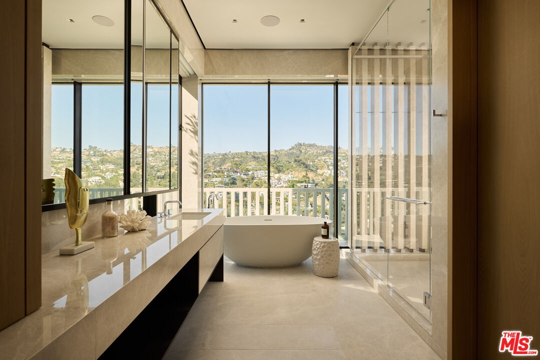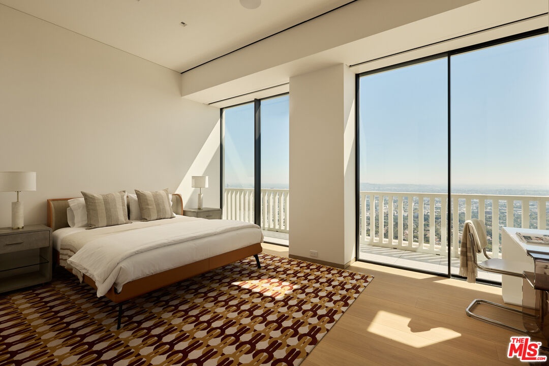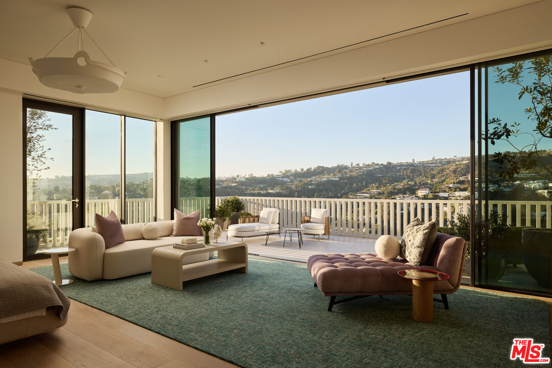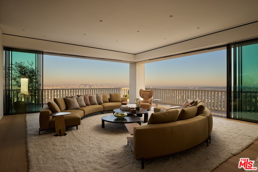 Perched above the Sunset Strip, the crown jewel of Sierra Towers redefines penthouse living. This meticulously crafted residence, designed by the award-winning firm Workshop/APD, spans 7,365 sf across 3 bedrooms and 6 bathrooms (5 full, 1 powder) offering an unparalleled stage for Los Angeles' most cinematic vistas. From the glittering expanse of the Hollywood Hills to the vast sweep of the Pacific Ocean, the unobstructed, 360-degree vistas are nothing short of transcendent. A private elevator opens to a grand foyer, where double doors reveal walls of glass framing the city beyond like an ever-changing masterpiece. Outside, a 5,454 sf wrap-around terrace floats above it all, a dramatic backdrop for morning light, sunset cocktails or starlit soires. The line between indoors and out dissolves, extending daily life into the open sky. Inside, modern design meets timeless warmth with wide-plank white oak floors, soaring ceilings and walls of floor-to-ceiling glass that flood the interiors in natural light. Simena limestone and Cristallo quartzite surfaces, custom white oak millwork and hammered bronze accents reflect impeccable craftsmanship and refined detail throughout. The open living and dining spaces set the stage for glamorous entertaining, anchored by a dramatic stone fireplace and framed by sweeping cityscapes. The sculptural gourmet kitchen pairs state-of-the-art appliances with custom oak cabinetry, quartzite countertops, a generous island, wet bar and breakfast bar with seating. The primary suite is a private sanctuary with terrace access and panoramic Hollywood Hills views. A sitting lounge offers gallery-style walls for art, while dual spa-worthy bathroom suites in marble and granite pair with custom closets designed for couture collections. Two additional guest bedroom suites provide sophisticated comfort and curated finishes. Additional extraordinary spaces include a media lounge, wet bar, gym/office and gallery, while luxurious amenities such as integrated Savant home system, designer lighting, radiant floor heating and motorized window treatments ensure effortless luxury. Sierra Towers remains Los Angeles' most iconic high-rise address, synonymous with prestige and discretion. Residents enjoy 24/7 concierge, valet and security, along with a renovated fitness center, swimming pool, spa, sauna, ballroom, and conference facilities, all moments from Beverly Hills, West Hollywood and world-class dining and shopping. More than a residence, this penthouse is a rarefied vantage point, an architectural statement suspended above the city, delivering a lifestyle that is as extraordinary as the city it overlooks.