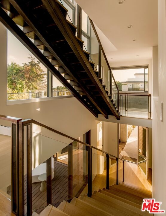 Discover unparalleled luxury living at 'The Winge House,' a thoughtfully designed modern home by renowned architect Tom Marble that embodies elevated Southern California living. Set on a 7,238 SF lot, this 5-bedroom, 4.5-bathroom residence offers 3,660 SF of thoughtfully designed living space across three levels. Modern and light-filled, the home is defined by expansive windows, soaring 12-foot ceilings, and seamless indoor-outdoor flow, all grounded by solid white oak engineered hardwood floors throughout. Every space is filled with natural light, creating a bright, airy atmosphere that carries throughout the home. The layout unfolds with intention from the moment you enter, where large windows draw your eye through to a private patio, setting the tone for the home's indoor-outdoor connection. An adjacent office with a full bath sits just off the entry, offering a functional yet connected workspace that can easily serve as an additional bedroom. The lower level features two additional bedrooms, both with direct access to the backyard, along with a laundry room, opening to a landscaped outdoor setting that extends the living space for effortless entertaining and everyday enjoyment. The second level is where the main living spaces come together. The chef's kitchen and dining area are seamlessly connected, flowing into the family room, with a double-sided fireplace subtly defining each space. The kitchen is centered around a large island and equipped with a Sub-Zero refrigerator and Wolf range, combining top-tier performance with refined design. Thoughtfully designed for everyday ease, a convenient dumbwaiter connects the garage directly to the kitchen, simplifying grocery transport. The primary suite anchors this level with a spacious bathroom featuring a soaking tub and walk-in closet, and opens directly to an outdoor patio with ocean views, alongside an additional well-positioned bedroom. The top level is dedicated to a private outdoor retreat, ideal for entertaining or relaxing above it all while enjoying sweeping ocean views. A two-car garage with a Tesla charger completes the home. Located in the heart of Mar Vista, this home offers a quiet residential setting with convenient access to Venice, Santa Monica, and Abbot Kinney, and is just moments from the highly anticipated new neighborhood park.