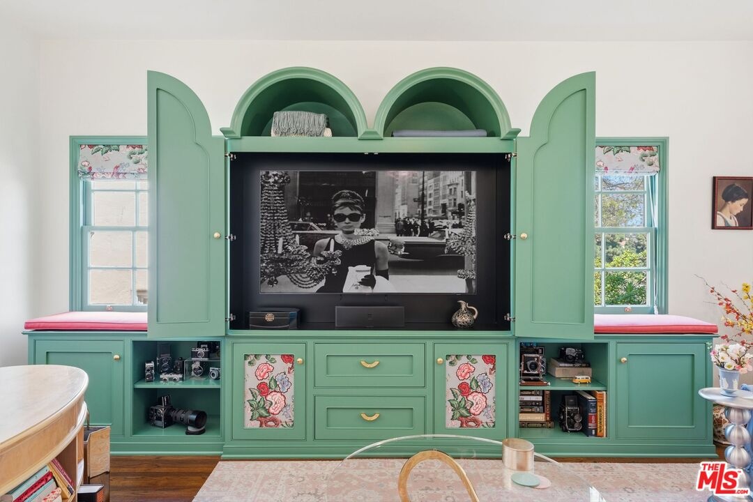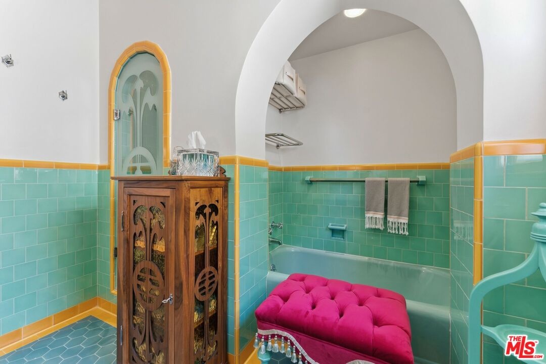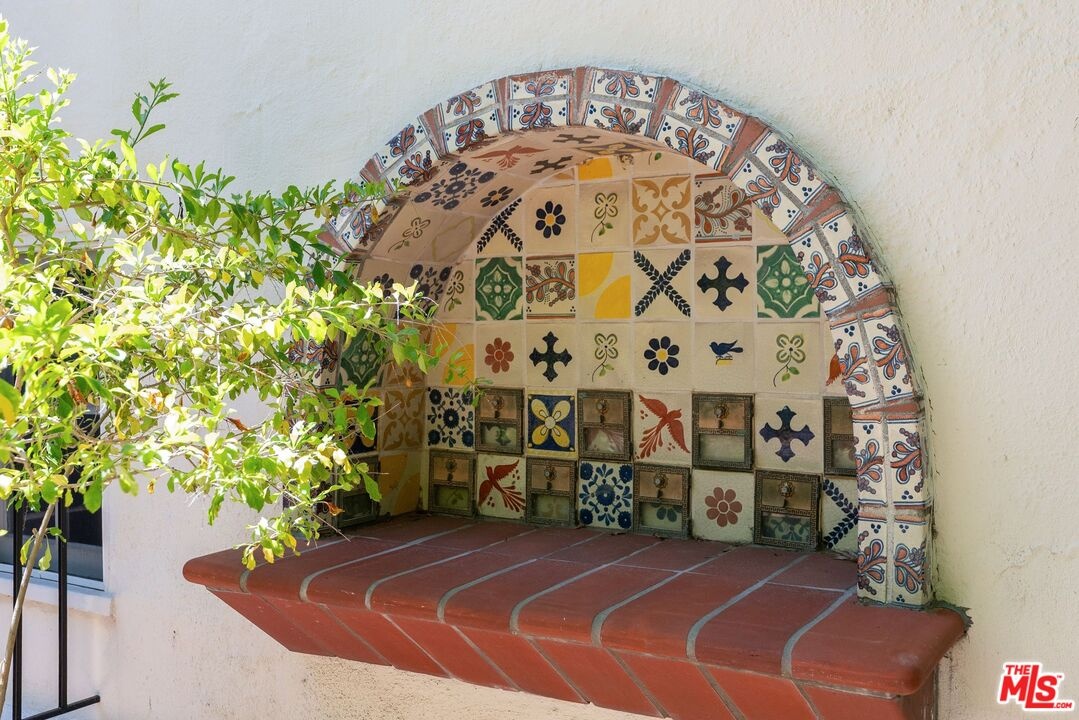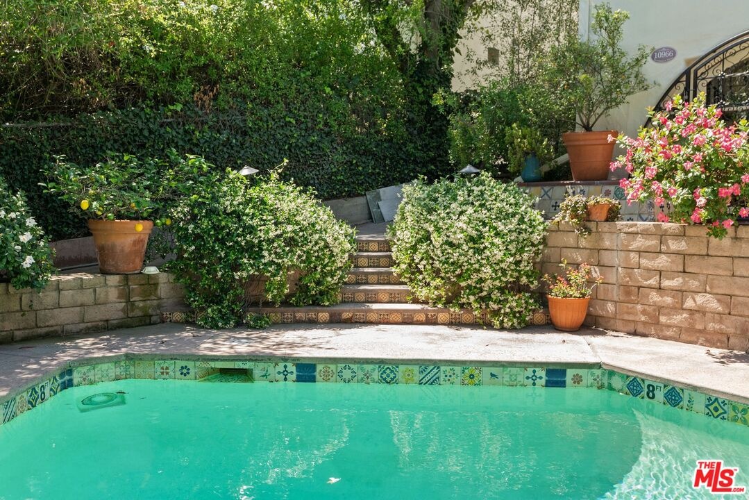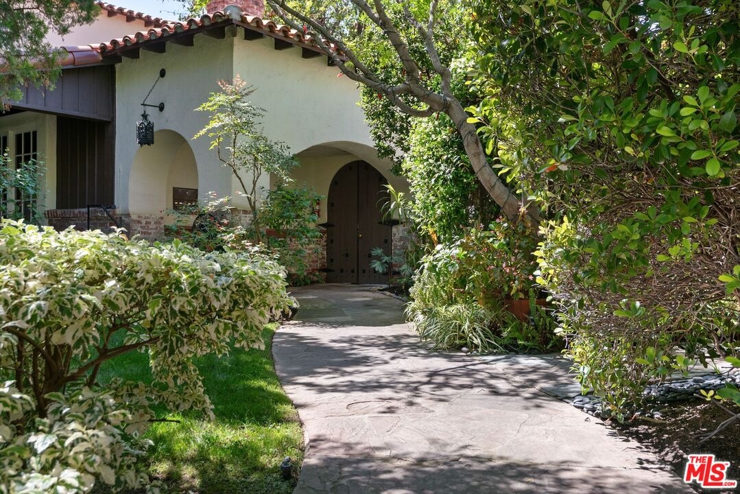 Tucked within a lush garden setting and anchored by a sculptural olive tree, this exquisitely restored 1935 Spanish residence offers a rare opportunity to experience the romance and craftsmanship of Hollywood-era architecture, thoughtfully revived for modern living. The two-bedroom, two-bath home unfolds with warmth and character, where every restoration choice has been carefully guided by the spirit of the original design. Rich color palettes, hand-finished details, and lovingly preserved architectural elements lend the home a distinctive sense of place. Period-sensitive updates enhance the structure's historic integrity while subtly introducing contemporary comfort. A rare California basemen, an uncommon feature for homes of this era, adds valuable flexibility for storage, studio space, or future creative use. The primary suite is generously proportioned and designed as a tranquil retreat, complete with a spacious walk-in closet, custom built-ins, and refined millwork that reflects the home's 1930s pedigree. Throughout the living and dining rooms, refinished wood floors, a restored fireplace with a newly crafted mantel, and bespoke lighting evoke the craftsmanship and elegance of the period. In the kitchen, authenticity takes center stage. A beautifully restored original Wedgewood stove serves as both focal point and functional centerpiece, complemented by custom cabinetry and thoughtfully selected materials chosen to remain faithful to the home's architectural lineage. Bathrooms have been reimagined with vintage-inspired fixtures and artisan tilework, ensuring a seamless visual dialogue with the home's original design language. Behind the scenes, modern upgrades including laminated glass windows and doors, updated electrical and plumbing systems, enhanced insulation, and custom millwork-provide both comfort and peace of mind. Beyond the interiors, lush landscaping frames a resort-style pool setting, creating a private outdoor retreat that feels worlds away from the city. Yet the home sits just a five-minute walk from the UCLA campus and medical center, placing world-class dining, cultural institutions, and Westwood Village's vibrant amenities moments from the front door. The residence also includes two parking spaces with a covered carport, a valuable convenience in this highly sought-after neighborhood. A truly rare offering, where the romance of 1930s Spanish architecture meets the thoughtful refinement of a meticulous restoration.