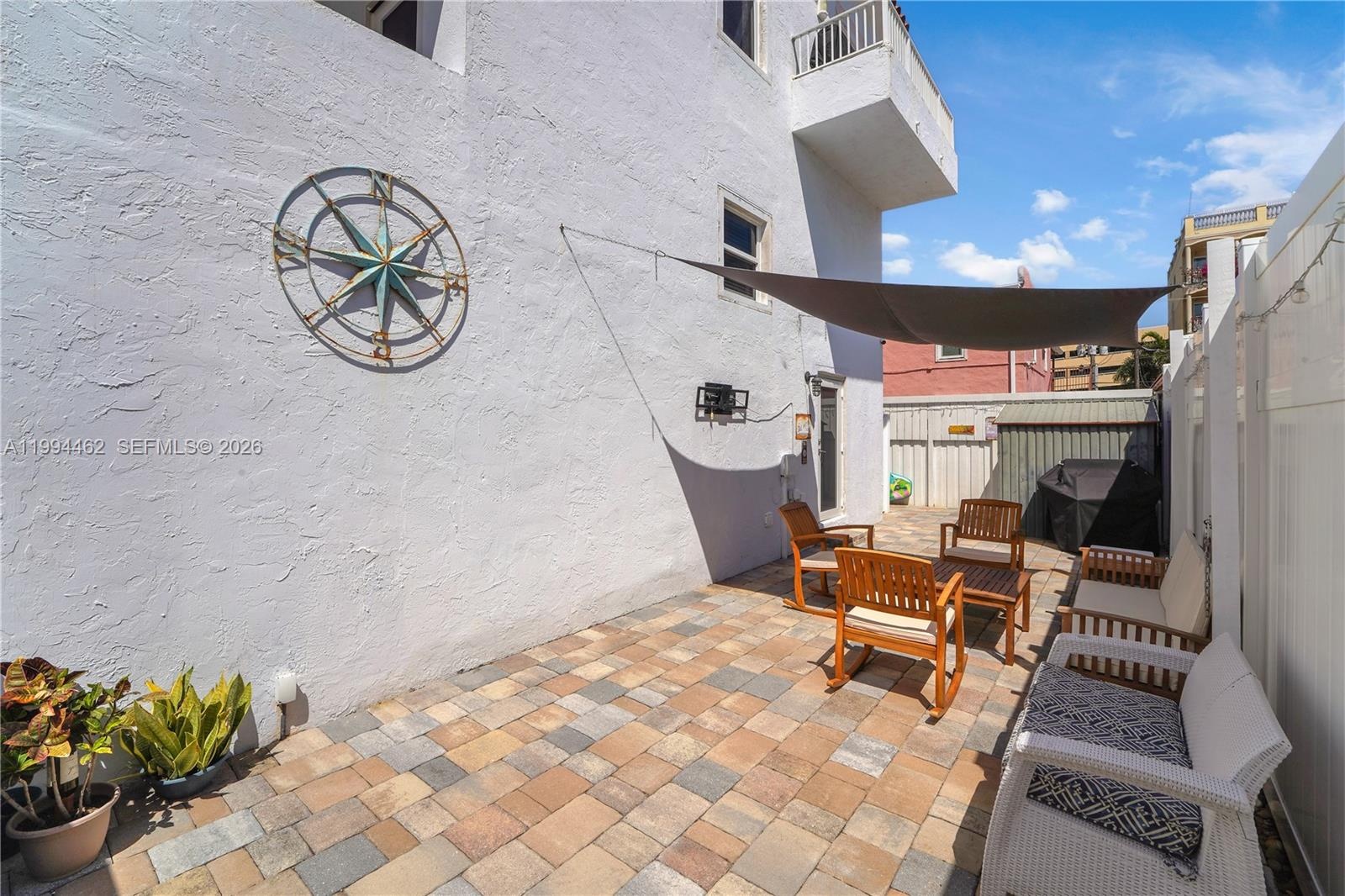 Live, Rent, or Both—A Versatile Coastal Opportunity. A rare offering in Hollywood Beach, where condos dominate, this unique townhome places you just moments from the shoreline with built-in income potential. Ideally located between the Hollywood Beach Boardwalk and the Intracoastal, you’ll enjoy walkable access to both. Set on a corner lot, the home spans three thoughtfully designed levels. Enter on the second floor to a bright, spacious foyer that opens to the main living area and a brand-new kitchen featuring waterfall quartz countertops, custom cabinetry, a large pantry, and eat-in counter. The third level includes a generous primary suite with a newly redesigned bath and two additional rooms and a bath, including a guest room with beautiful ocean views and a space currently styled as a custom wardrobe. Outdoors, enjoy a private patio with clean-lined pavers, white privacy fencing, an outdoor shower to rinse off after the beach, plenty of storage, and direct access to the newly paved Virginia Street leading to the boardwalk. With a separate-entry first level, the property offers flexible living and income-producing potential. Short-term rentals are permitted with restrictions, making this an ideal opportunity to live, rent, or both.