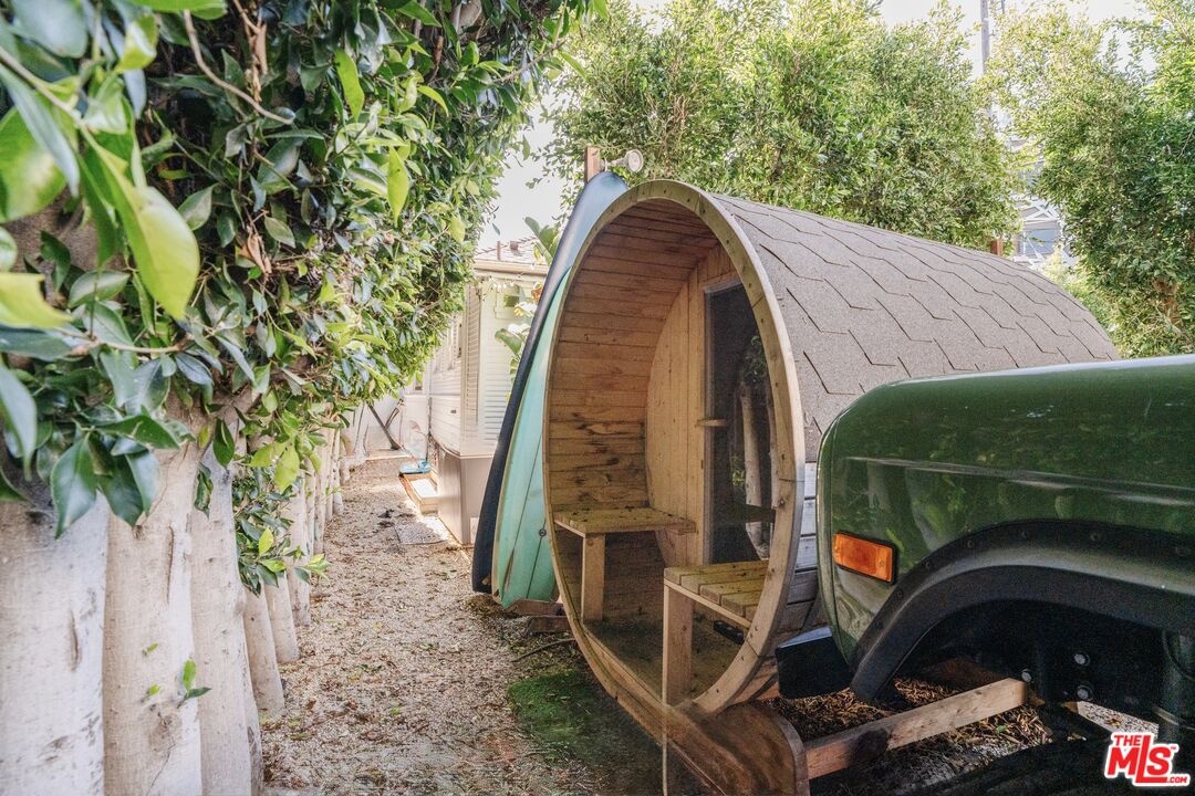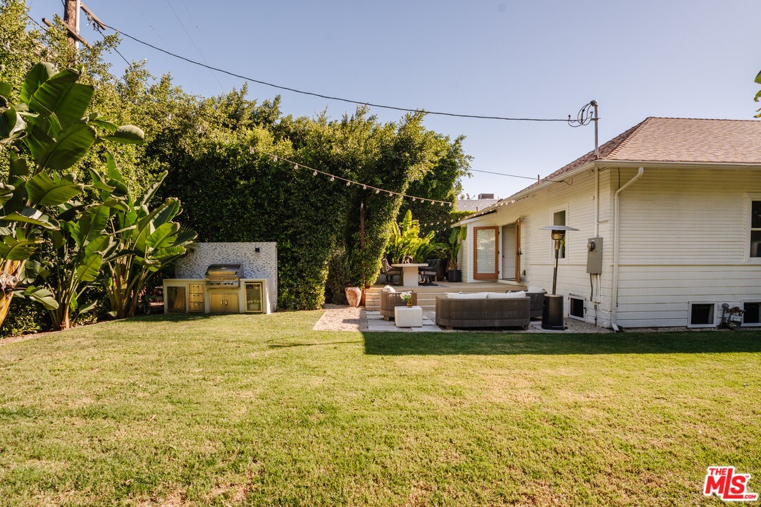 This thoughtfully updated Venice bungalow blends privacy, natural light, and a private wellness retreat featuring a sauna and cold plunge, all centered around one of the largest grassy backyards in Venice and designed for effortless indoor outdoor living in one of the Westside's most coveted coastal neighborhoods. A charming front courtyard welcomes you into the residence, where original bay windows flood the living room with natural light and create an inviting space for relaxing or entertaining. The open flow moves seamlessly through the dining area into a minimalist, design-forward kitchen, creating an easy rhythm for everyday living and hosting. French doors extend the living space to a sun drenched dining deck overlooking the expansive backyard complete with a full outdoor kitchen. The grounds offer endless possibilities for entertaining, play, or future customization, while the sauna and cold plunge create a spa-like setting to unwind after a day at the beach. Whitewashed interiors give the home a bright contemporary feel while remaining low maintenance and highly functional. Fully gated and hedged for privacy, the property also features secure parking for two vehicles, enhancing the home's rare compound-like setting. A unique opportunity to enjoy relaxed Venice living just moments from the beach and Abbot Kinney Boulevard.