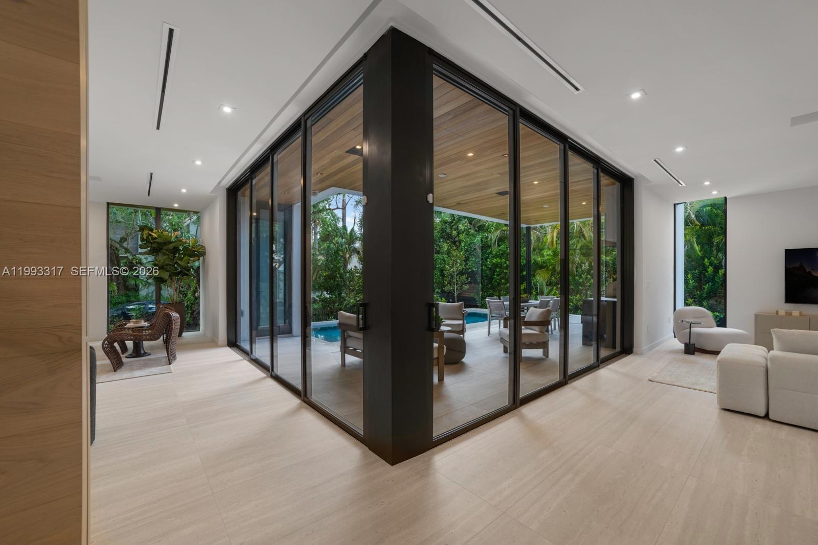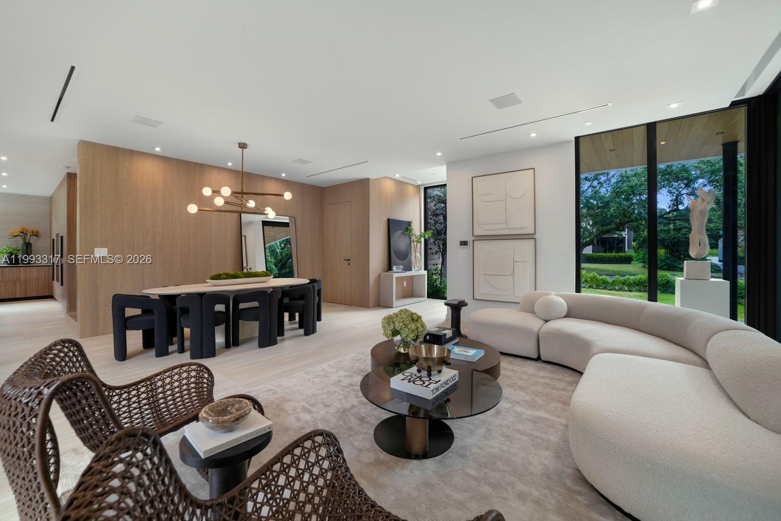 Villa Serene, a modern sanctuary in one of Coconut Grove’s most coveted tree-lined enclaves, steps from Merry Christmas Park. Designed by Ramon Pacheco, built by The Calta Group, and curated by Assure Interiors. This smart home features 5 bedrooms, 5 full baths, and 2 half baths with a cabana bath, designed for seamless style, luxury, and comfort. Interiors feature porcelain floors in main living areas, warm hardwood upstairs, and custom Italian doors throughout, creating a serene and sophisticated atmosphere. The open kitchen by Mia Cucina is anchored by a waterfall island with Cosentino porcelain surfaces and Sub-Zero and Wolf appliances, including a gas cooktop and convection steam oven, perfect for culinary creativity and entertaining. Fully retractable glass doors connect the living spaces to a private landscaped backyard with a pool, covered terrace, and fully equipped summer kitchen, great for year-round gatherings. Additional highlights include Savant smart home integration, a security system, and dual-zone A/C. Ideally located near Coconut Grove Village with dining, shopping, marinas, parks, and top-rated schools. Sophisticated design for a luxurious lifestyle with elegant indoor-outdoor living!