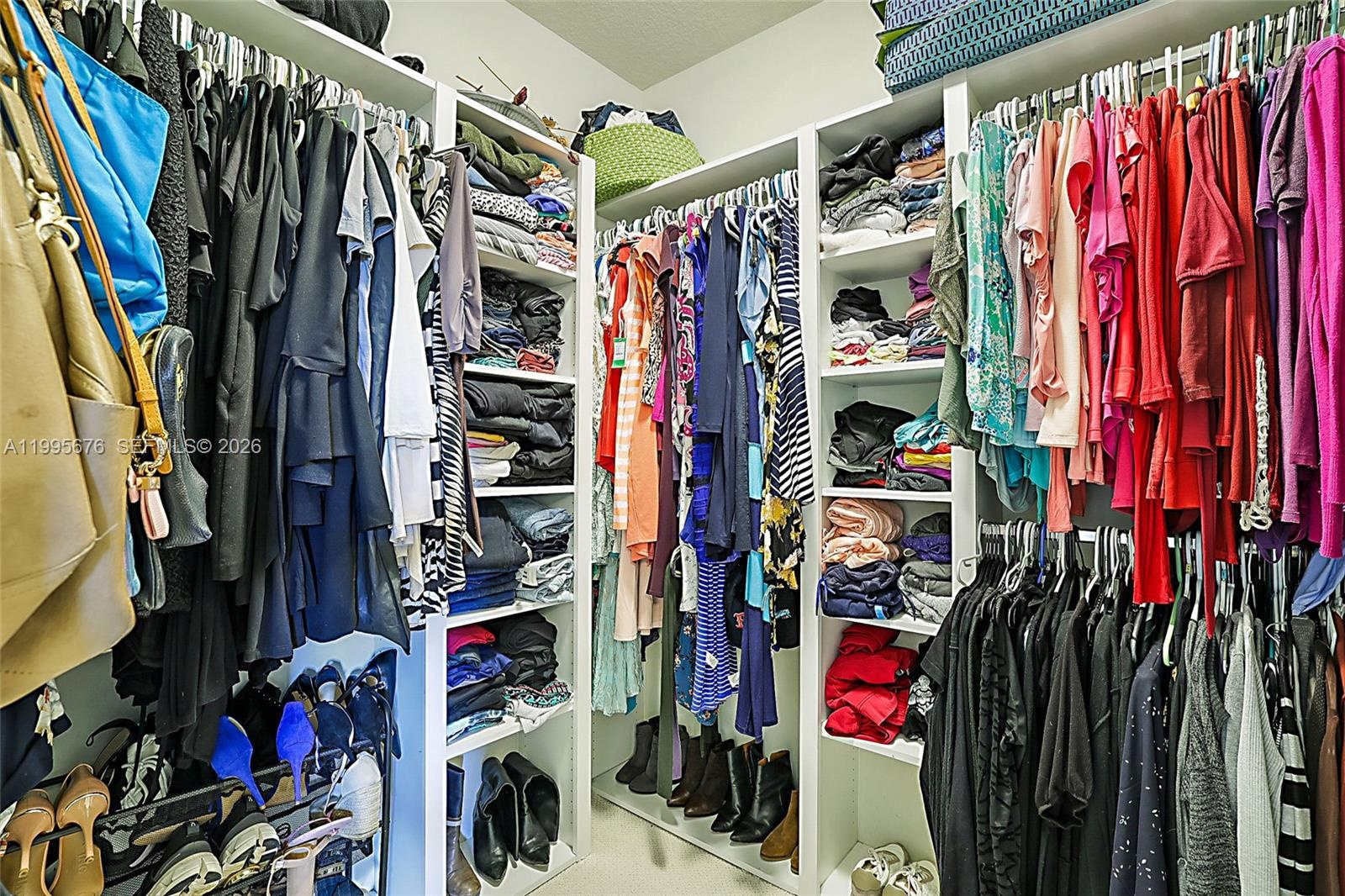 - Primary walk-in closet with custom built in shelving.