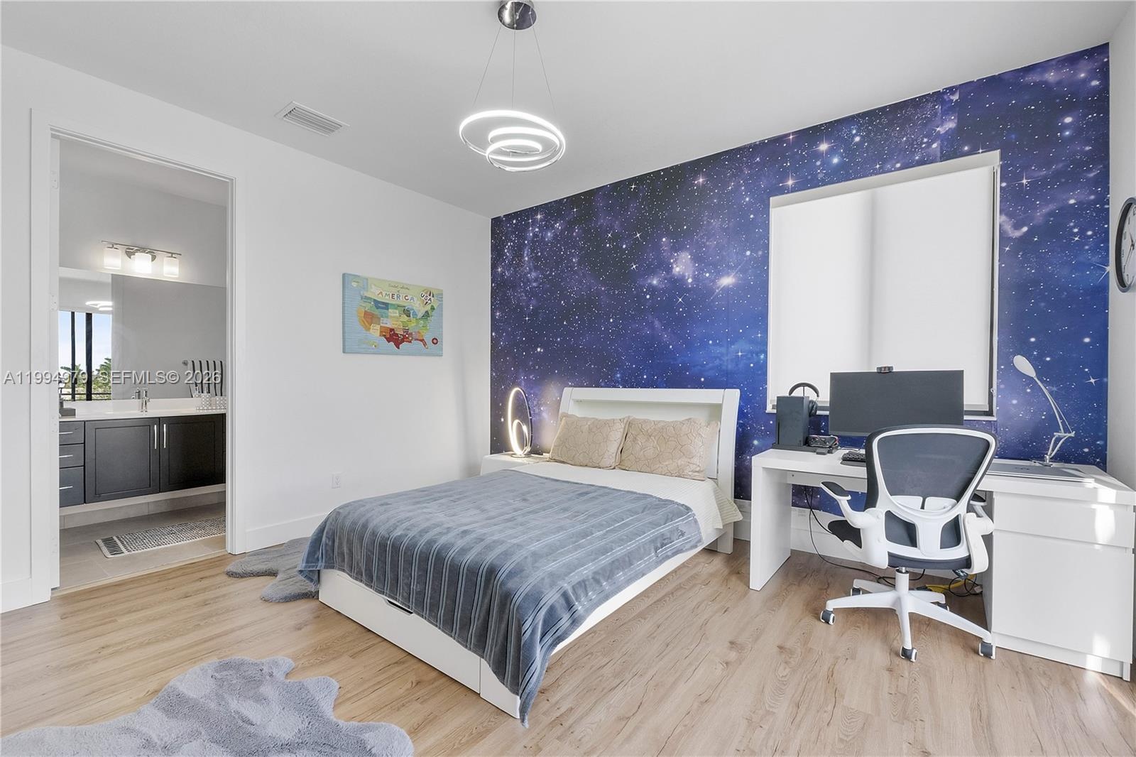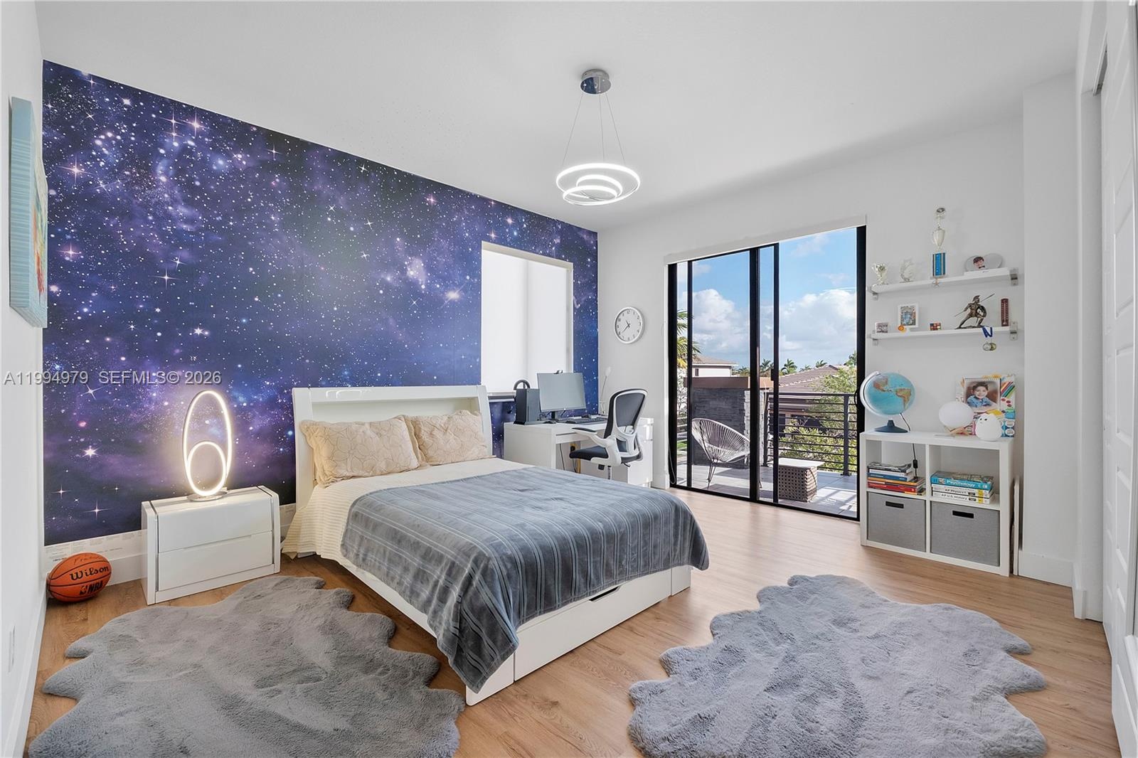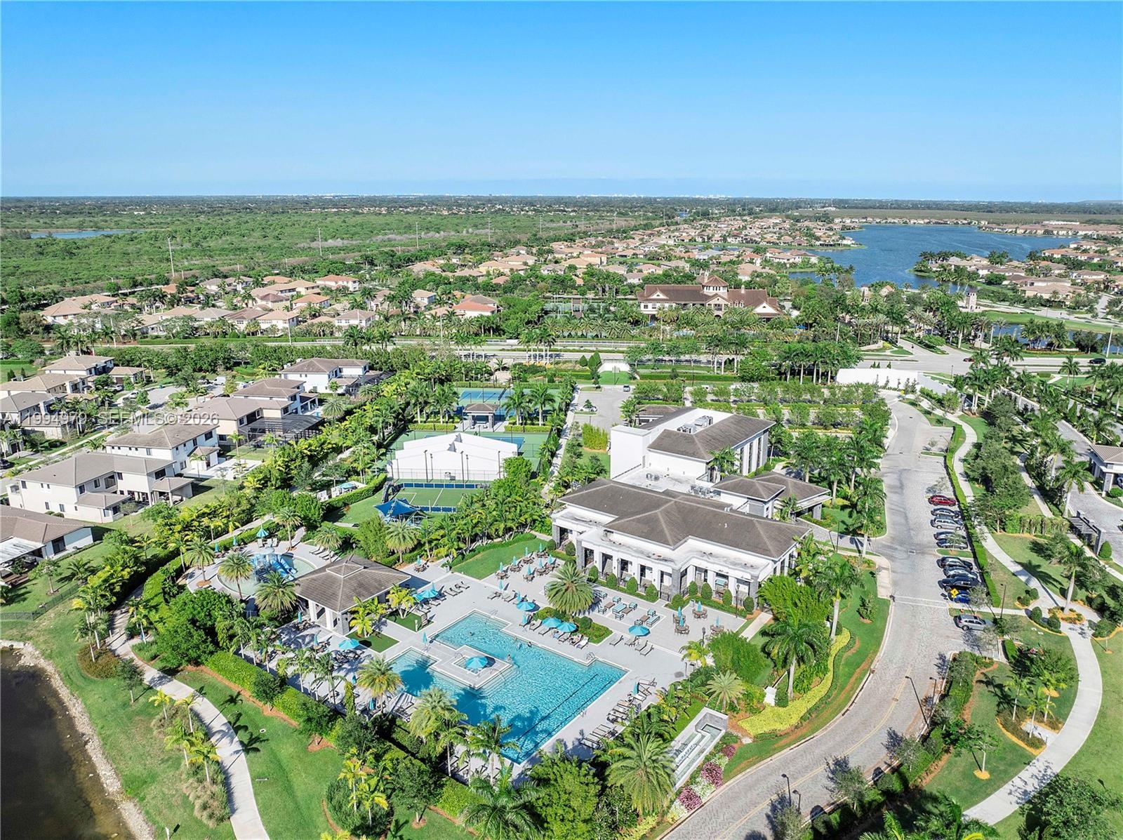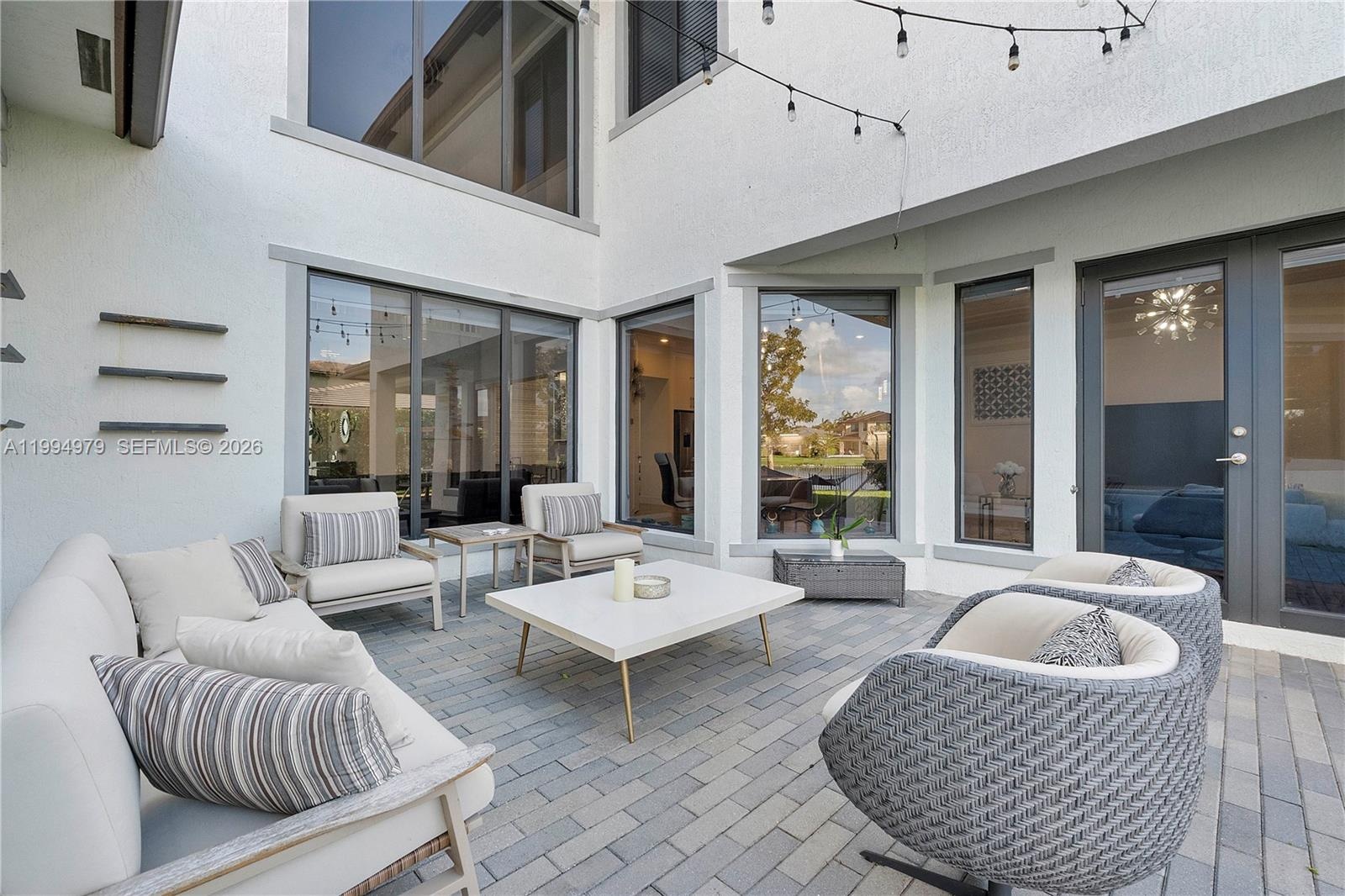 The first-floor primary suite is a true retreat, offering direct backyard access, coffered ceilings, two walk-in closets, and a spa-inspired bath with a jetted Roman tub and dual-head shower. Upstairs, five additional bedrooms and an oversized loft provide flexible space for guests, a home office, or leisure. The expansive backyard offers a terrace with ample room to add a custom pool. A private outdoor haven to enjoy South Florida living year-round. Smart home-ready infrastructure allows seamless integration of modern technology throughout. Situated on a corner lot, larger than standard. Furniture is not included but is negotiable.