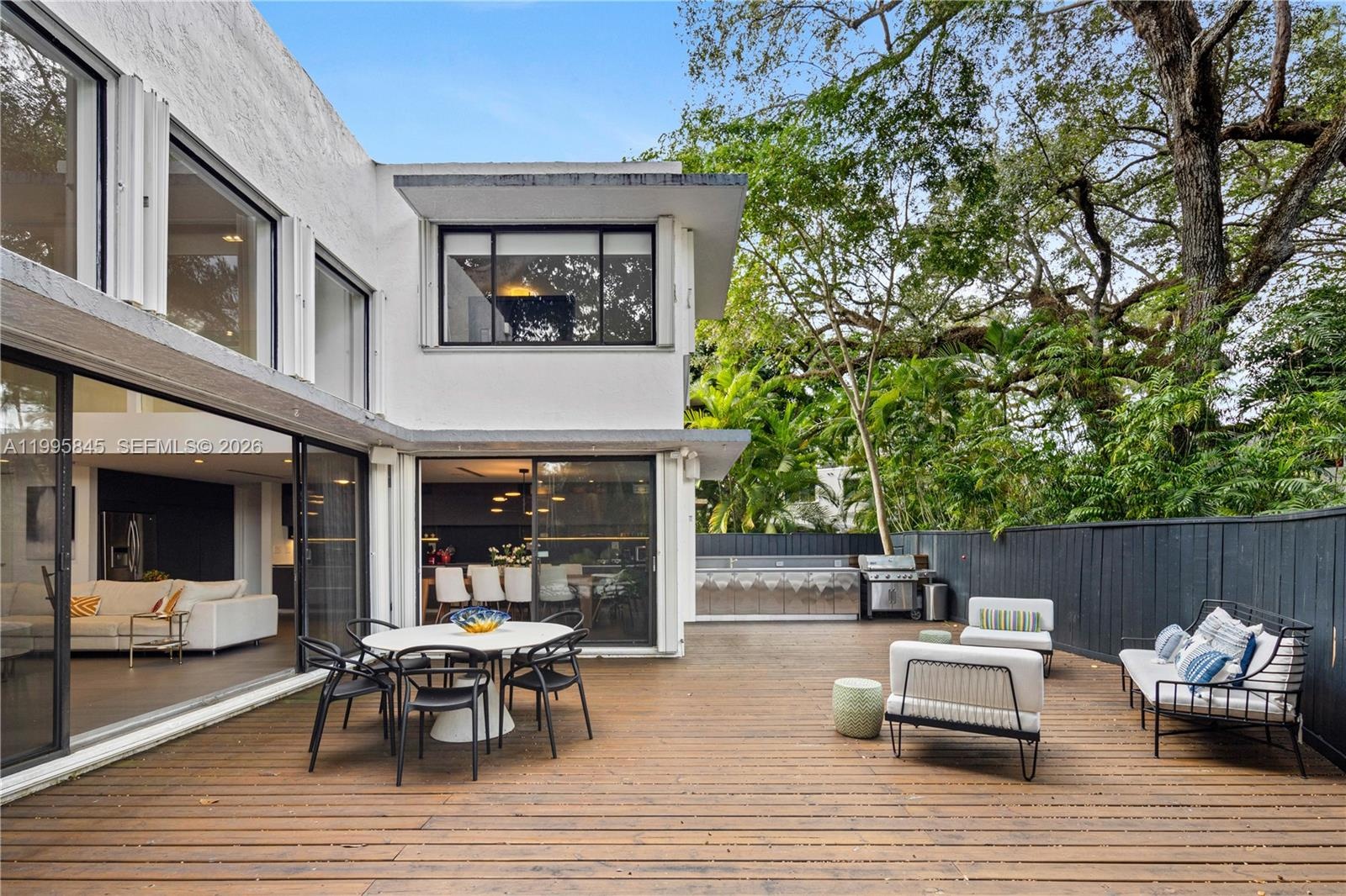 Discover a rare opportunity to live in the gated enclave of Kumquat Village, nestled in the heart of South Coconut Grove. One of just ten homes surrounded by lush tropical landscaping and majestic oak trees, this exquisite two-story single-family residence has been meticulously remodeled and thoughtfully designed.