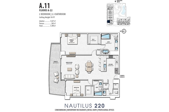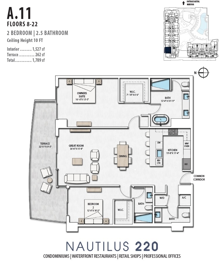 BRAND NEW Two Bedroom 2. 5 Bathroom s luxury condo on 11th floor at Nautilus 220 N220 with Northeast Northwest exposure and incredible water views.