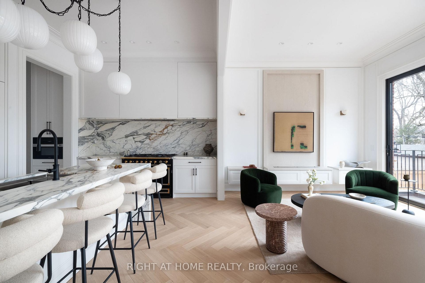 A custom built home designed by the renowned Ancerl Studio. This residence brings the iconic spirit of a New York City brownstone to one of Toronto's most prestigious enclaves, steps from the historic Casa Loma. 11-foot ceilings on both the main floor and basement, with 9-foot ceilings throughout the second and third levels. A dramatic, three-story open-to-above designer circular staircase finished with white oak treads. On the main floor, massive accordion-style windows, designer kitchen with Miele appliances, a professional-grade La Cornue range and custom wine storage. On the second floor, three generous bedrooms and laundry. The entire third floor is dedicated to a sprawling Primary Suite, offering a private, penthouse-level retreat. Basement featuring floor-to-ceiling windows, coffered tray Ceilings, and seamless microcement Flooring as well as a designer wet bar, a full nanny suite, and a secondary laundry facility. Heated driveway.
