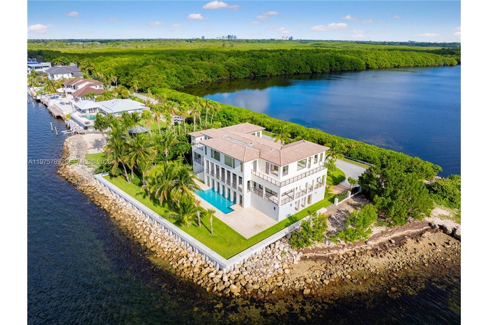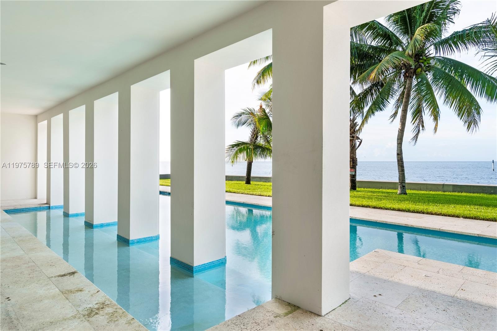 Tip of the World on Lugo Avenue.Gables by the Sea Breathtaking location paired with a stunning contemporary residence. From every room, enjoy unparalleled 360° views framed by floor-to-ceiling impact glass windows & doors. The entrance door itself is a true showpiece, opening into soaring ceilings & a seamless flow of light-filled spaces. Choose your moment: sunrise, sunset ,the sparkling Miami skyline by night.Elevated & elegant, master suite features a spacious balcony overlooking Biscayne Bay. All-new. All-white.Effortless floor plan designed for modern living.The pool deck offers endless water views, complemented by a seawall . Gables by the Sea is a gated community w/Coral Gables Police patrol. 24/7 security. 3D tours, Matterport & videos available. Come see it. Fall in love.
