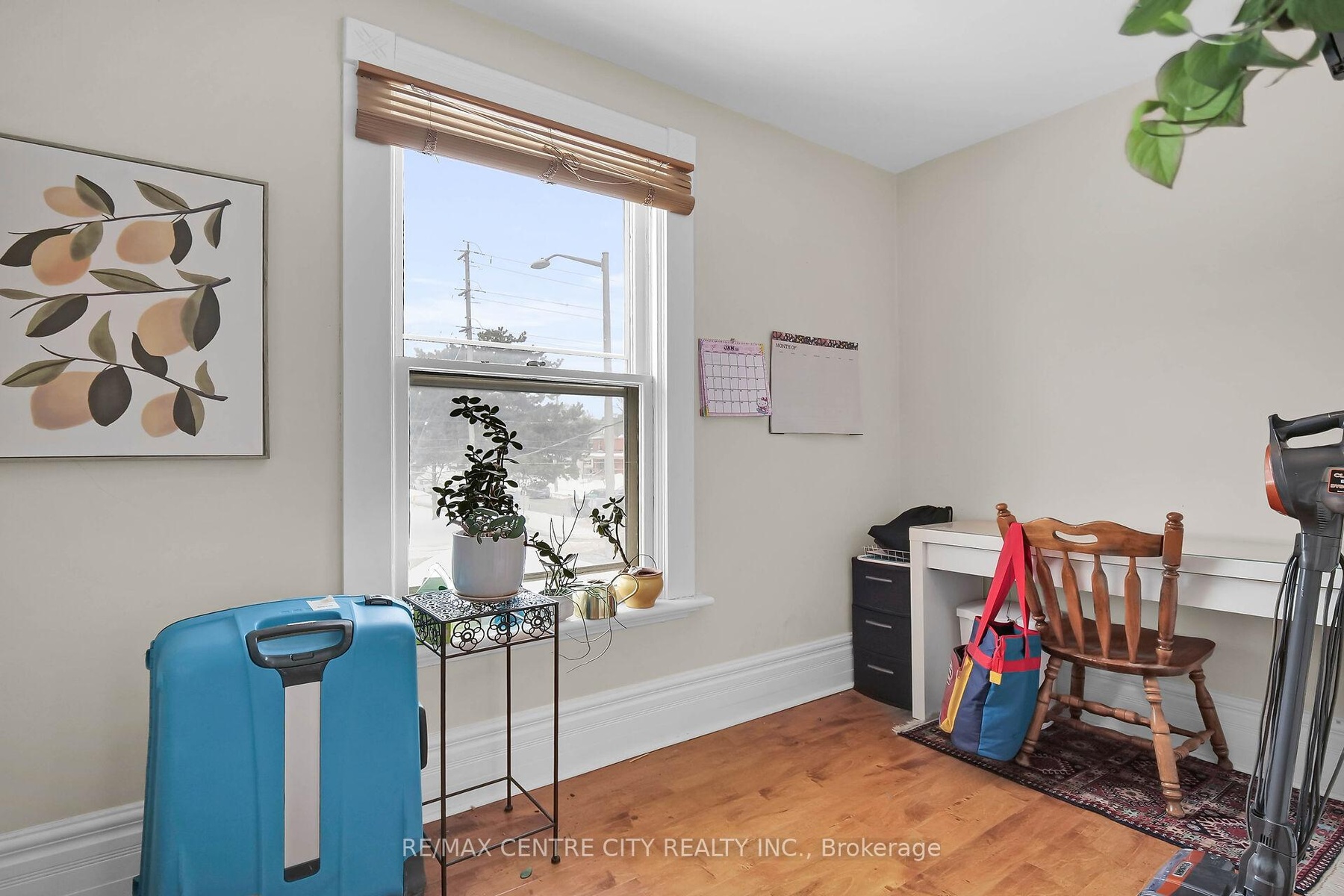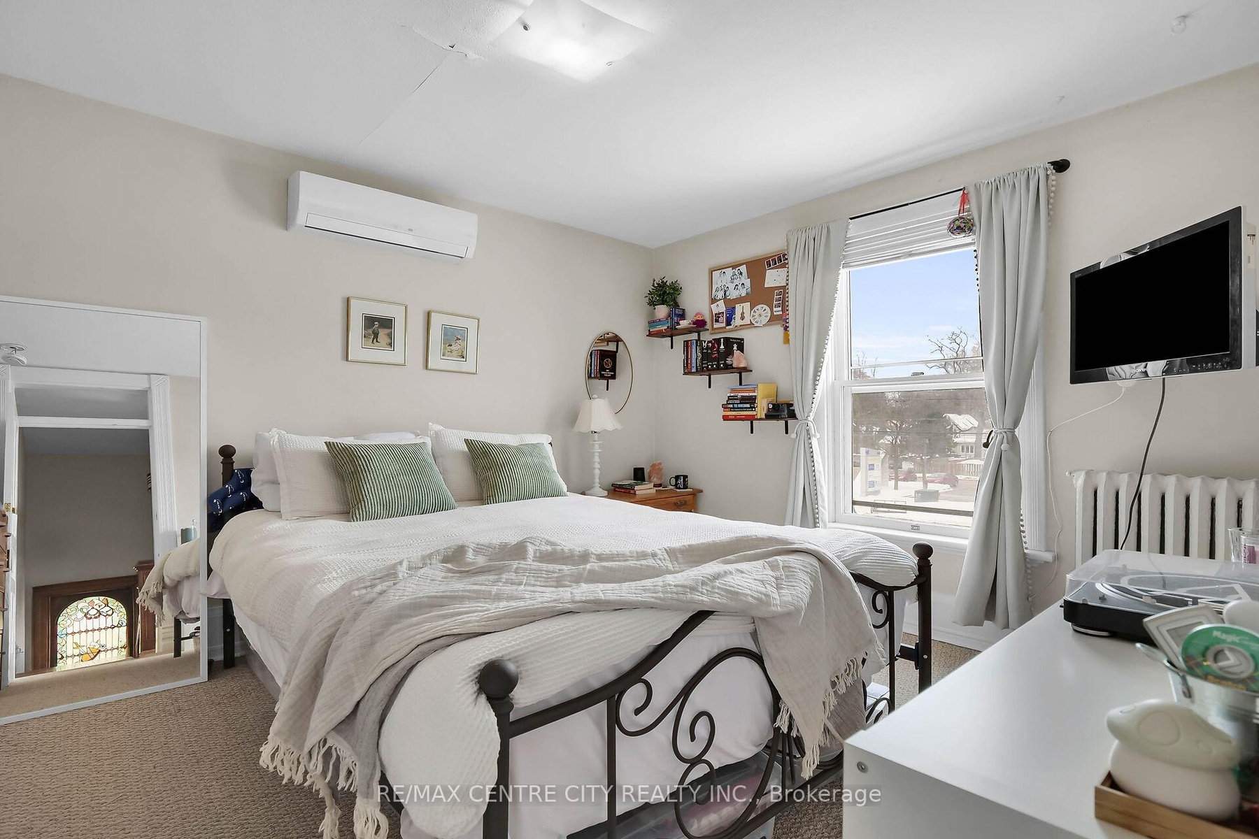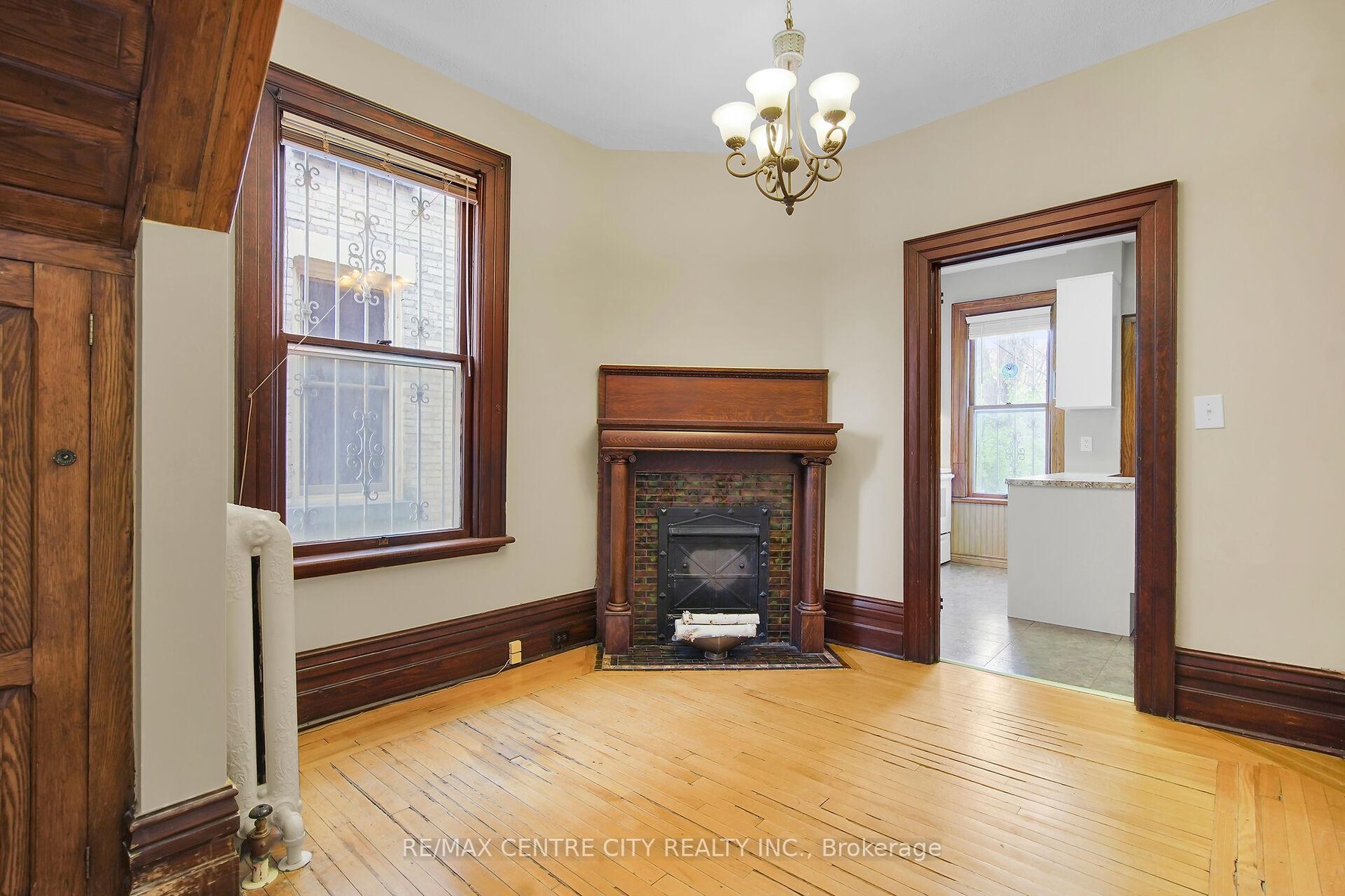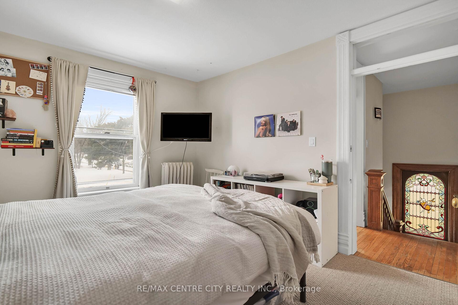Rare opportunity in the heart of London! This beautiful, well-maintained duplex seamlessly blends classic character with modern updates, offering an exceptional opportunity for homeowners & investors alike. This property features ample parking with 9 parking spots accessed from St. George St. Situated in a prime location, steps from Oxford & Richmond St., you'll enjoy convenient access to Western University, St. Joseph's Hospital, University Hospital, downtown London, & the city's extensive park system. Excellent public transit further enhance the convenience of this sought-after address. The main floor unit (presently vacant) is a delightful 1-bedroom suite featuring original hardwood, stunning stained glass, & a beautiful ornate fireplace. Recent updates include a modern white kitchen with plenty of cabinetry & countertop space with peninsula. Other features include a spacious bedroom with large closet with original barn doors, an updated bathroom with a large glass shower, & in-suite laundry. The upper unit is a bright & airy 3-bedroom, two-floor apartment. This spacious unit offers a large living room, a modern white eat-in kitchen, a versatile den, & three generously sized bedrooms. Recent updates include a beautiful bathroom with a large glass shower. Admire the original stained glass in the foyer, wooden staircase, & the classic transoms throughout, adding to the property's charm. In-suite laundry is also included. Both units have ductless AC / Heating units. Other upgrades include a newer combination boiler, kitchens, & bathrooms in both units, the concrete walkway on the east side of the property, & new front porch steps. Existing zoning BDC(1) permits offices including medical/dental, retail & a host of other uses. On-site parking for 9 cars. A change of use permit may be required. This property presents a unique chance to own a piece of London's charm while benefiting from modern comforts & a highly desirable location. Don't miss this opportunity!