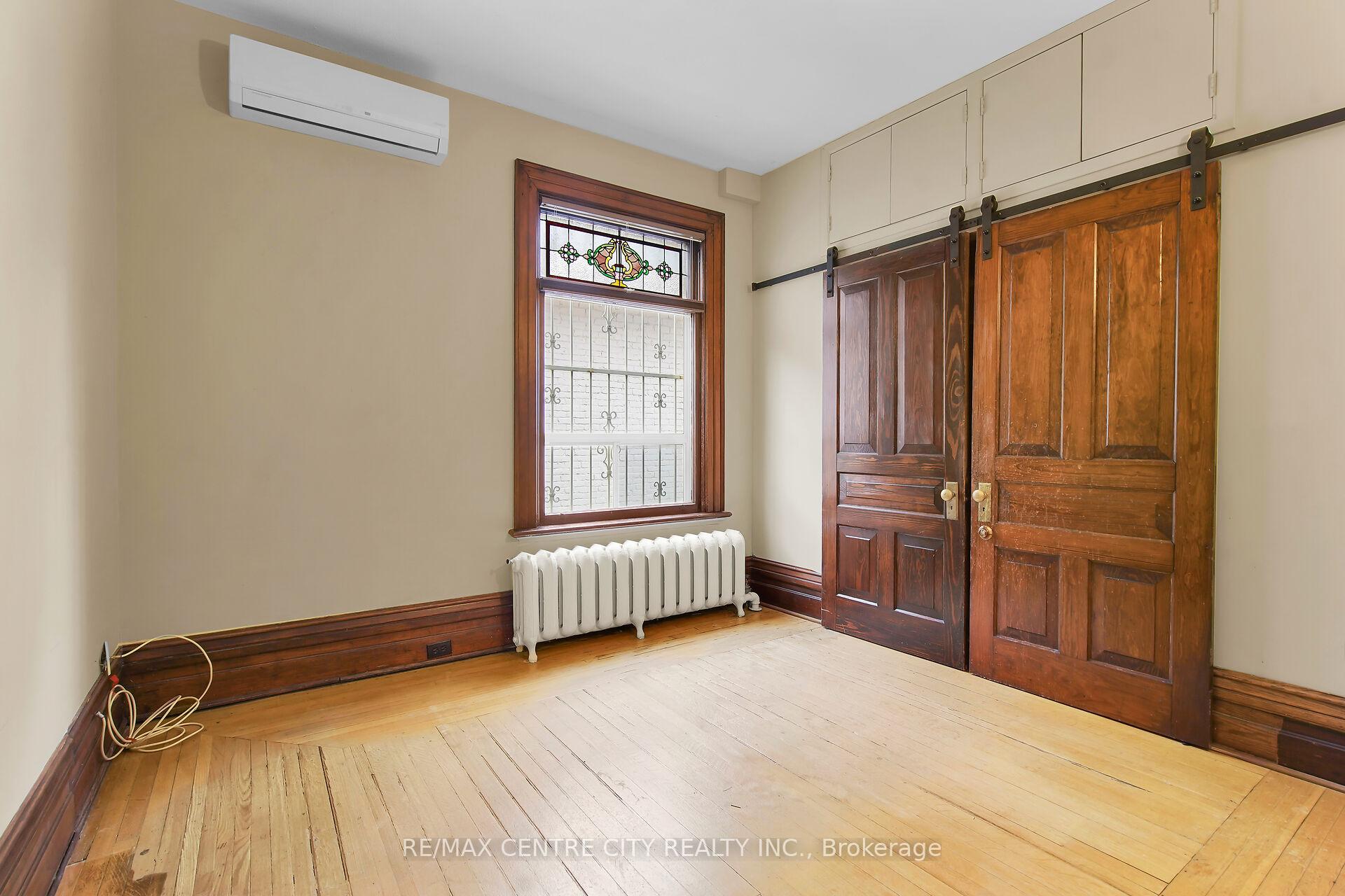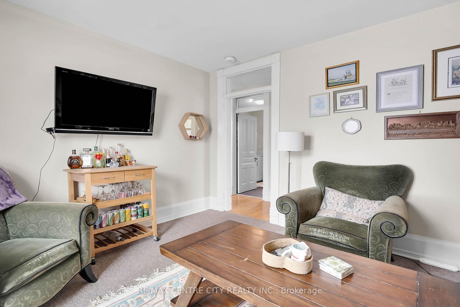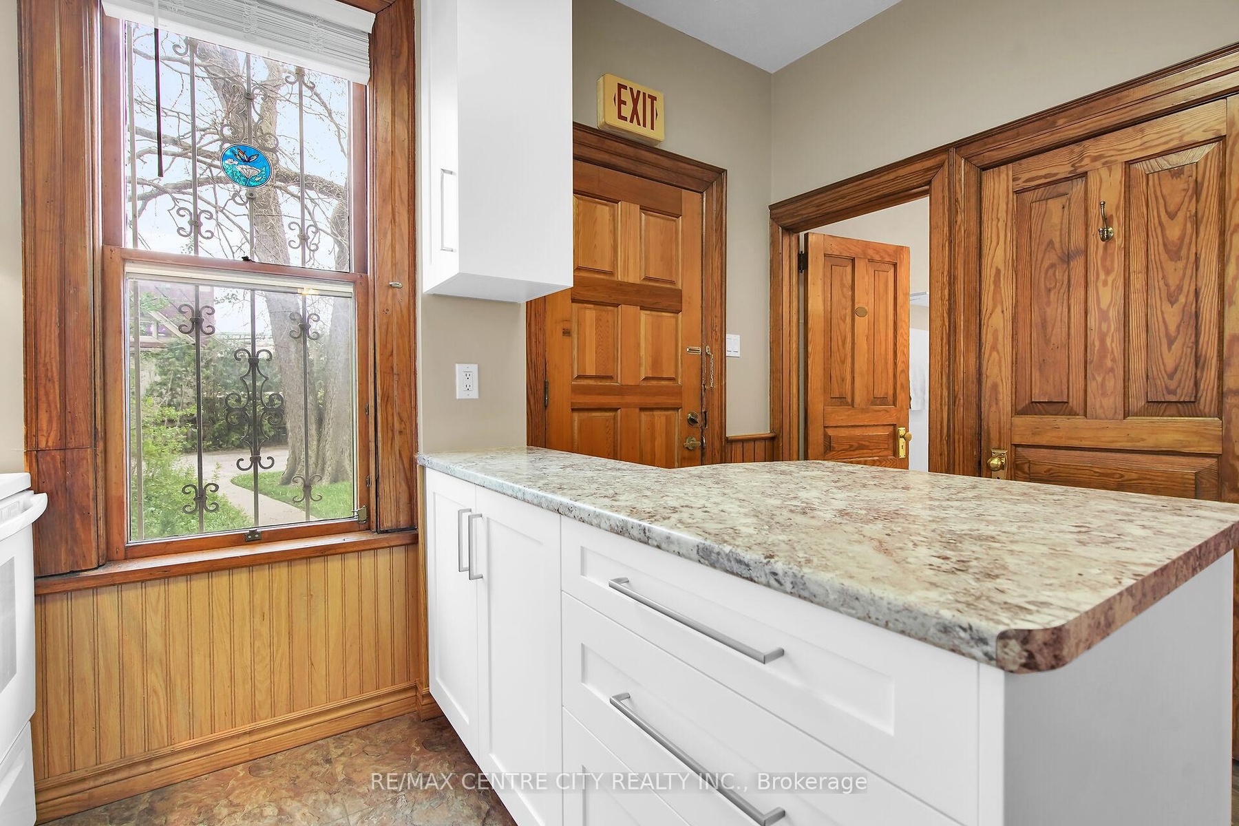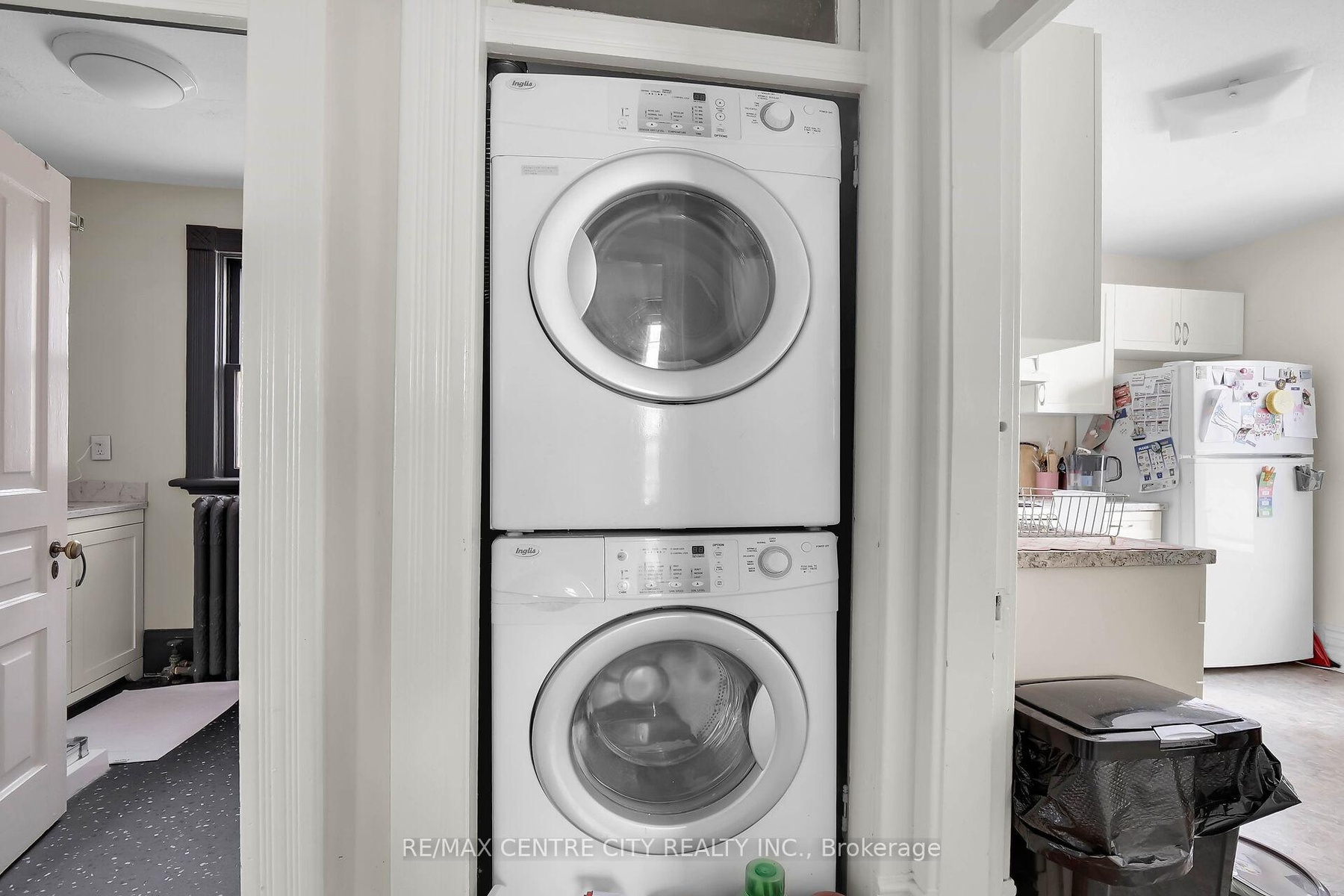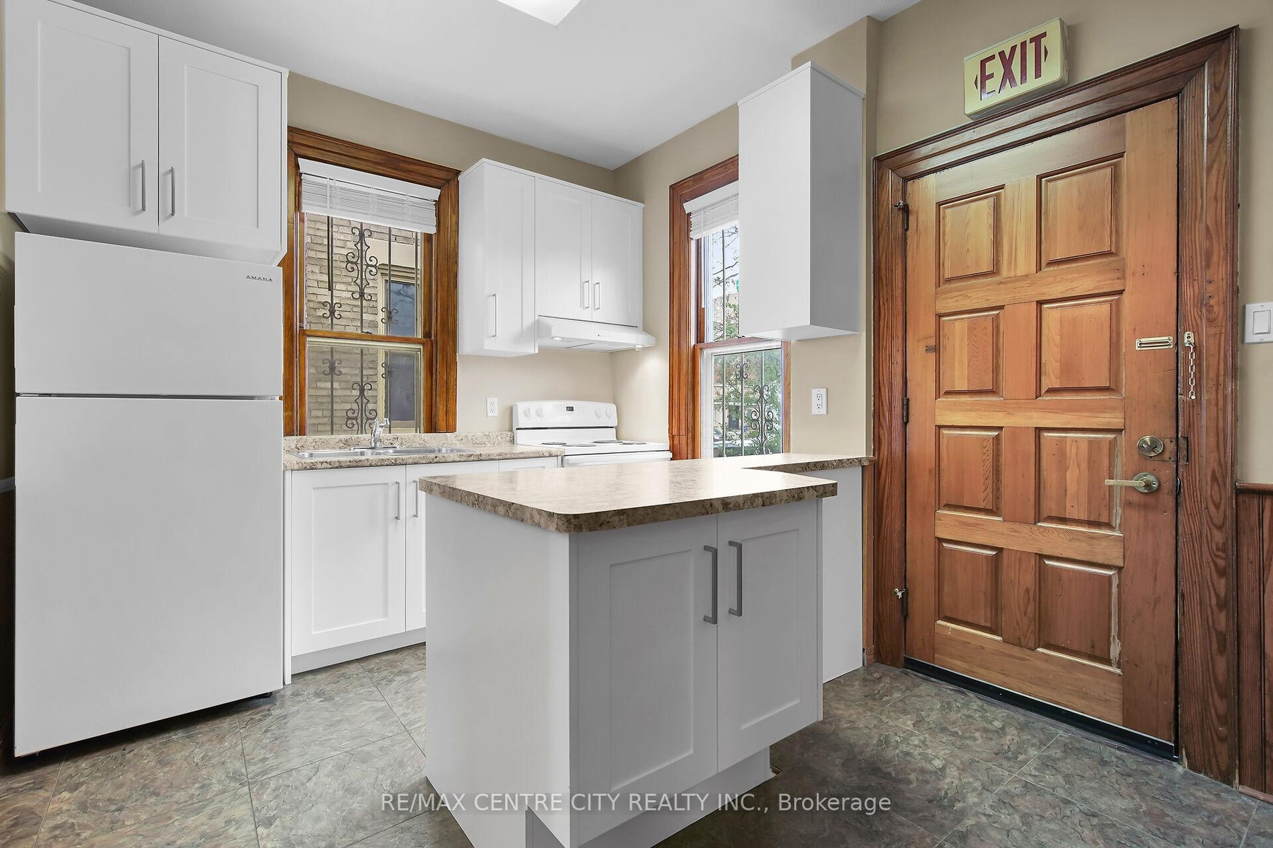 Rare opportunity in the heart of London! This beautiful, well-maintained duplex seamlessly blends classic character with modern updates, offering an exceptional opportunity for homeowners & investors alike. This property features ample parking with 9 parking spots accessed from St. George St. Situated in a prime location, steps from Oxford & Richmond St., you'll enjoy convenient access to Western University, St. Joseph's Hospital, University Hospital, downtown London, & the city's extensive park system. Excellent public transit further enhance the convenience of this sought-after address. The main floor unit (presently vacant) is a delightful 1-bedroom suite featuring original hardwood, stunning stained glass, & a beautiful ornate fireplace. Recent updates include a modern white kitchen with plenty of cabinetry & countertop space with peninsula. Other features include a spacious bedroom with large closet with original barn doors, an updated bathroom with a large glass shower, & in-suite laundry. The upper unit is a bright & airy 3-bedroom, two-floor apartment. This spacious unit offers a large living room, a modern white eat-in kitchen, a versatile den, & three generously sized bedrooms. Recent updates include a beautiful bathroom with a large glass shower. Admire the original stained glass in the foyer, wooden staircase, & the classic transoms throughout, adding to the property's charm. In-suite laundry is also included. Both units have ductless AC / Heating units. Other upgrades include a newer combination boiler, kitchens, & bathrooms in both units, the concrete walkway on the east side of the property, & new front porch steps. Existing zoning BDC(1) permits offices including medical/dental, retail & a host of other uses. On-site parking for 9 cars. A change of use permit may be required. This property presents a unique chance to own a piece of London's charm while benefiting from modern comforts & a highly desirable location. Don't miss this opportunity!