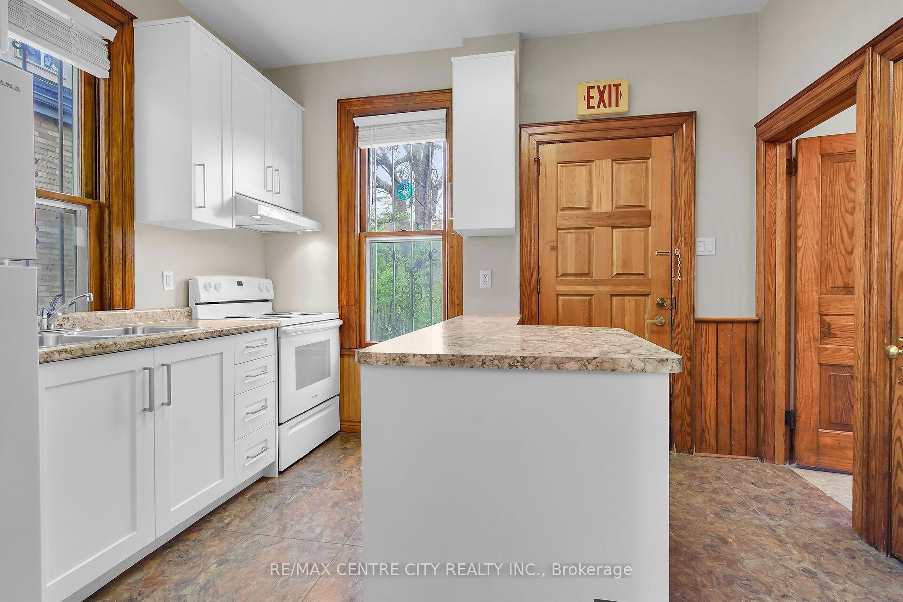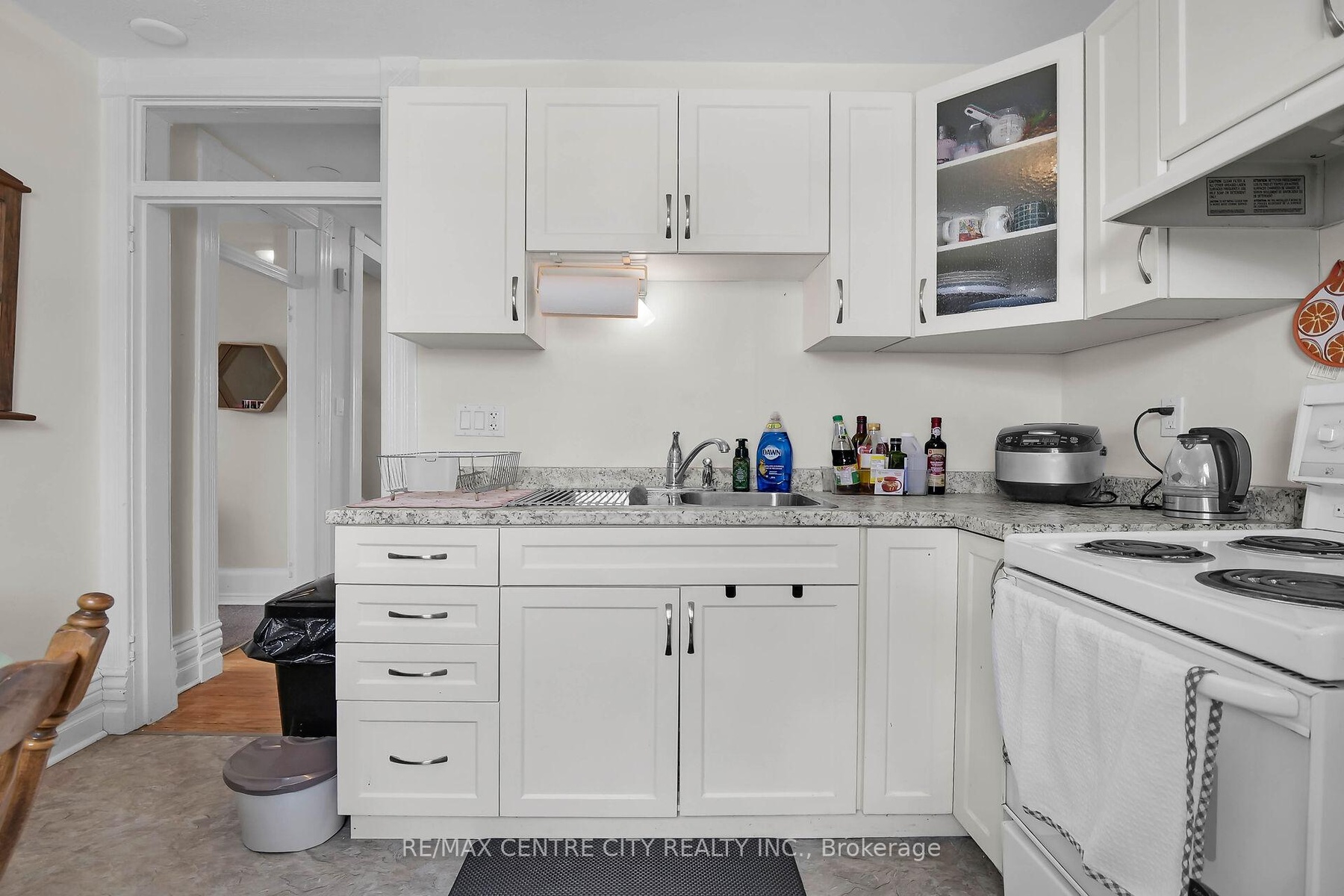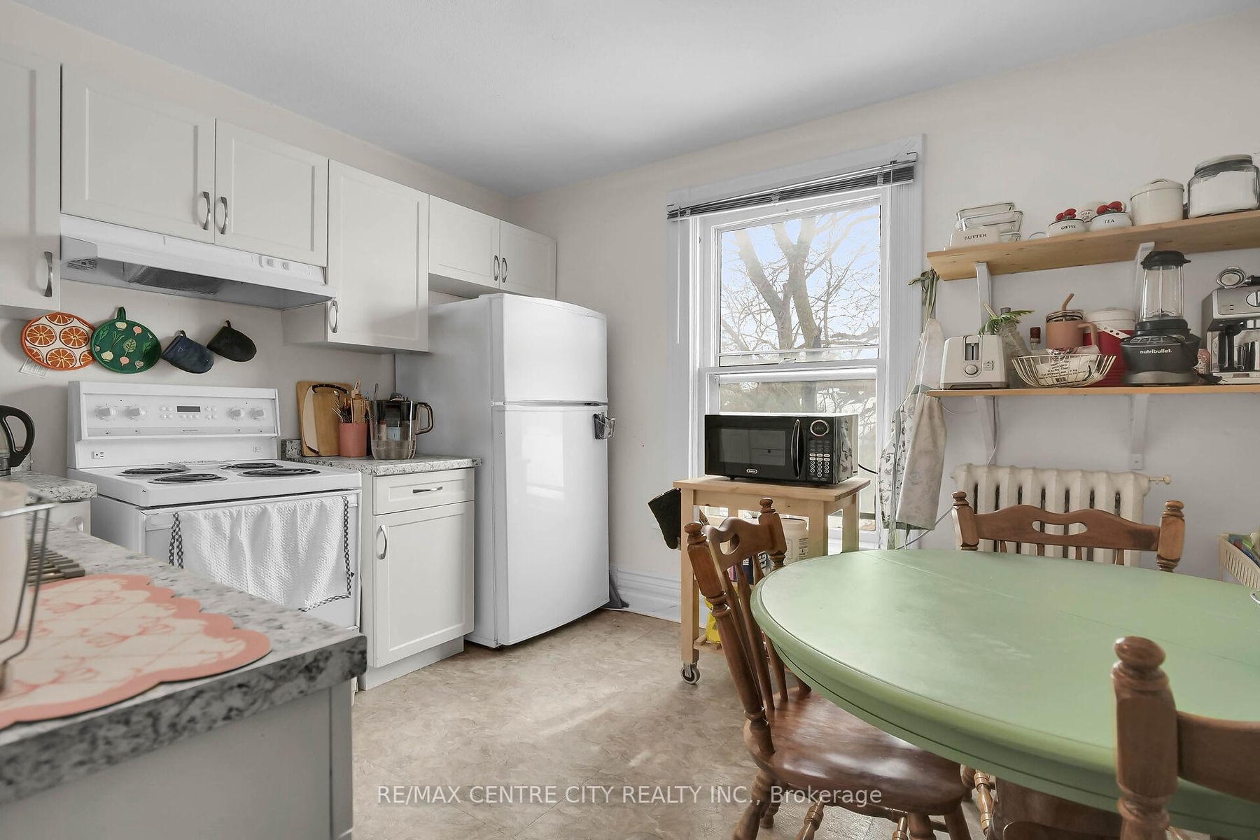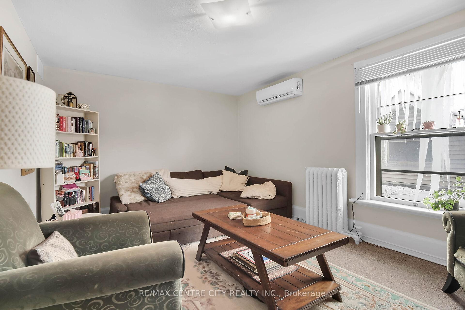 Rare opportunity in the heart of London! This beautiful, well-maintained duplex seamlessly blends classic character with modern updates, offering an exceptional opportunity for homeowners & investors alike. This property features ample parking with 9 parking spots accessed from St. George St. Situated in a prime location, steps from Oxford & Richmond St., you'll enjoy convenient access to Western University, St. Joseph's Hospital, University Hospital, downtown London, & the city's extensive park system. Excellent public transit further enhance the convenience of this sought-after address. The main floor unit (presently vacant) is a delightful 1-bedroom suite featuring original hardwood, stunning stained glass, & a beautiful ornate fireplace. Recent updates include a modern white kitchen with plenty of cabinetry & countertop space with peninsula. Other features include a spacious bedroom with large closet with original barn doors, an updated bathroom with a large glass shower, & in-suite laundry. The upper unit is a bright & airy 3-bedroom, two-floor apartment. This spacious unit offers a large living room, a modern white eat-in kitchen, a versatile den, & three generously sized bedrooms. Recent updates include a beautiful bathroom with a large glass shower. Admire the original stained glass in the foyer, wooden staircase, & the classic transoms throughout, adding to the property's charm. In-suite laundry is also included. Both units have ductless AC / Heating units. Other upgrades include a newer combination boiler, kitchens, & bathrooms in both units, the concrete walkway on the east side of the property, & new front porch steps. Existing zoning BDC(1) permits offices including medical/dental, retail & a host of other uses. On-site parking for 9 cars. A change of use permit may be required. This property presents a unique chance to own a piece of London's charm while benefiting from modern comforts & a highly desirable location. Don't miss this opportunity!