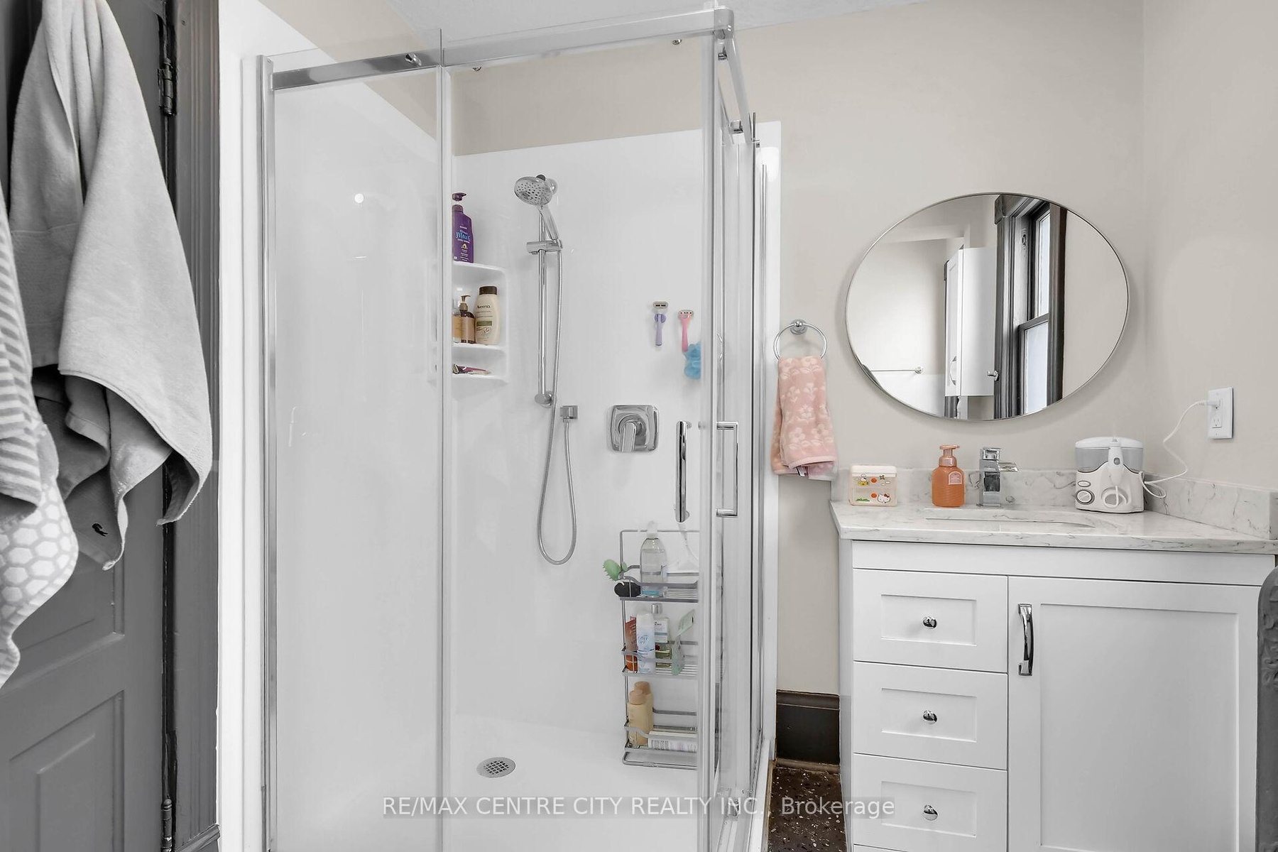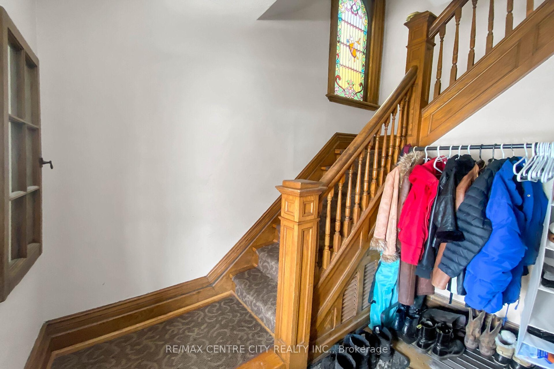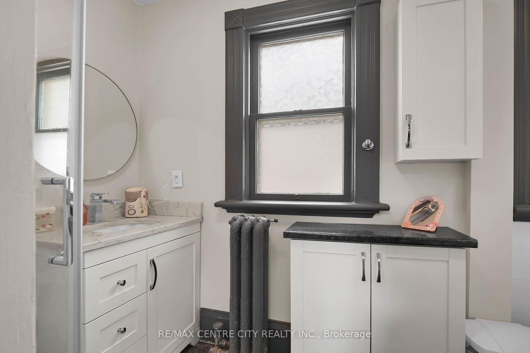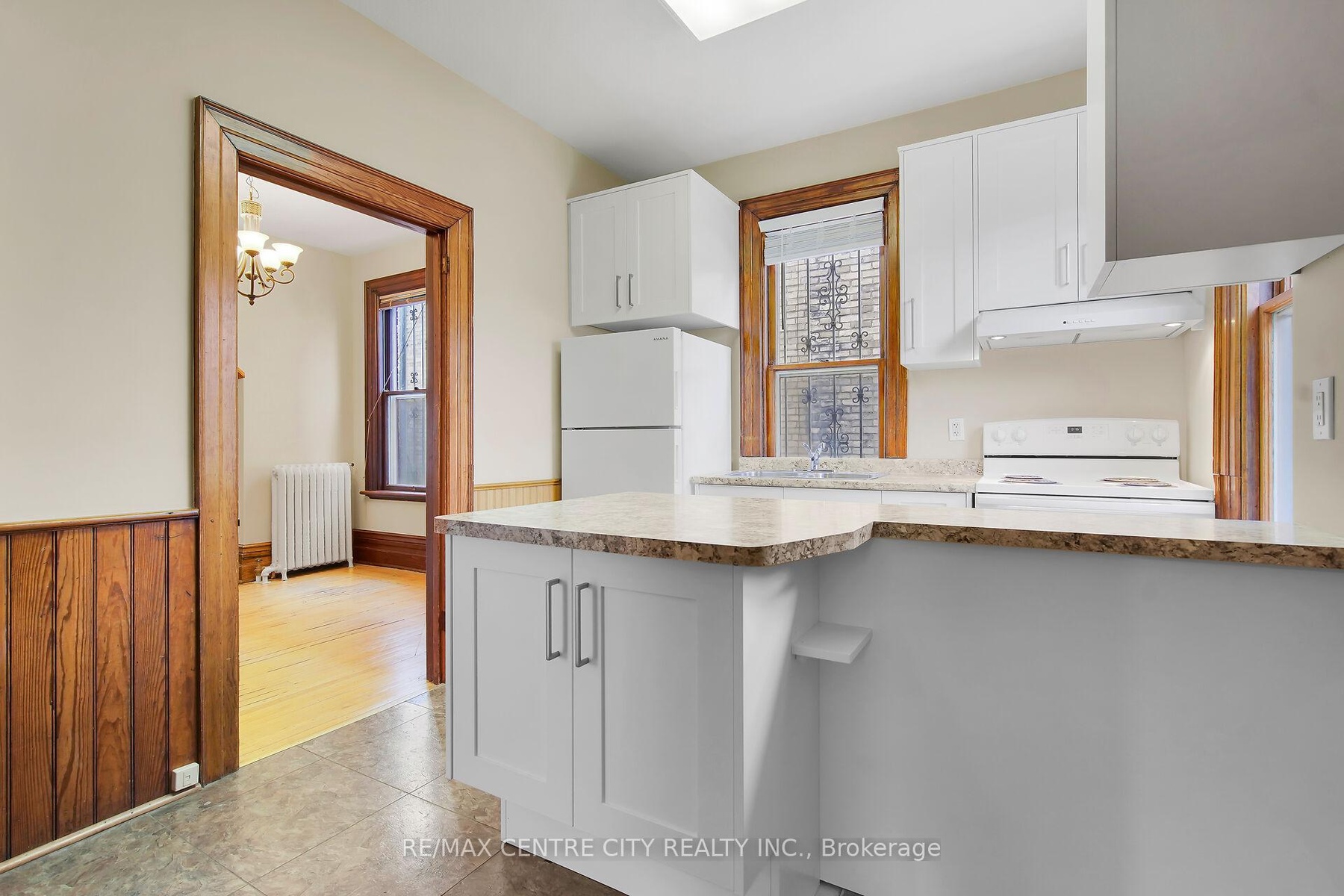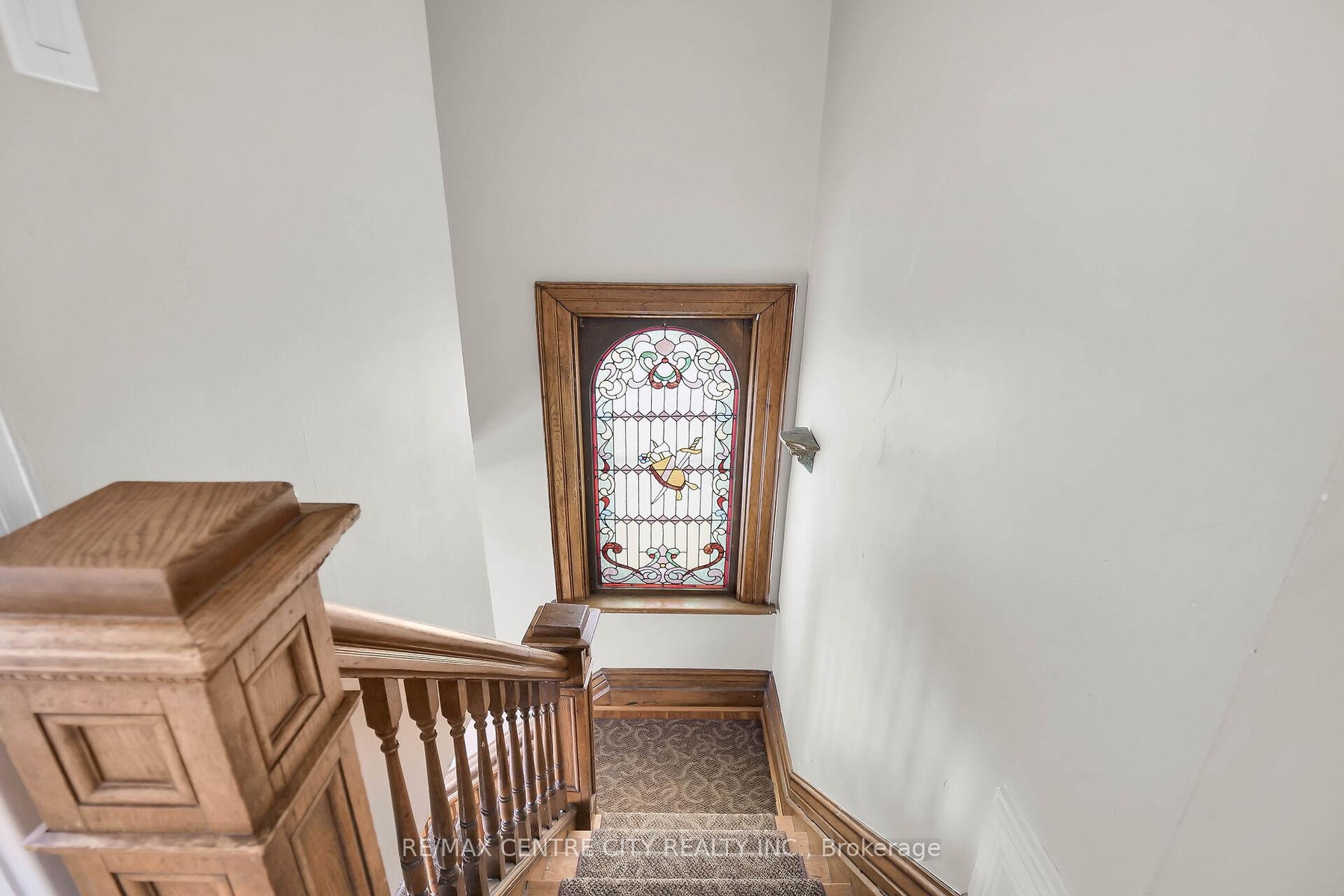 Rare opportunity in the heart of London! This beautiful, well-maintained duplex seamlessly blends classic character with modern updates, offering an exceptional opportunity for homeowners & investors alike. This property features ample parking with 9 parking spots accessed from St. George St. Situated in a prime location, steps from Oxford & Richmond St., you'll enjoy convenient access to Western University, St. Joseph's Hospital, University Hospital, downtown London, & the city's extensive park system. Excellent public transit further enhance the convenience of this sought-after address. The main floor unit (presently vacant) is a delightful 1-bedroom suite featuring original hardwood, stunning stained glass, & a beautiful ornate fireplace. Recent updates include a modern white kitchen with plenty of cabinetry & countertop space with peninsula. Other features include a spacious bedroom with large closet with original barn doors, an updated bathroom with a large glass shower, & in-suite laundry. The upper unit is a bright & airy 3-bedroom, two-floor apartment. This spacious unit offers a large living room, a modern white eat-in kitchen, a versatile den, & three generously sized bedrooms. Recent updates include a beautiful bathroom with a large glass shower. Admire the original stained glass in the foyer, wooden staircase, & the classic transoms throughout, adding to the property's charm. In-suite laundry is also included. Both units have ductless AC / Heating units. Other upgrades include a newer combination boiler, kitchens, & bathrooms in both units, the concrete walkway on the east side of the property, & new front porch steps. Existing zoning BDC(1) permits offices including medical/dental, retail & a host of other uses. On-site parking for 9 cars. A change of use permit may be required. This property presents a unique chance to own a piece of London's charm while benefiting from modern comforts & a highly desirable location. Don't miss this opportunity!