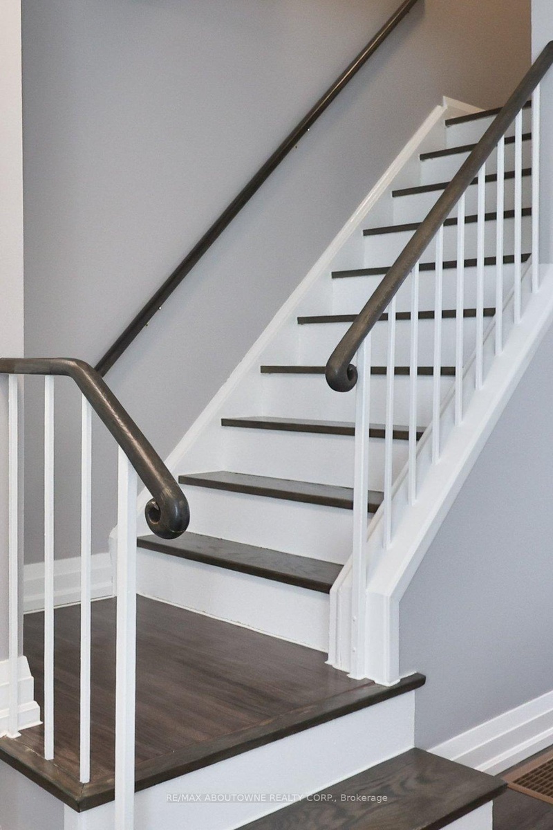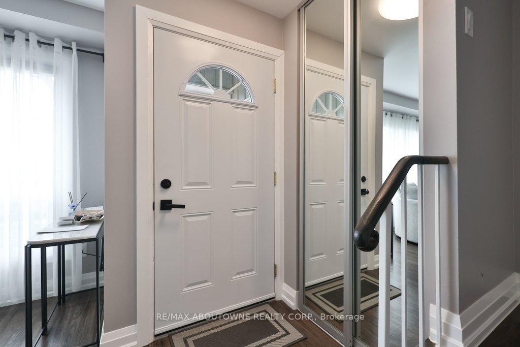 Beautifully renovated with a true open plan design, this 3 bedroom townhome in desirable College Park offers a rare sense of space, light and everyday livability. The main level has been fully opened to create a seamless flow between kitchen, dining and living areas, with extended sightlines that enhance both light and volume. A walkout from the dining area leads to a private rear garden backing onto green space, offering a quiet setting well removed from Upper Middle Road. The updated kitchen features shaker style cabinetry, stainless steel appliances, subway tile backsplash and ample counter space, directly connected to the dining area for everyday ease. The living room is notably wide and well proportioned, with a large front window that fills the space with natural light and reinforces the open feel of the home. Updated flooring, trim and interior doors add to the clean, cohesive finish throughout. Upstairs, three well sized bedrooms offer comfortable accommodation for families, guests or a home office, including a spacious primary bedroom with excellent proportions, complemented by an updated main bathroom. The finished lower level adds meaningful additional living space with a large recreation room, a renovated 3 piece bathroom, laundry and storage. A significant upgrade includes conversion from electric baseboard heating to gas forced air with central air conditioning, along with updated windows, providing improved comfort and efficiency throughout the year. One covered parking space under carport plus ample visitor parking. Quiet, predominantly owner occupied complex within walking distance to schools, parks, trails, Sheridan College, shopping and transit, with easy access to major highways. A move in ready home offering exceptional space, upgrades and overall livability.