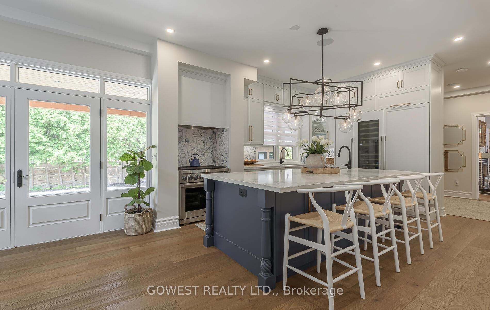 A truly one-of-a-kind, professionally restored home that blends timeless Victorian charm with modern luxury. This stunning residence features 10-ft ceilings on the main floor, pot lights throughout, and a custom-made kitchen with a high-end designer backsplash and a spacious walk-in pantry. Original details include elegant straw glass windows, many original glass-paneled doors (no locks), rounded wall edges, oak staircases, and beautifully preserved Victorian baseboards, crown moldings, and hinges. The living room features a classic wood-burning fireplace, while a striking gas fireplace connects the family room and dining room; perfect for both ambiance and warmth. Enjoy three expansive porches with cedar ceilings and pot lights, and a large separate garage with loft storage. The home boasts a floating staircase leading to the third floor, a skylight, coffered ceilings in the family room, and a third-floor teenager or nanny suite. All bathrooms include heated floors for year-round comfort, while the basement features in-floor heating, a quartz island bar, and a cozy entertainment space. Upgraded with 200 amp electrical service and a new water heater, this home offers over three full floors of living space plus a finished basement. Located just a 10-minute walk to downtown Oakville, this prestigious address offers character, warmth, and sophistication rarely found today.