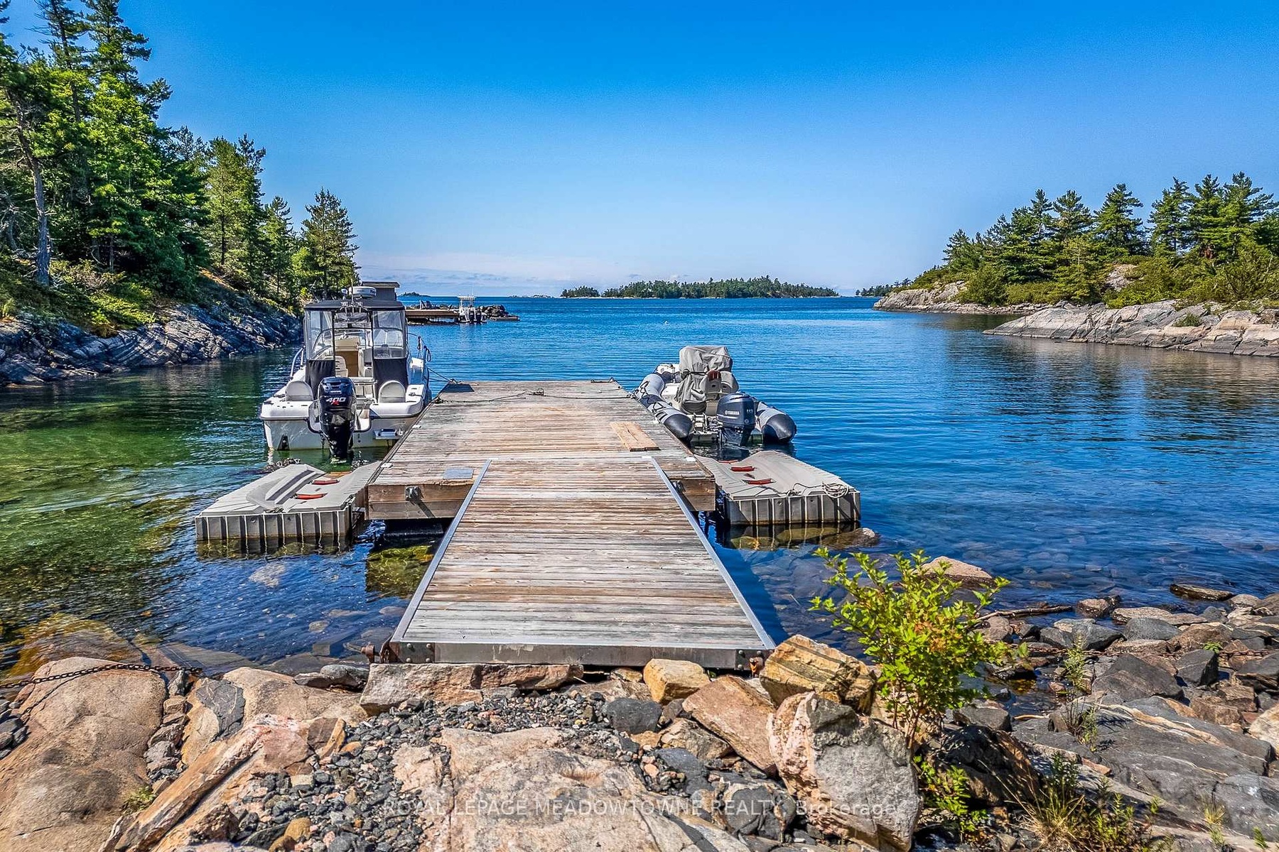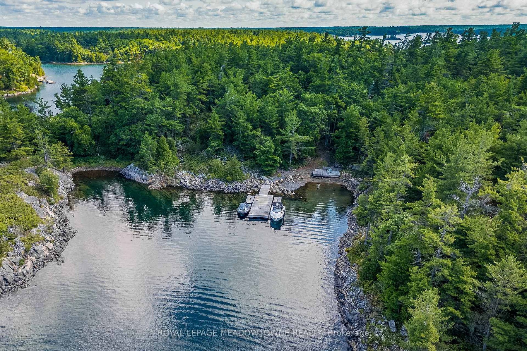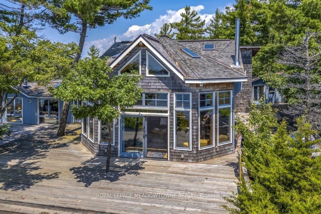 CAMPBELL ISLAND A LEGACY PROPERTY. A 25 + acre island located in North Sans Souci, Campbell Island is divided into 5 legally severed ~5 acre lots plus right of way. Pt/Lot 2 is enhanced with a recently completed cottage compound; a 1-bdrm 2-bath main cottage, 2 self-contained guest cottages & utility structures. Masterfully planned and built, the fully winterized compound features state of the art appliances, high end fixtures/finishes throughout. The 2500 sq.ft. main cottage living, dining, kitchen, & family room, all have walk outs to surrounding decks. Also on the main floor, a 3-pc bath, a large pantry and a utility/mud room with exit to a back deck. Overlooking the living room, the second floor master bedroom suite/sitting room /office/has a 3-pc bath with walk in shower. French doors open onto a private rear balcony with outdoor shower. The balcony offers cover for a ground floor outdoor kitchen equipped with a prep bar & sink, a BBQ, smoker, & a wood burning pizza oven. Two 600 sq.ft. guest cottages each have 2nd floor sleeping lofts w clerestory windows main floor living room w kitchenettes (sink & fridge) and 3 pc. baths. Both open onto private waterside decks A network of granite stone paths and boardwalks connect the cottages to the accessory buildings; work shop, utility shed, mechanical shed, & dock house/harbour. The island has 3 superb natural harbours with docks in place in 3 locations. A gravel road leading from the north harbour links each of the lots for service access and lot enhancement. Hydro is accessible from Lot 2. All four lots have elevated building sites with spectacular sweeping views to the outer islands of North Sans Souci, the Umbrellas & the Westerns. The water surrounding Campbell is crystal clear. Swimming is superb and the area is renowned for spectacular sailing cruising and fishing. A remarkable and rare opportunity to create a superb multigenerational extended family island or an investment opportunity for the future.