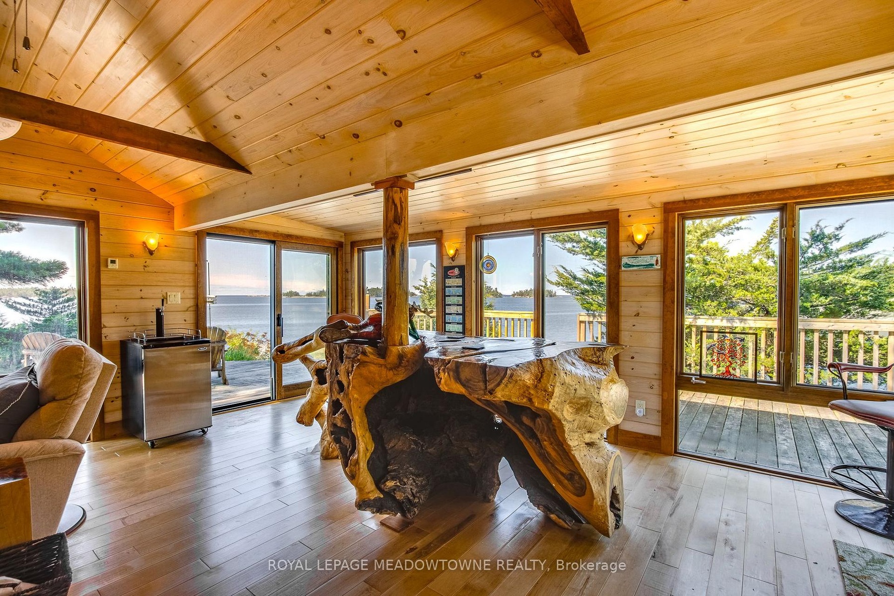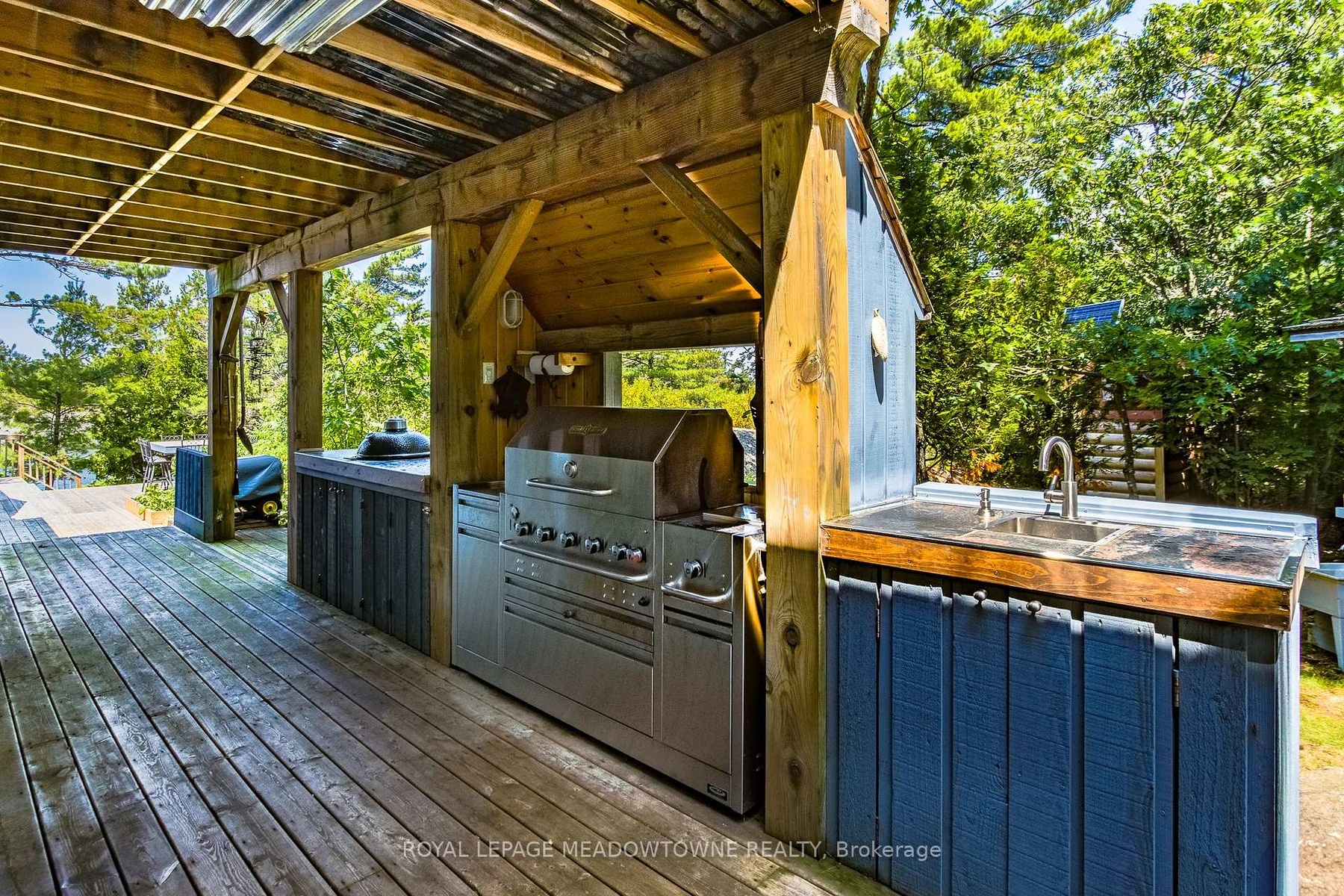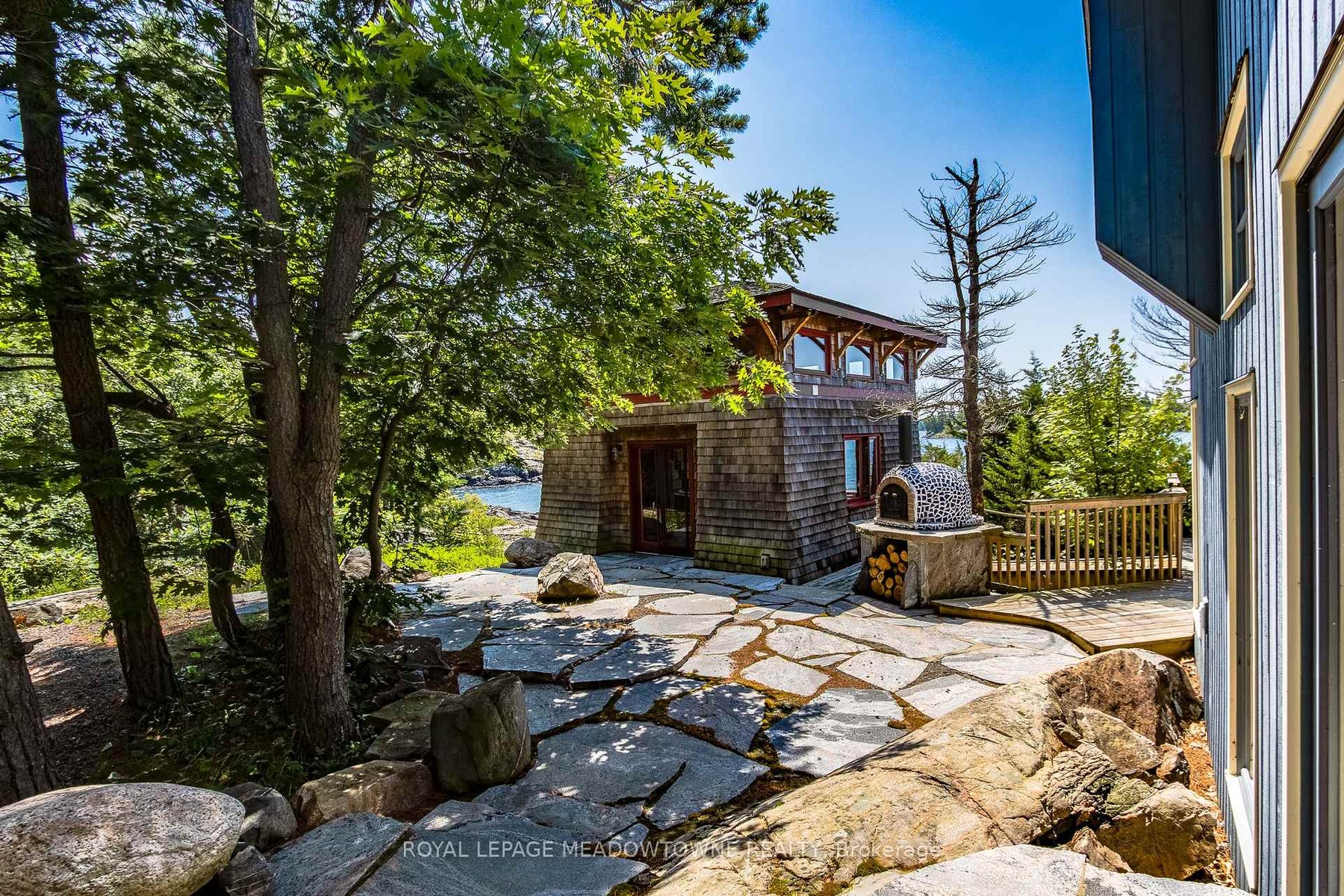CAMPBELL ISLAND A LEGACY PROPERTY. A 25 + acre island located in North Sans Souci, Campbell Island is divided into 5 legally severed ~5 acre lots plus right of way. Pt/Lot 2 is enhanced with a recently completed cottage compound; a 1-bdrm 2-bath main cottage, 2 self-contained guest cottages & utility structures. Masterfully planned and built, the fully winterized compound features state of the art appliances, high end fixtures/finishes throughout. The 2500 sq.ft. main cottage living, dining, kitchen, & family room, all have walk outs to surrounding decks. Also on the main floor, a 3-pc bath, a large pantry and a utility/mud room with exit to a back deck. Overlooking the living room, the second floor master bedroom suite/sitting room /office/has a 3-pc bath with walk in shower. French doors open onto a private rear balcony with outdoor shower. The balcony offers cover for a ground floor outdoor kitchen equipped with a prep bar & sink, a BBQ, smoker, & a wood burning pizza oven. Two 600 sq.ft. guest cottages each have 2nd floor sleeping lofts w clerestory windows main floor living room w kitchenettes (sink & fridge) and 3 pc. baths. Both open onto private waterside decks A network of granite stone paths and boardwalks connect the cottages to the accessory buildings; work shop, utility shed, mechanical shed, & dock house/harbour. The island has 3 superb natural harbours with docks in place in 3 locations. A gravel road leading from the north harbour links each of the lots for service access and lot enhancement. Hydro is accessible from Lot 2. All four lots have elevated building sites with spectacular sweeping views to the outer islands of North Sans Souci, the Umbrellas & the Westerns. The water surrounding Campbell is crystal clear. Swimming is superb and the area is renowned for spectacular sailing cruising and fishing. A remarkable and rare opportunity to create a superb multigenerational extended family island or an investment opportunity for the future.