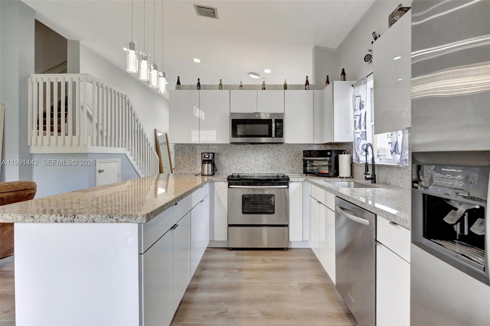 Spacious 6,000+ sq. ft. lot W/ROOM FOR POOL AND BOAT! This meticulously maintained 4-bedroom, 2.5-bath home is located in a quiet, safe, and well-kept neighborhood just minutes from the Turnpike. Enjoy a BRIGHT split floor W/CUSTOM CLOSETS THROUGHOUT. THE LARGE PRIMARY BDRM IS CONVENIENTLY LOCATED ON THE FIRST FLOOR & OFFERS A REMODELED ENSUITE BATHROOM, & A GENEROUS WAKL-IN CUSTOM CLOSET. The modern upgraded kitchen features stainless steel appliances, granite countertop, & ample counter space. Includes a 2-car garage, generous driveway parking, & great curb appeal. ENJOY THOUSANDS IN UPGRADES IN MODERN KITCHEN, CUSTOM CLOSETS, & STORAGE. LOW ASSOCIATION FEES. It's a MUST see! This home is ready to make it your own.