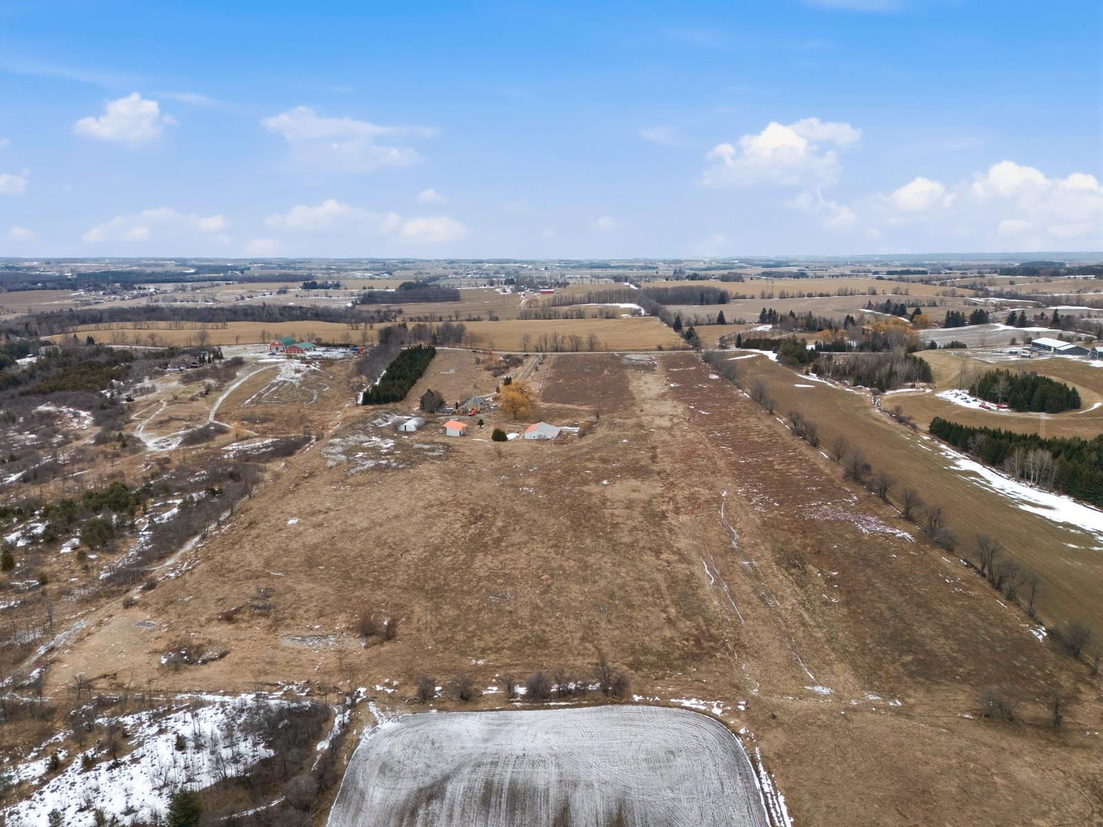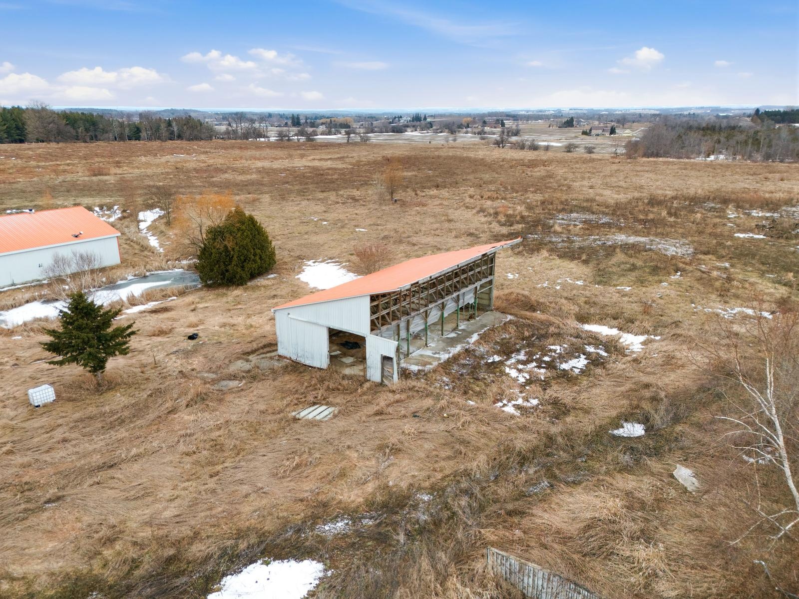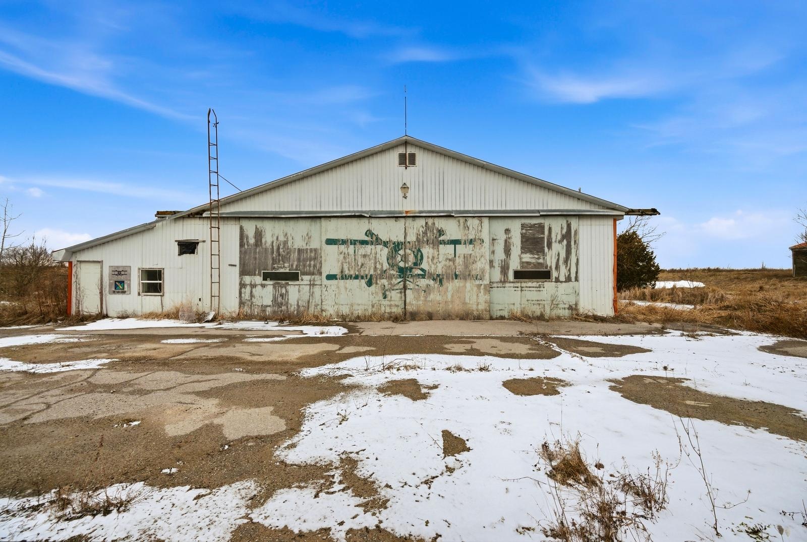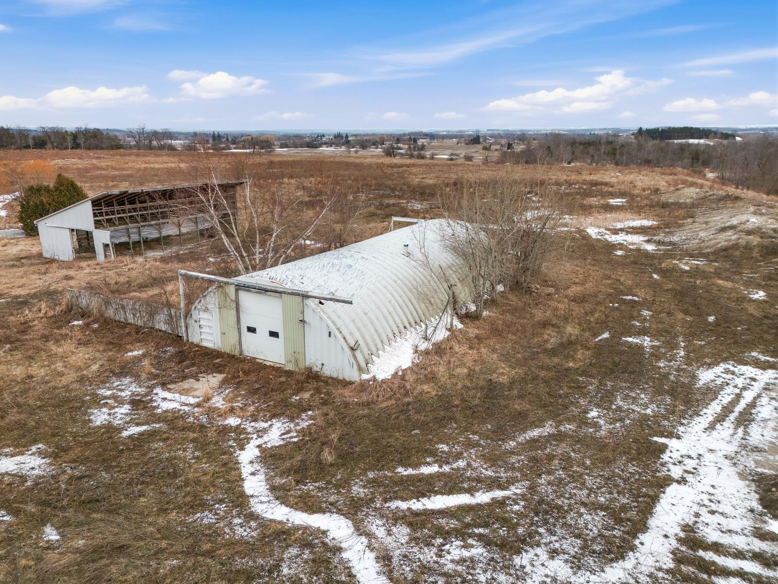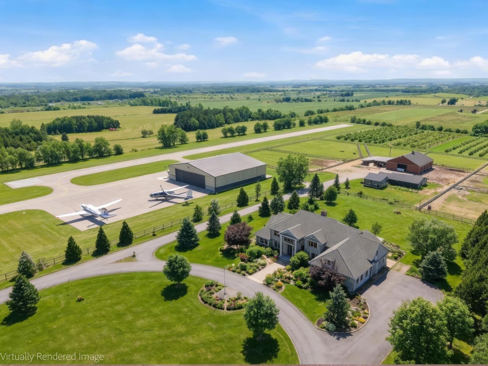 Welcome to this unique 47-acre parcel in South Essa Township, zoned for private aircraft aerodrome use, offering a rare combination of agricultural, commercial, and residential zoning. The property includes approximately 5 acres of commercially zoned land fronting on 8th Line, providing excellent exposure and accessibility for a variety of permitted uses. This expansive property features a traditional Ontario farmhouse with six bedrooms, offering strong potential for multi-tenant use or rental income, along with excellent future redevelopment opportunities. The property is improved with multiple functional outbuildings, including a studio space, as well as a substantial 50' x 80' aircraft hangar with an 18' x 40' office area. A registered aerodrome, the property includes a functional airstrip along with additional shorter runways, making it ideally suited for aviation-related use or businesses requiring private air access. With its flexible zoning and established infrastructure, the property supports a wide range of uses, including agricultural operations, home-based businesses, and specialized commercial applications (subject to municipal approvals). The scale, privacy, commercial frontage, and strategic location create a compelling opportunity for investors, end-users, or those seeking a live/work environment with long-term upside.