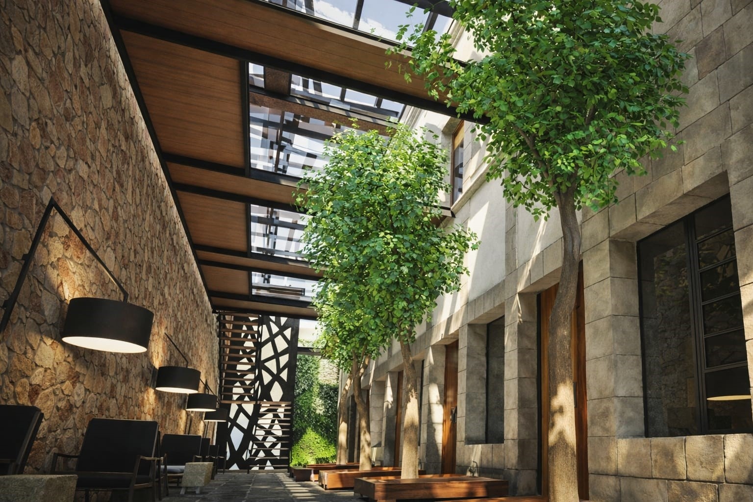 The building features approximately 650 m2 (6,997 sq ft) of constructed space, thoughtfully distributed across two levels. It currently comprises 36 fully operational commercial units, generating immediate activity and income. Multiple access points from the main plaza ensure excellent exposure, while the versatile architectural layout enhances visitor circulation and maximizes commercial performance.