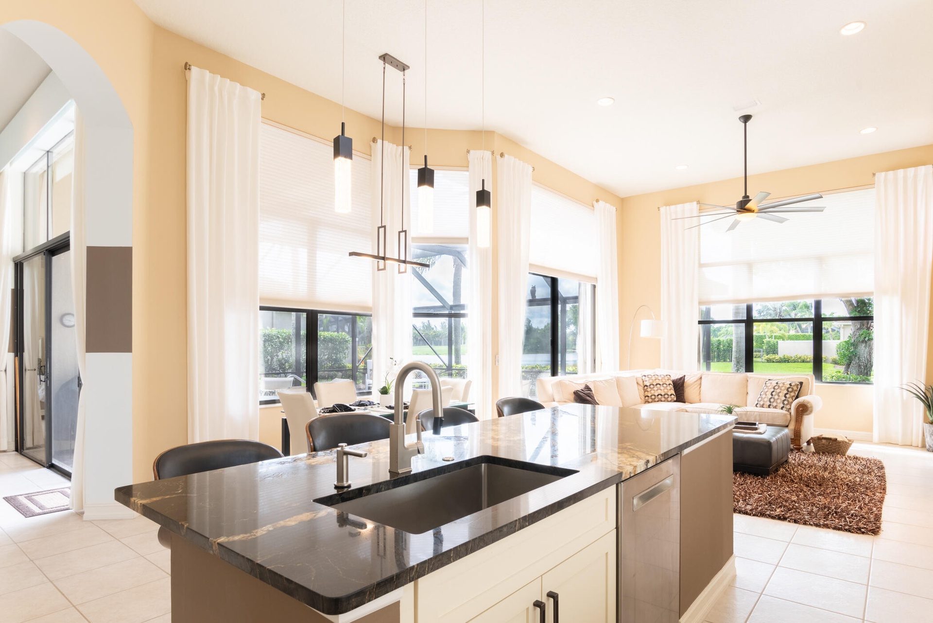 Updated pool home with 3BR 3BA plus Den with long lake and golf course views at The Club at Ibis in West Palm Beach.