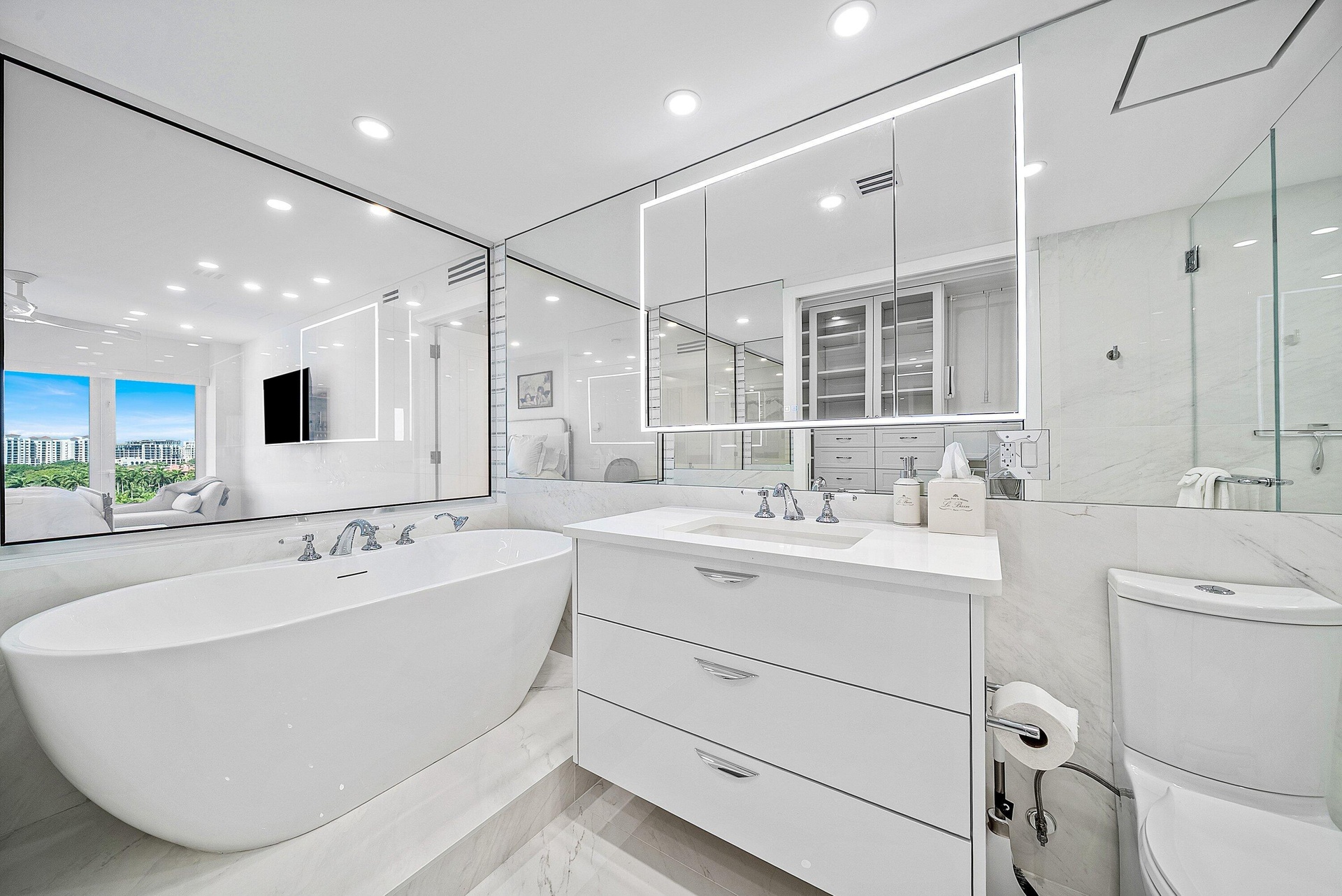 Have it all with 10J at Boca Inlet! Rarely does a condo with such a perfect blend of location, views, and renovation come along. Situated between the Harbourside and Beach Club of the iconic Boca Raton Resort & Club. Offering easy walking access to the beach and downtown Boca Raton. Meticulously renovated to the highest standards, this total renovation was completed in 2026. This spacious 2-bedroom, 2-full bathroom corner unit boasts direct, unobstructed views of Lake Boca Raton, and gorgeous city views with sunsets to the west. Highlights include an open concept designer chef's kitchen, high ceilings, window shades in every room, a sleek glass railing balcony, luxurious spa-like bathrooms—including a primary bath with a European-style bathtub and "electric smart glass" window for added natural light or ambiance. Custom closets and built-in-storage. The boutique-style building is exceptionally maintained, featuring 24-hour doorman, onsite management office, a waterfront pool deck on Lake Boca, on-floor private storage, and covered parking.