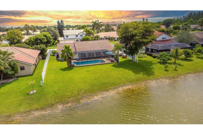 Experience luxury living in this beautifully renovated and furnished 4-bedroom home located in a gated lakefront community on a quiet cul-de-sac Located in a prime Boca Raton location This exceptional property offers stunning, expansive lake views and a bright open-concept floor plan designed for both comfort and entertaining. The home features impact windows, motorized shades, and high-end finishes throughout. The spacious living area is highlighted by a floor-to-ceiling tiled accent wall with an electric fireplace and built-in 65" flat-screen TV, complemented by elegant 8-foot custom cabinetry. Step outside to enjoy a fully screened-in patio, and an extended pull-through driveway perfect for hosting and everyday convenience. with a quick and easy HOA approval process.