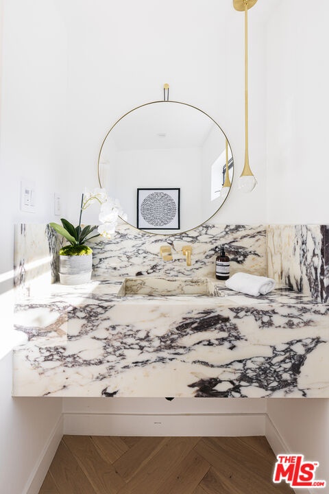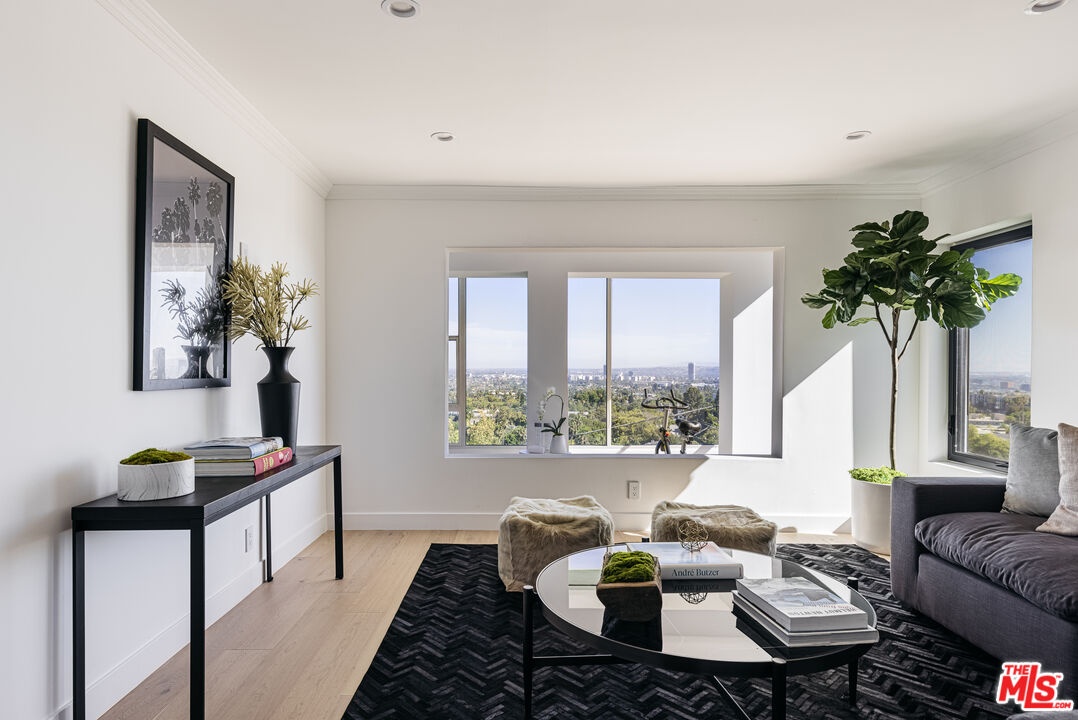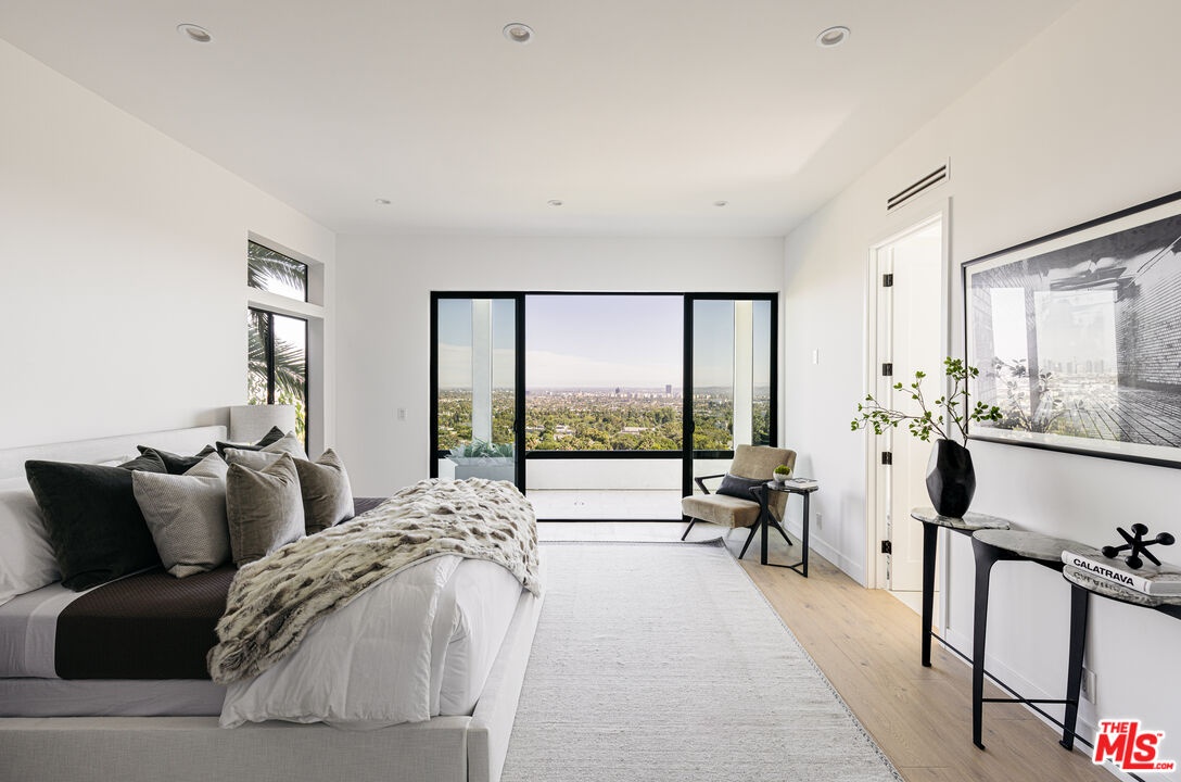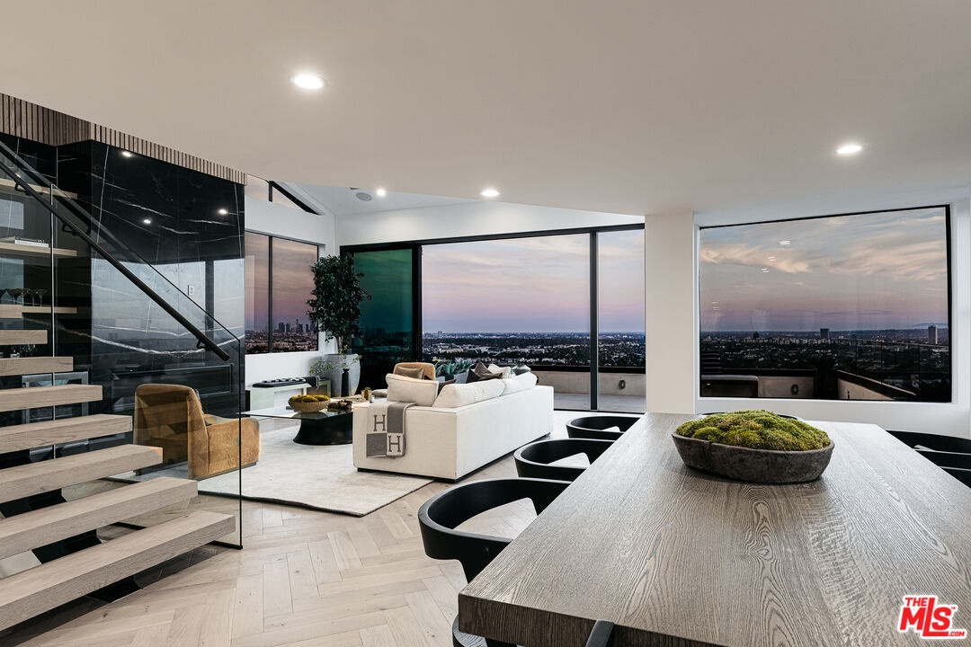 Perched above the city with rare 270 jetliner views from Downtown to Century City, this fully renovated 4 bedroom, 4 bathroom Hollywood Hills retreat spans over 4,000 sq ft of high-impact design and effortless livability. A custom pivot door opens to a dramatic double-height foyer and floating oak staircase leading to expansive, sun-splashed living areas. Retractable glass walls dissolve the line between indoors and out, connecting herringbone-floored living and dining spaces to a wraparound terrace perfect for entertaining. The gourmet marble kitchen features bespoke oak cabinetry, Thermador appliances, and a hidden walk-in pantry; a chic powder room with integrated Calacatta Viola vanity completes the main level. Upstairs, a custom sauna sits just outside the luxe primary suite with private balcony, spa-style bath (soaking tub + marble shower), and generous walk-in closet. Two additional bedrooms, a full bath, and laundry round out this floor. On the lower level, a separately accessed ADU (interior and private exterior entries) offers a wet bar, full bath, and wraparound windows ideal as a guest suite, creative studio, private gym, or rental opportunity. Outdoors, enjoy a turf yard, lemon tree garden, and spaces suited for a cold plunge or cozy lounge. A two-car garage adds convenience. Quiet, private, and minutes to Sunset Blvd., West Hollywood, and Beverly Hills, an elevated escape with everyday ease. Not furnished as shown.