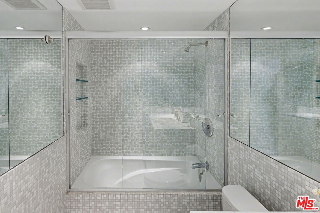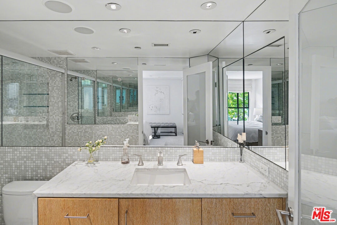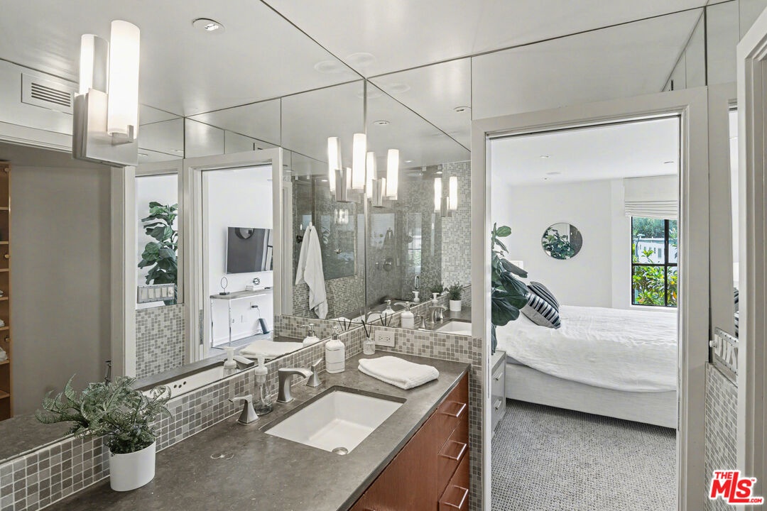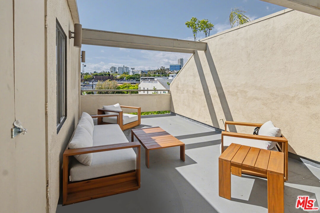 Fully furnished; available immediately. Welcome to elegant WeHo living in this top-floor, 2-bedroom, 2.5-bath plus loft/den residence in the prestigious Design Villas Community building on Huntley in Tri-West. This beautifully furnished, front-facing unit is filled with natural light and offers an open layout with high ceilings and updated amenities. The gourmet kitchen, featuring stainless steel appliances and elegant wood accents, is perfect for culinary adventures. Step out onto the new private rooftop deck, which is ideal for entertaining guests with a rooftop afternoon cocktail or a leisurely Sunday brunch. This home has Sonos speakers across the rooms for excellent sound, flat-screen TVs for viewing pleasure, and a Tonal workout machine to keep you fit and healthy. The building offers amenities, including a pool, spa, and secure entry. With two side-by-side parking spaces and easy access to the Melrose/Robertson shopping district and Pacific Design Center, you'll enjoy the best of West Hollywood living. Plus, you're within walking distance to the new Erewhon Market, adding everyday convenience just moments from your door. Make this wonderful space your own and enjoy all the modern amenities it has to offer!