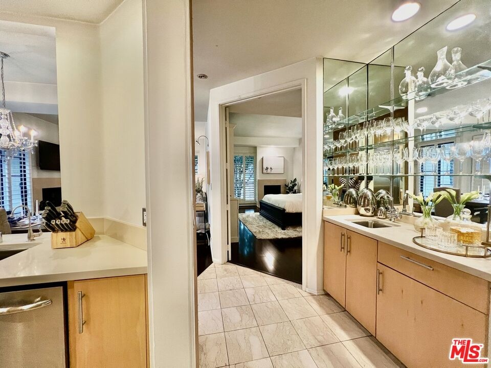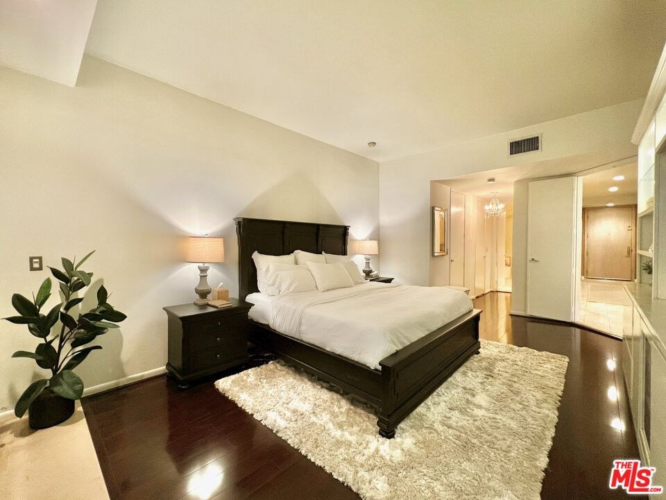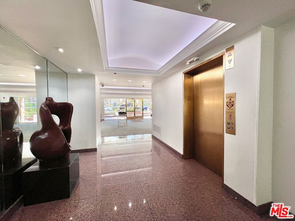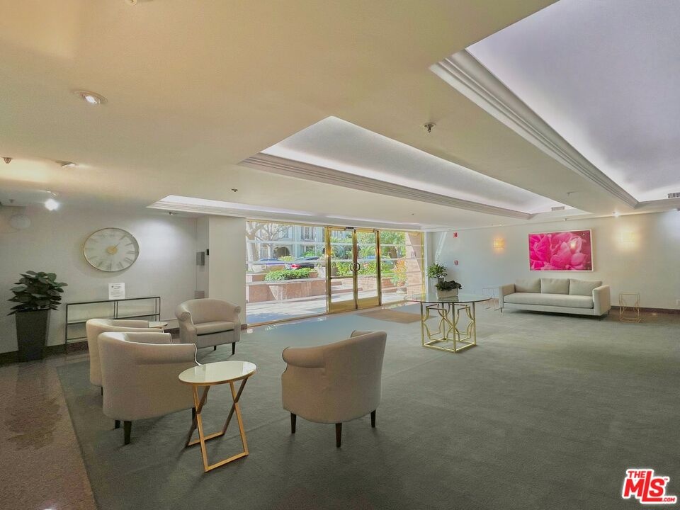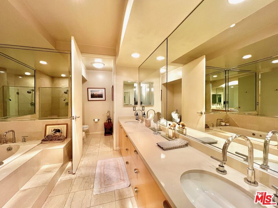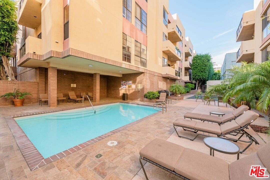 **Available furnished or unfurnished** Welcome to a luxurious haven at the Hamptons in Beverly Hills, where sophistication meets comfort in every detail. Behind stately Double Doors, an open and bright space with high ceilings, and a welcoming fireplace. This living area features a chic wet bar, a dining area that opens to a covered balcony with two sliding doors, expanding the gathering space for alfresco entertaining. Step into the primary suite, a spacious resort-like retreat that boasts a romantic fireplace, a large built-in wall unit, a huge walk-in closet with a dressing area, and a lavish en-suite bathroom with a spa tub, a separate oversized shower, dual vanity, and separate water closet with bidet. The updated eat-in kitchen is a chef's dream, equipped with a Viking Stove, Sub-Zero fridge, and custom counters and cabinetry, offering both style and functionality. Floorplan is typical of the 2-BR condominiums at this complex but photos may not be of actual unit. Property is Walkable to places of worship. Beverly Hills schools. Steps from La Cienega Park. Pet friendly. Amenities include a pool, spa, gym, sauna, and a newly updated formal lobby to receive guests. Controlled access building. Remote access underground parking with 2 side-by-side spaces + guest spot.