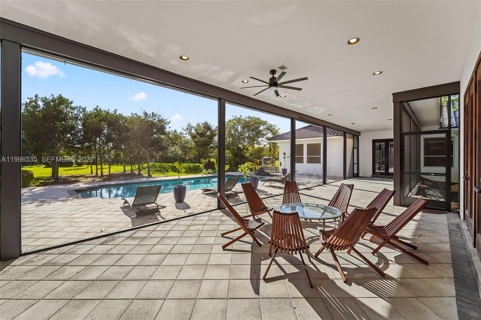 Tucked away in the heart of the Redlands, this private estate spans just over 4 acres of agriculturally zoned land surrounded by mature landscaping and a tranquil Japanese-inspired garden complete with a bridge, cascading water feature, and koi stream. The property offers a rare blend of natural beauty and architectural character, creating a peaceful retreat from the everyday. Inside the residence features 4 bedrooms, 5 full bathrooms, and a newly renovated half bath. The layout is thoughtfully designed with expansive living spaces, including a dramatic main living area with soaring ceilings and a coral rock fireplace a formal dining space updated kitchen, and a generous family room all positioned to take advantage of views overlooking the courtyard & pool. Outdoor living is seamlessly integrated throughout with covered terraces a large screened-in patio and direct exterior access from each bedroom. A dedicated game room with bar adds flexibility for entertaining, working or relaxing, while the built-in BBQ area enhances the home’s indoor-outdoor lifestyle. A newly built pickleball court further elevates the property, offering a sought-after recreational amenity right at home. The grounds are currently utilized as an avocado grove, offering both agricultural value and future potential. With its distinctive design, expansive land, and versatile use options, this property presents a unique opportunity for end-users, investors, or those seeking a private compound with character.