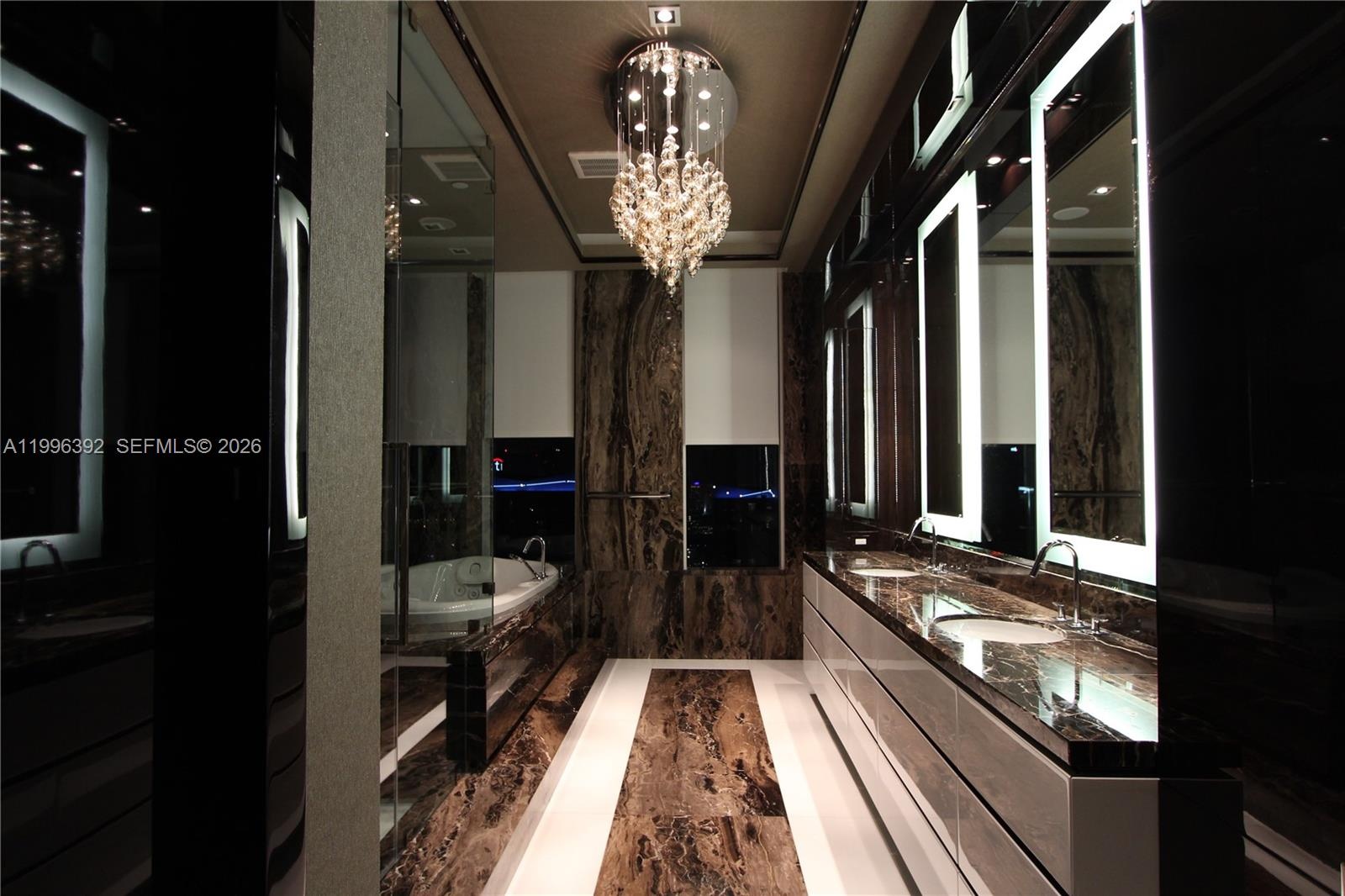 A MASTERPIECE of a WATERFRONT LUXURY PENTHOUSE – RARELY AVAILABLE. Meticulously designed furnished residence designed for both grand entertaining and everyday living, impressive water & city views, private foyer sets an impressive tone upon entry, open living room layout, sweeping staircases, exquisite bathrooms with soaking power jet tub, oversized walk-in rain shower, high-end kitchen with elegant glass sliding panels, premium custom cabinetry, professional-grade appliances, layered lighting, butler’s pantry, designer bar, smart home automation, interior elevator, music private studio, private office loft, huge secluded outdoor terrace-deck with bar and pool with ample space for entertaining, located on Brickell Key, an exclusive gated 44-acre island, an oasis, in the heart of the city.