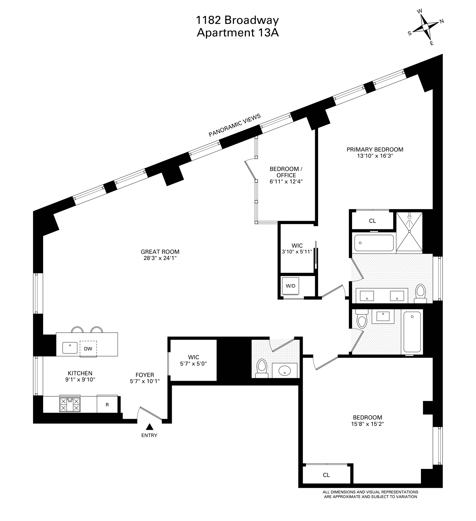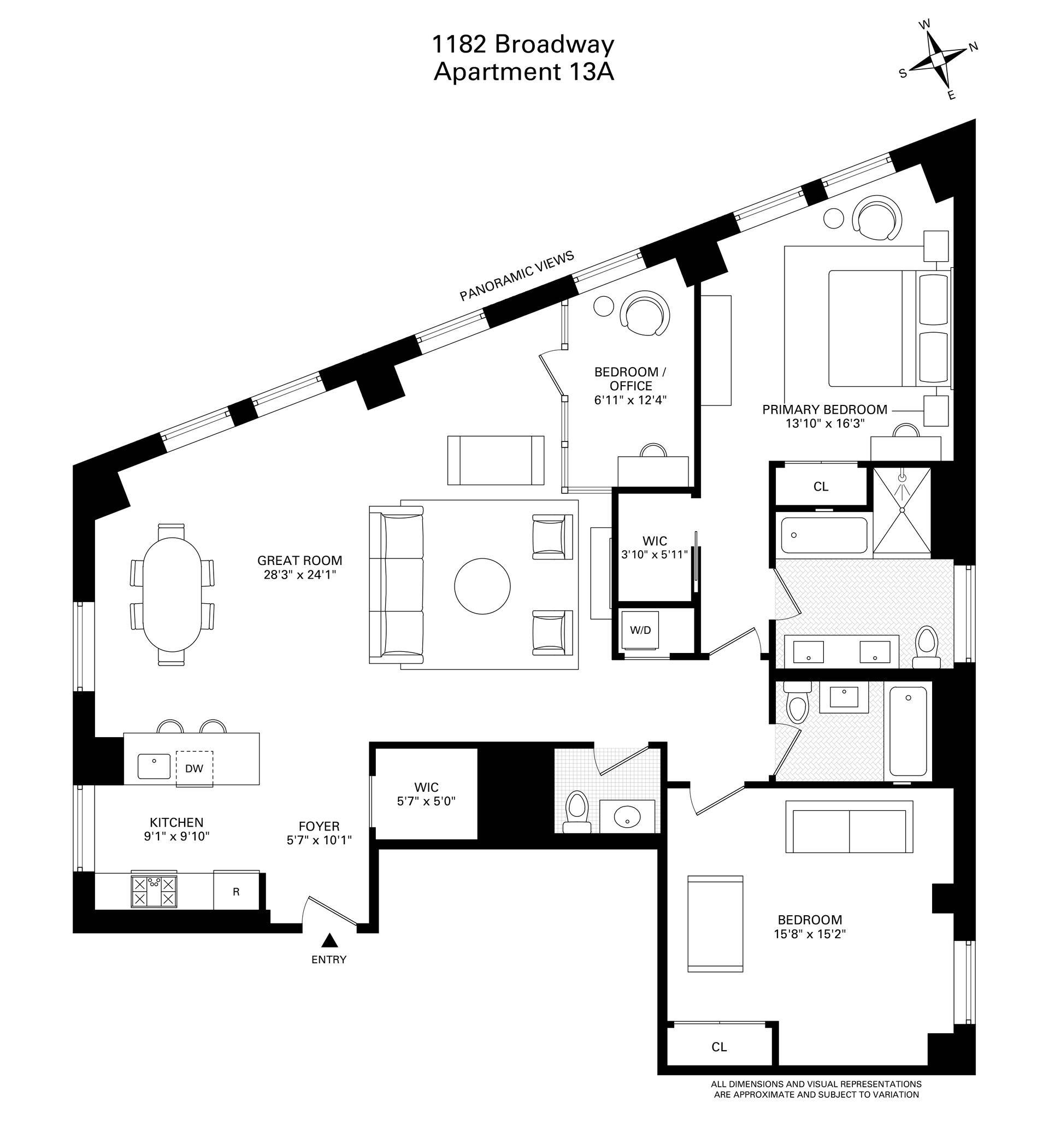 *Represents current apartment configuration, which may not conform to official legal documentation. Purchasers should consult with their legal or architectural professionals to determine legal use parameters.
