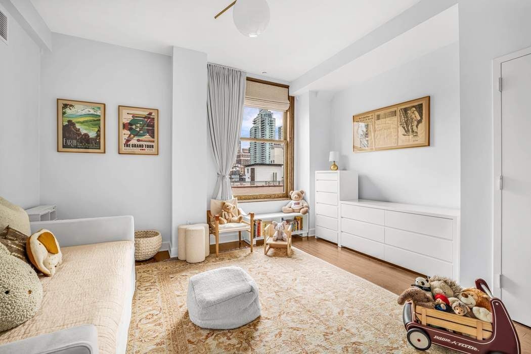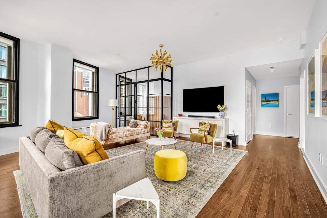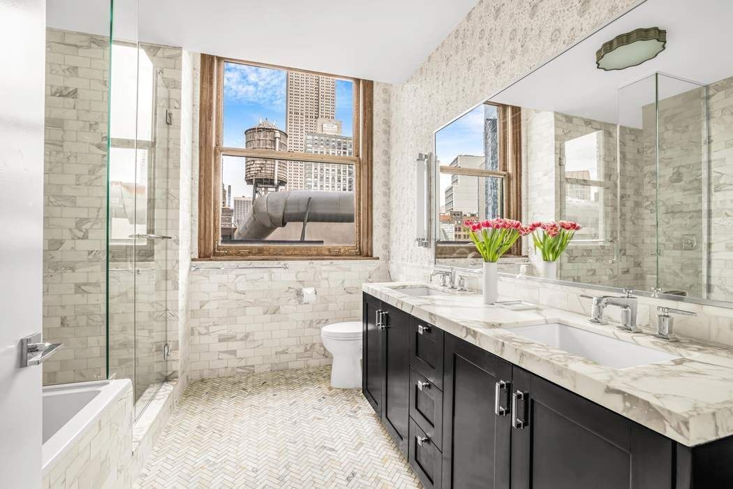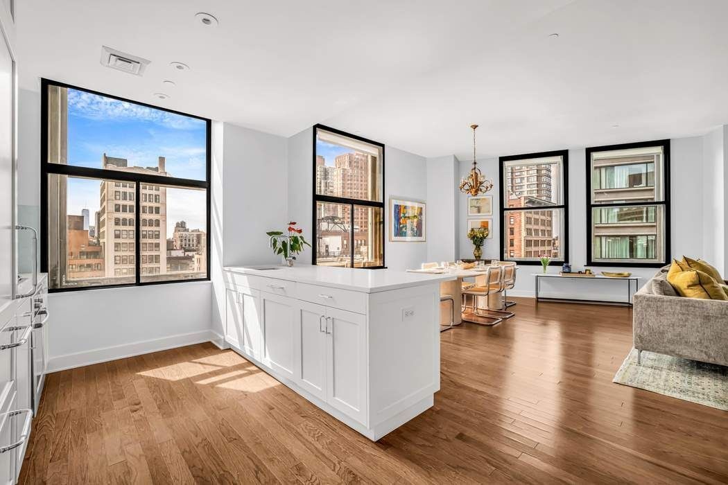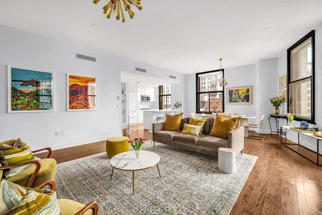 This meticulously reimagined 3-bedroom, 2.5-bath residence epitomizes elevated downtown living. Soaring 10+ foot ceilings, oversized casement windows, and dramatic proportions create an immediate sense of volume and grandeur. Sunlight pours through multiple exposures, highlighting every exquisite finish. Thoughtful design balances form and function, creating a home that is as spectacular as it is effortlessly livable. The enormous sun-drenched 28’ x 24’ southwest-facing corner great room serves as the centerpiece, seamlessly blending city-facing serenity with expansive entertaining space. The chef’s kitchen is a masterclass in design and performance, featuring timeless white shaker cabinetry, a marble waterfall island, and premium appliances, including Bosch oven and dishwasher and a Sub-Zero refrigerator. With under-counter dining and a separate dining area for 8–10 guests, the loft invites unforgettable gatherings against the backdrop of panoramic city views.