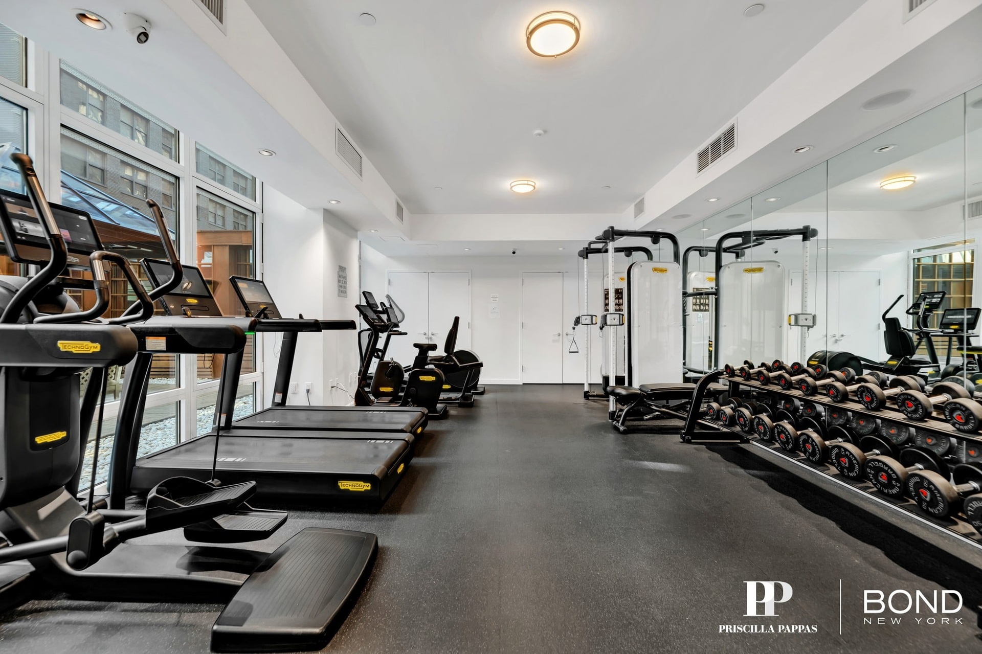 This white-glove condominium offers a 24-hour doorman and concierge, along with amenities including a fitness center, resident lounge, and landscaped roof deck designed by Vicente Wolf. Private storage is also available.